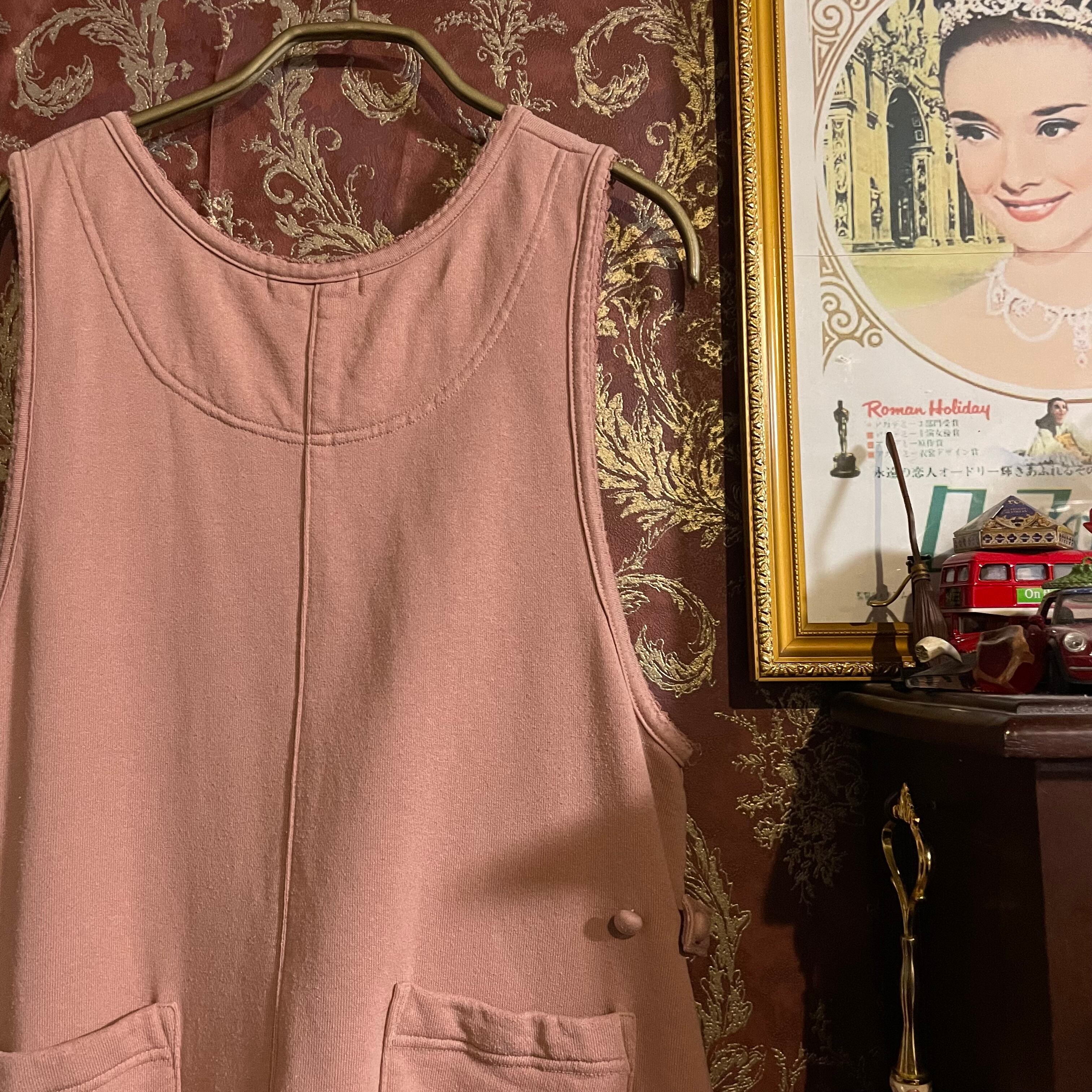 柔らかなスウェット生地で作られた、くすみピンクのジャンパースカートです。
