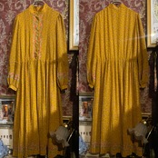 山吹色をベースにした可愛らしい花柄が印象的なレトロワンピースです。