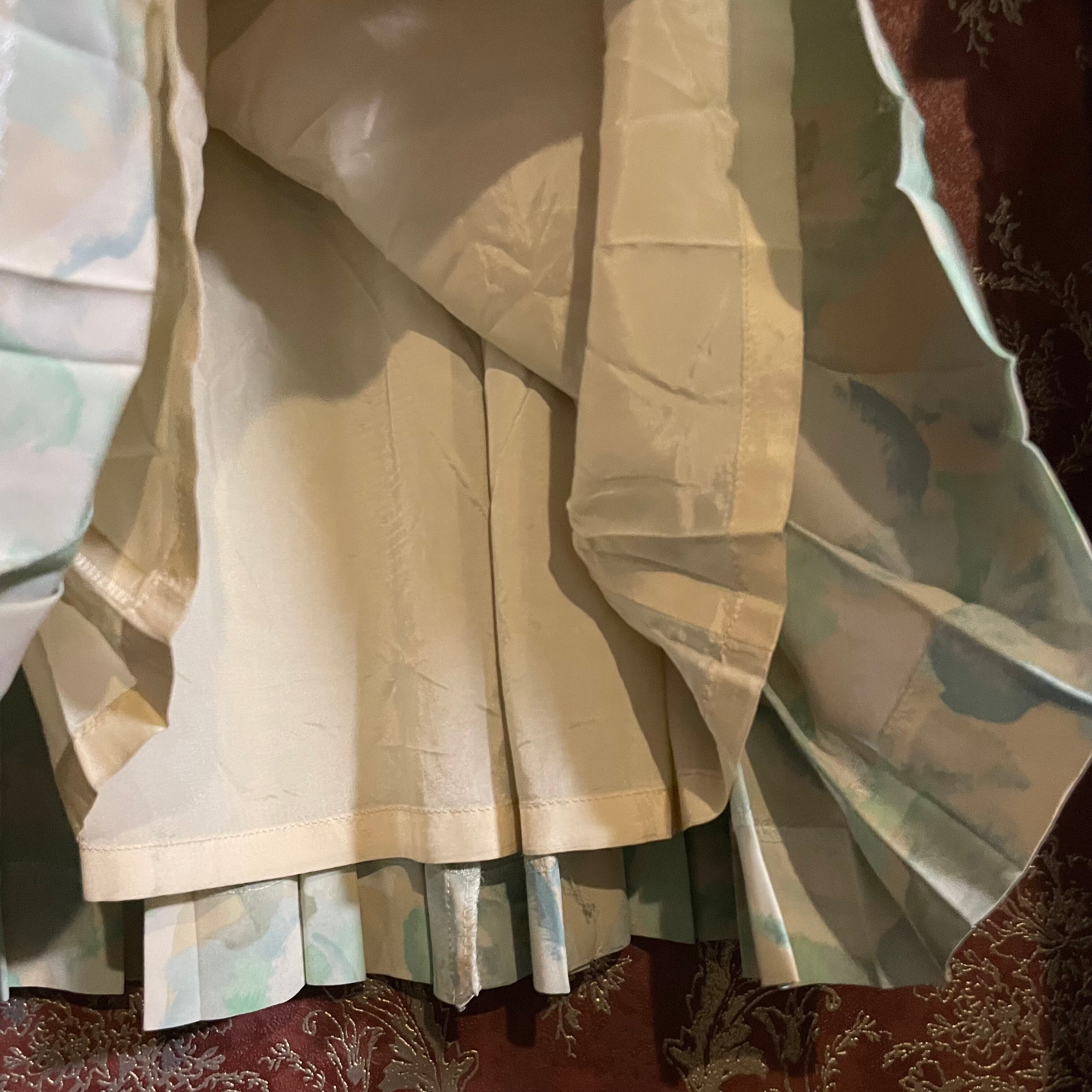 スカートは上品なプリーツで、歩くときの動きがしなやかで優雅な印象です。