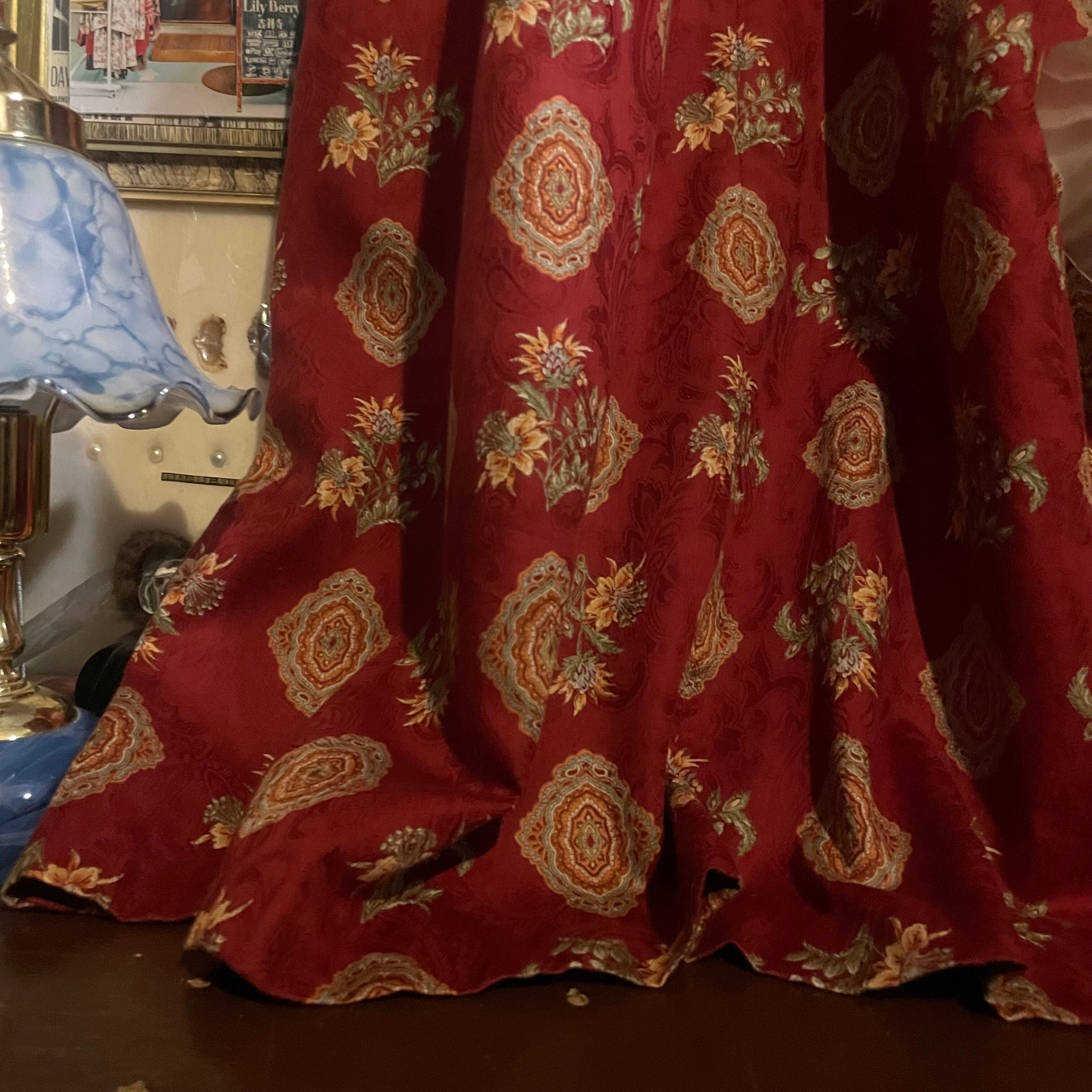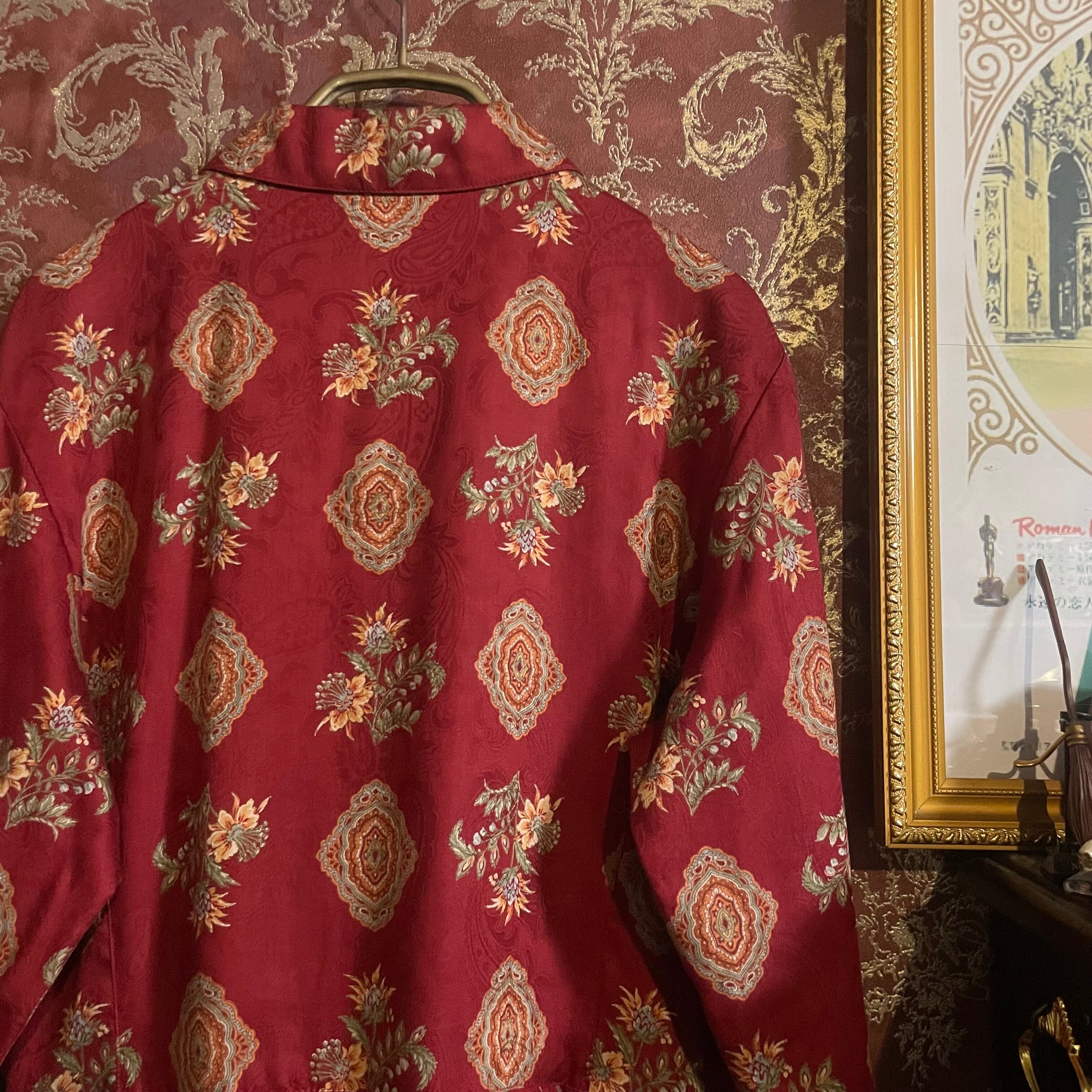 赤をベースに花と曼荼羅柄のレトロなワンピースです。
