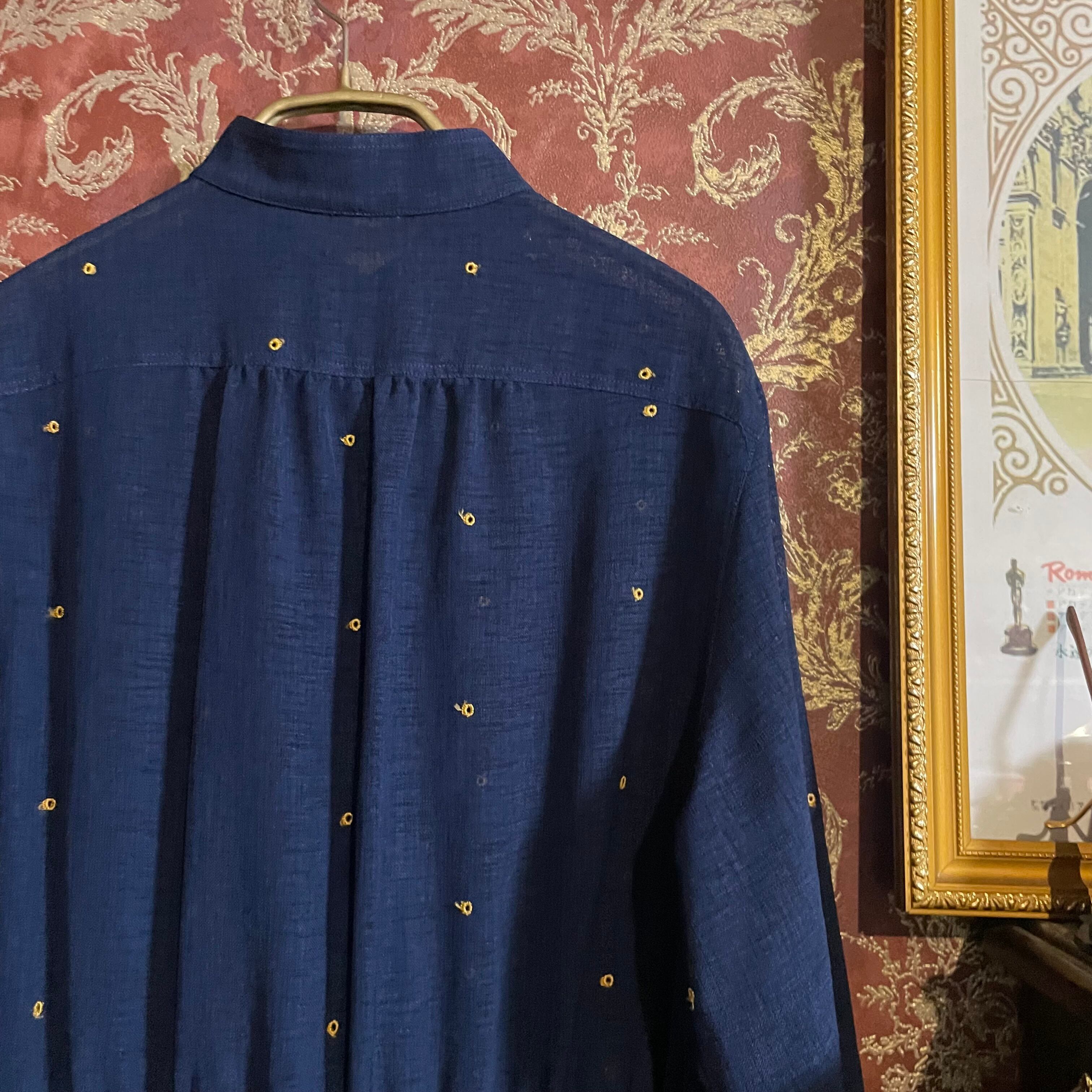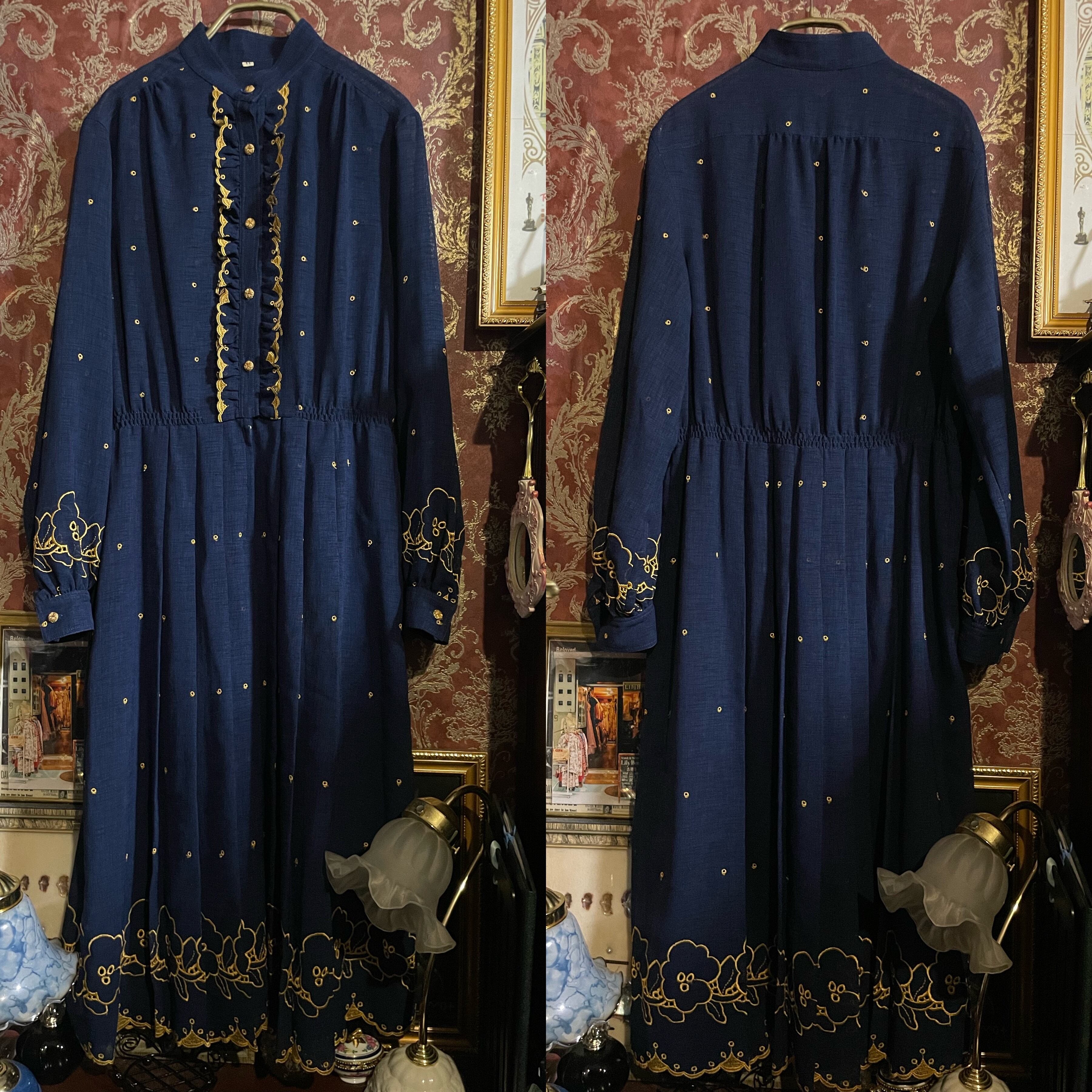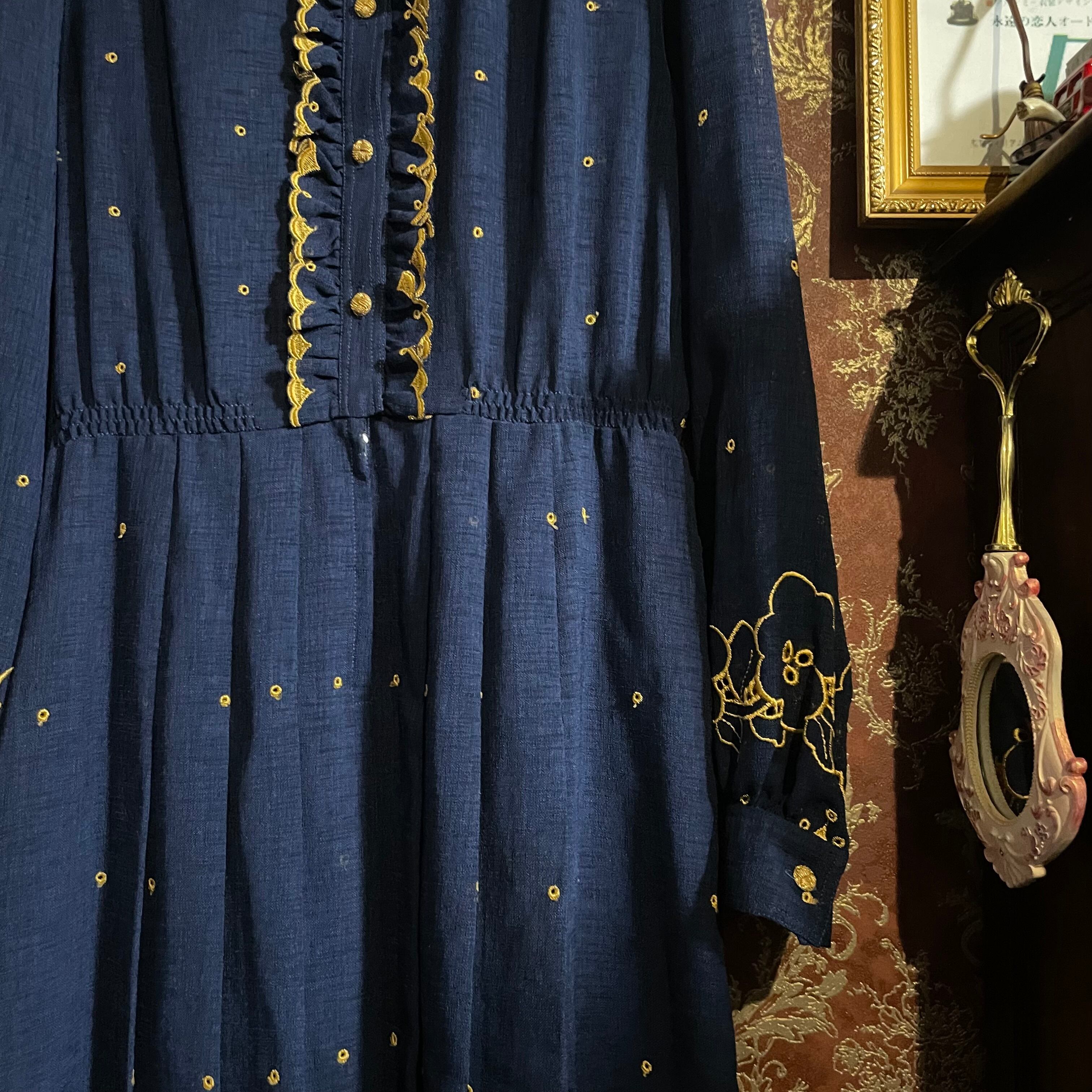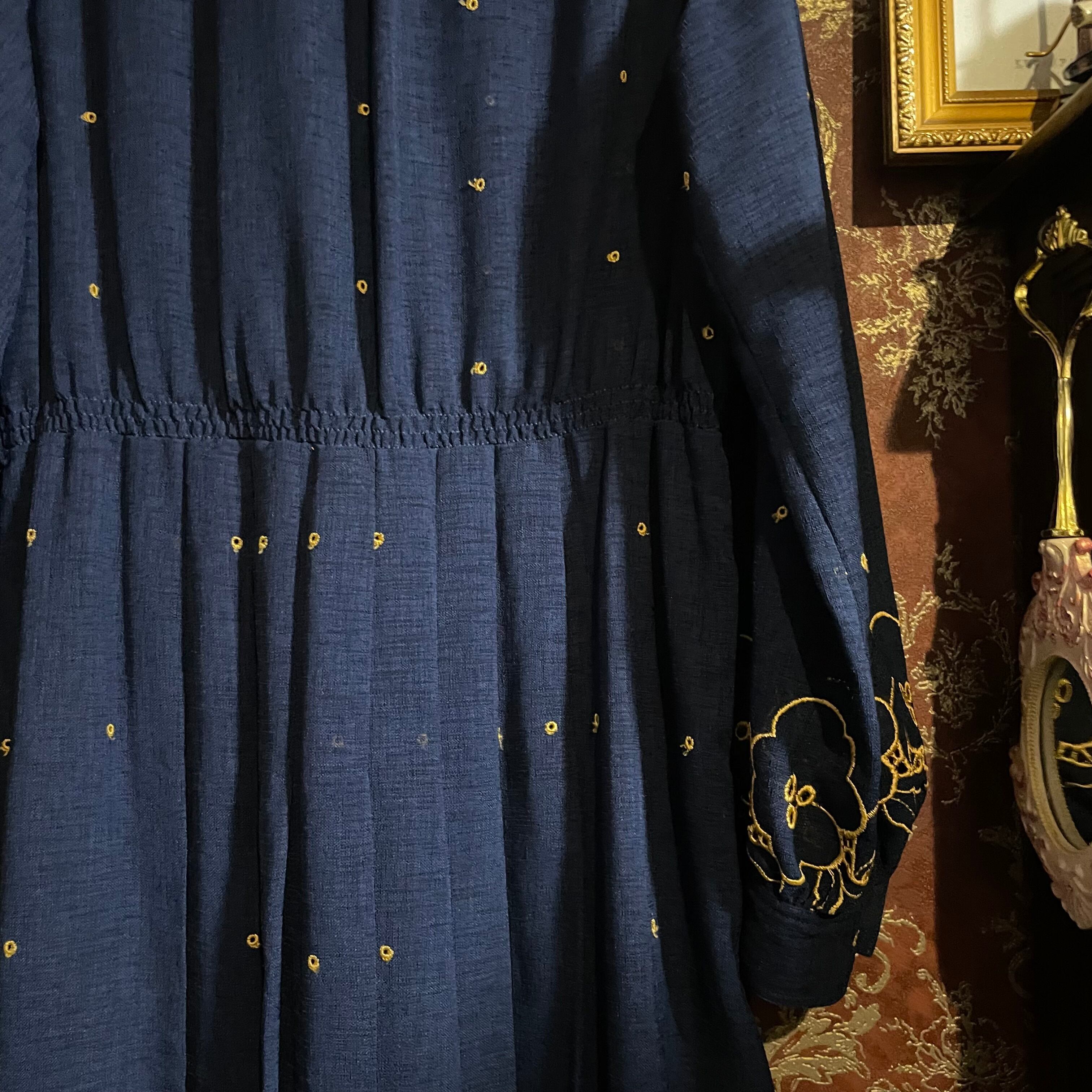 紺をベースにゴールドの刺繍が美しいヴィンテージワンピースです。