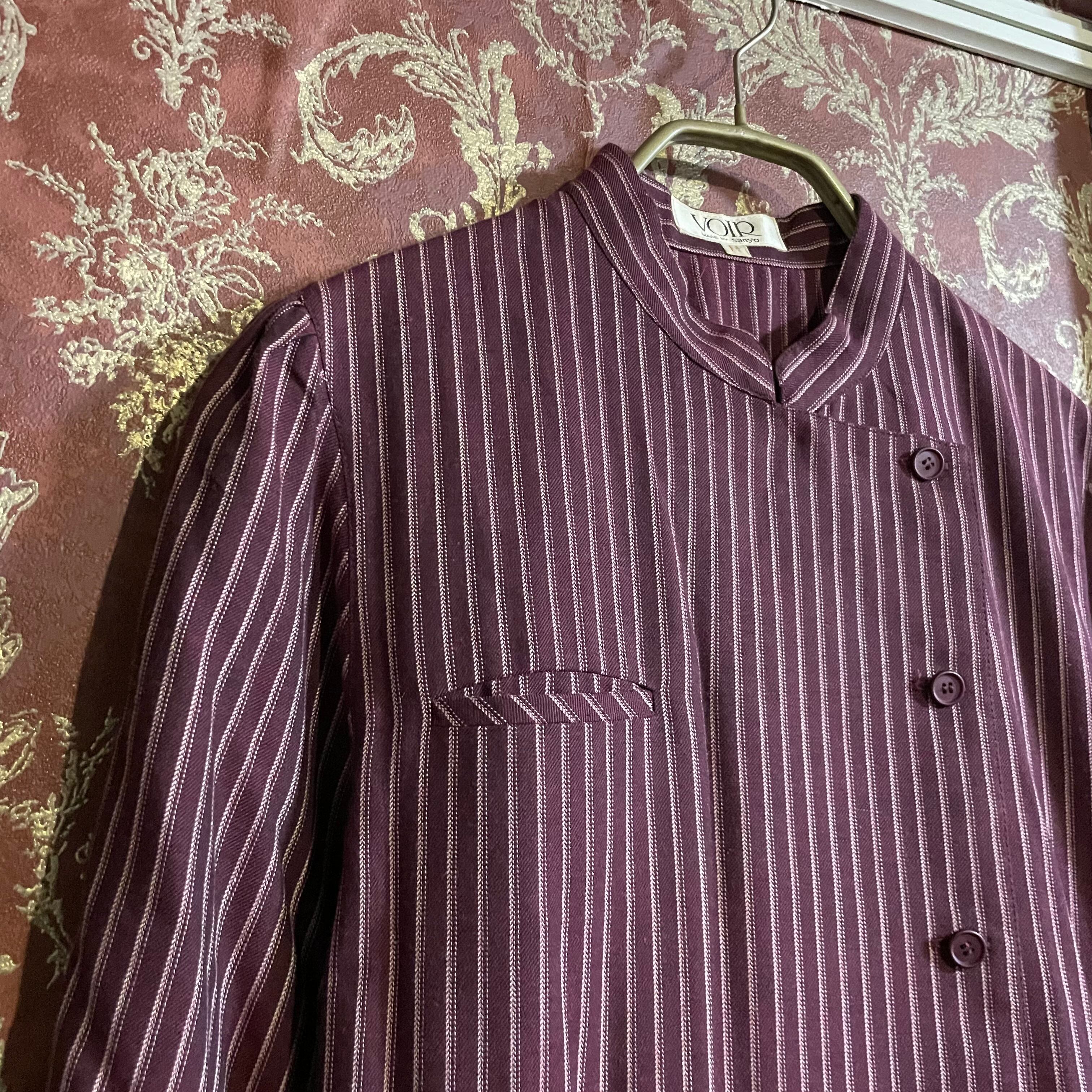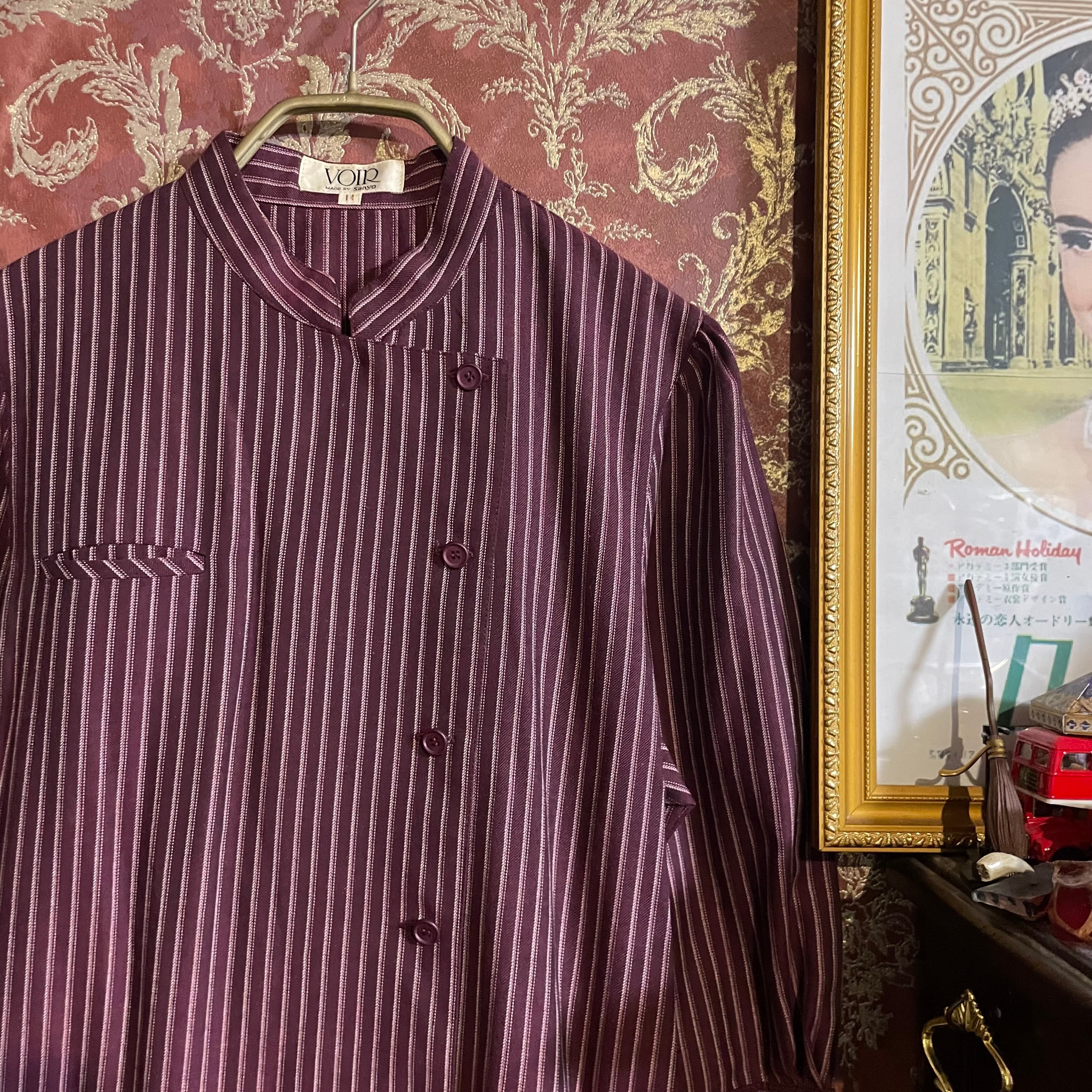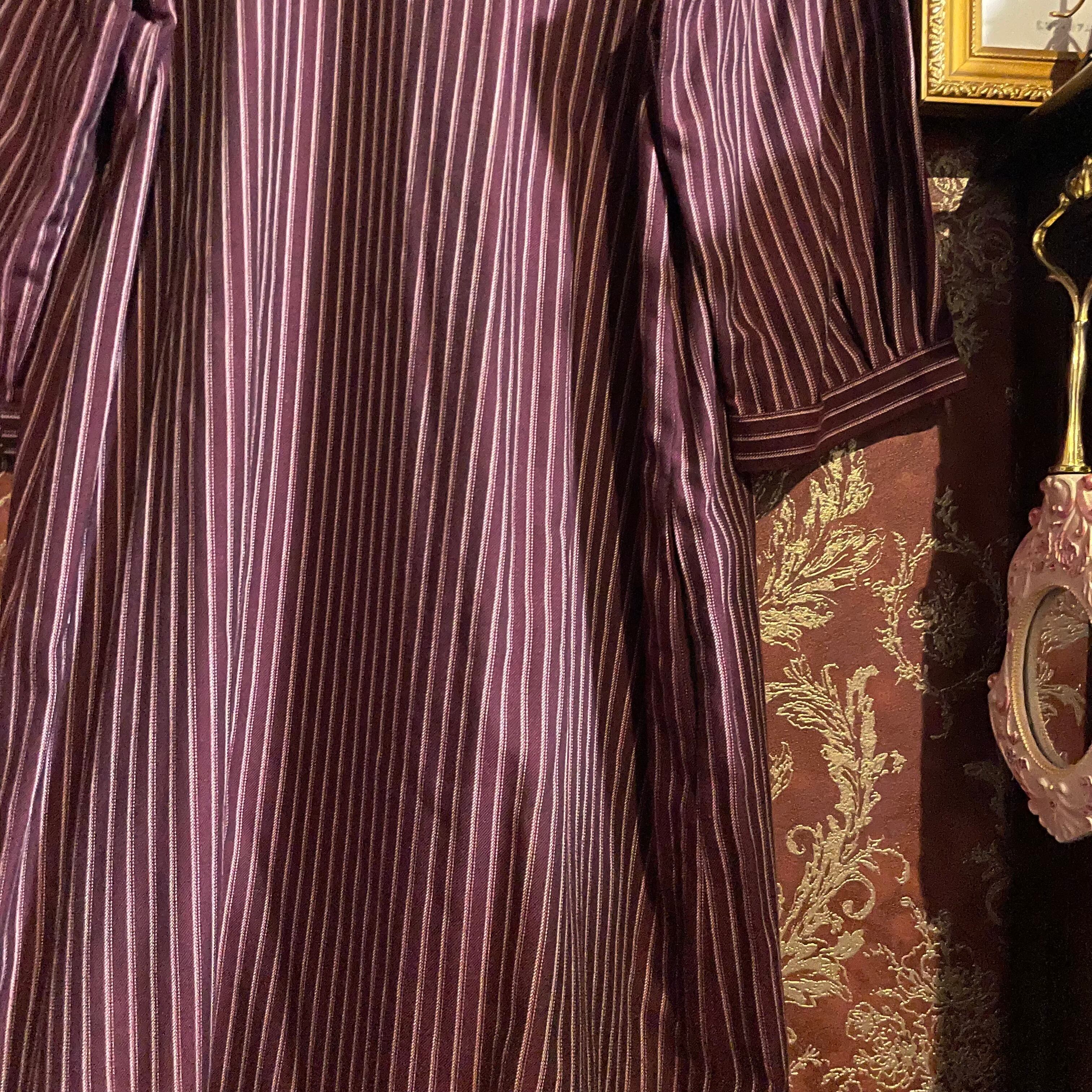 小豆カラーをベースに白のストライプ柄ワンピースです。