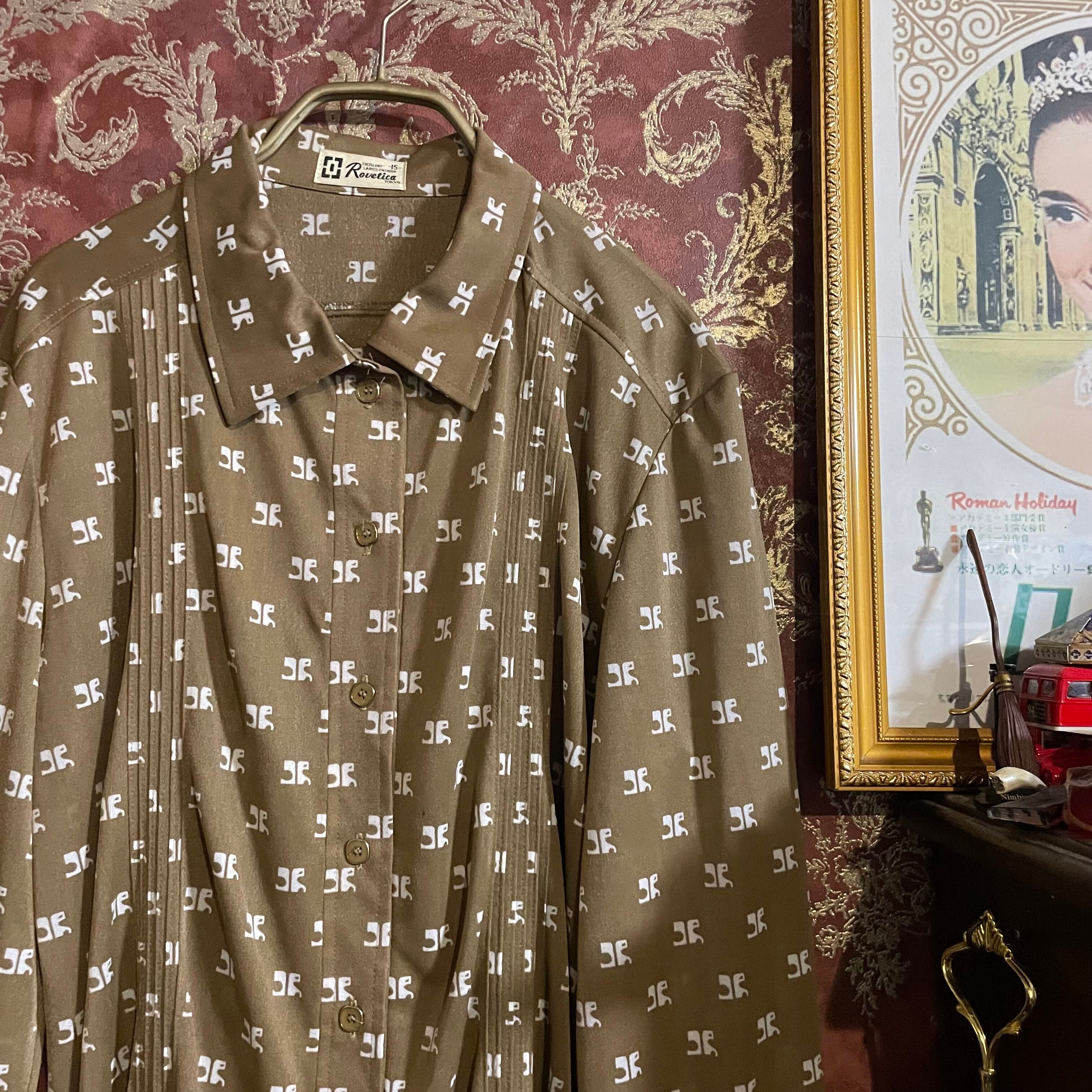 ダークベージュをベースに、クレージュのロゴ柄のブラウスです。