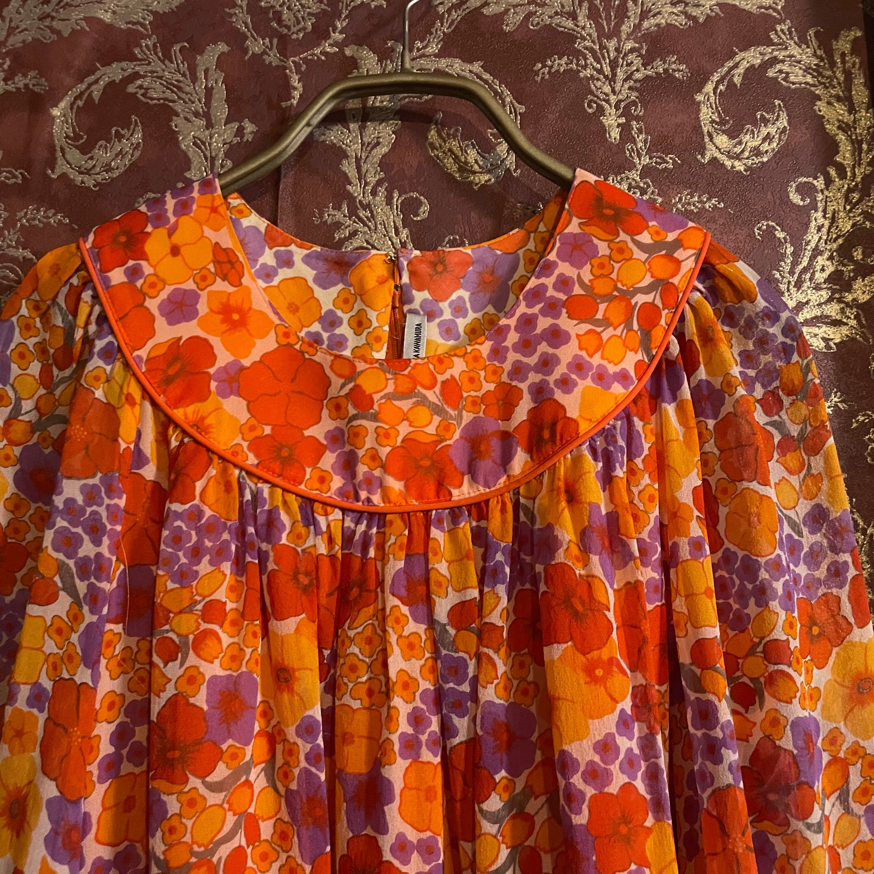 オレンジを基調とした花柄のヴィンテージワンピースです。
