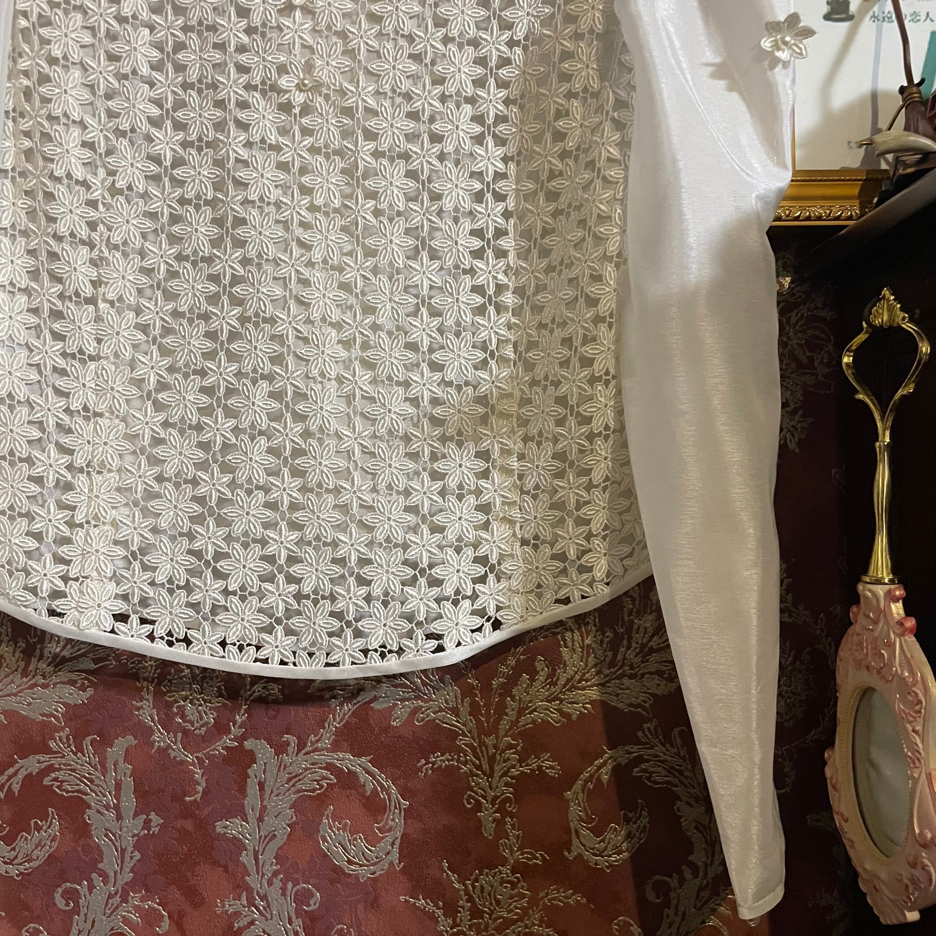 white × flower lace blouse