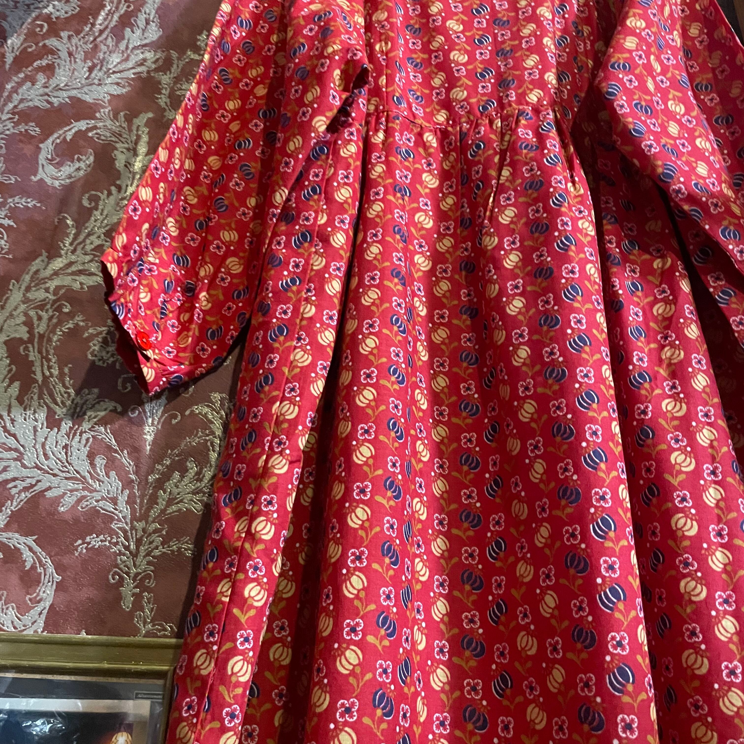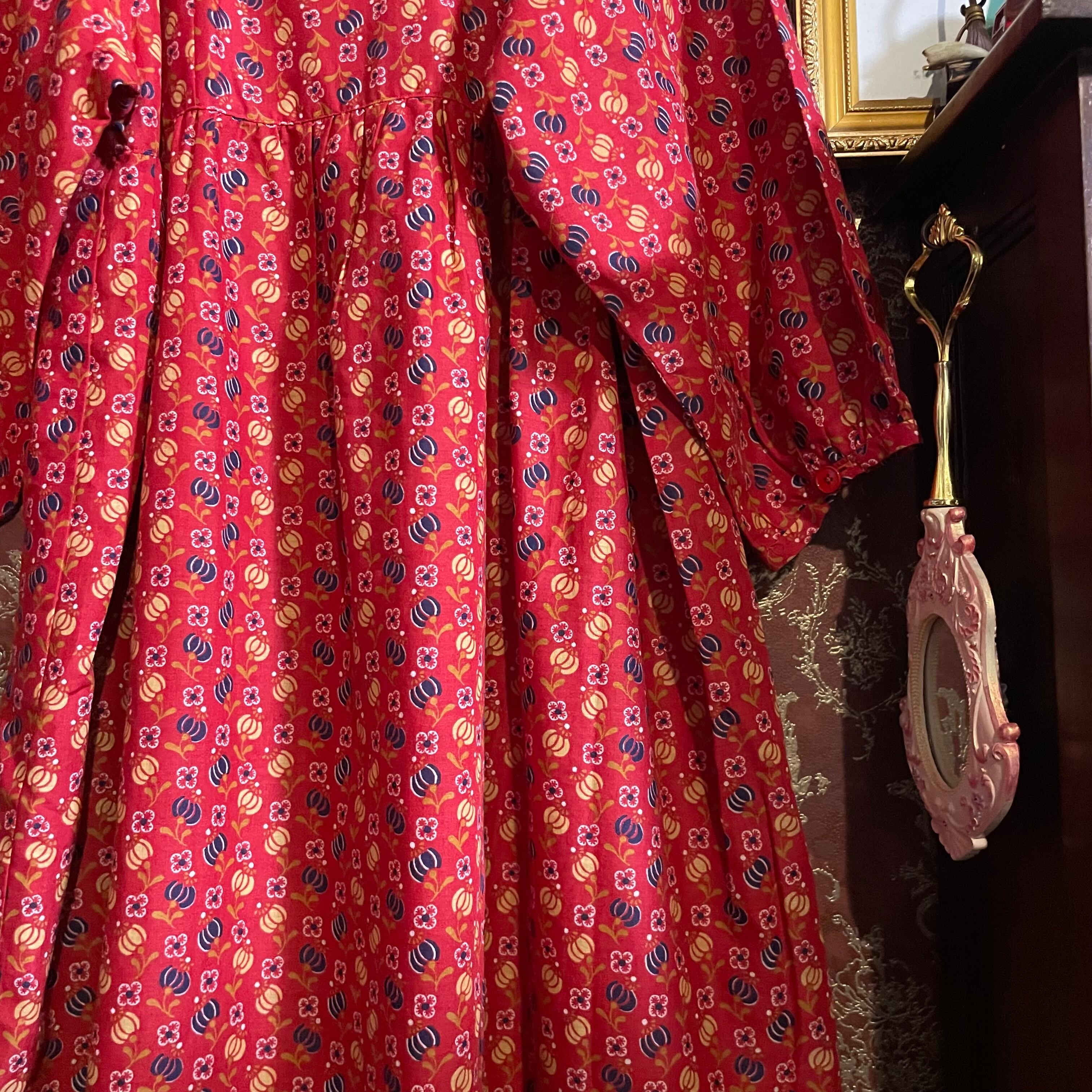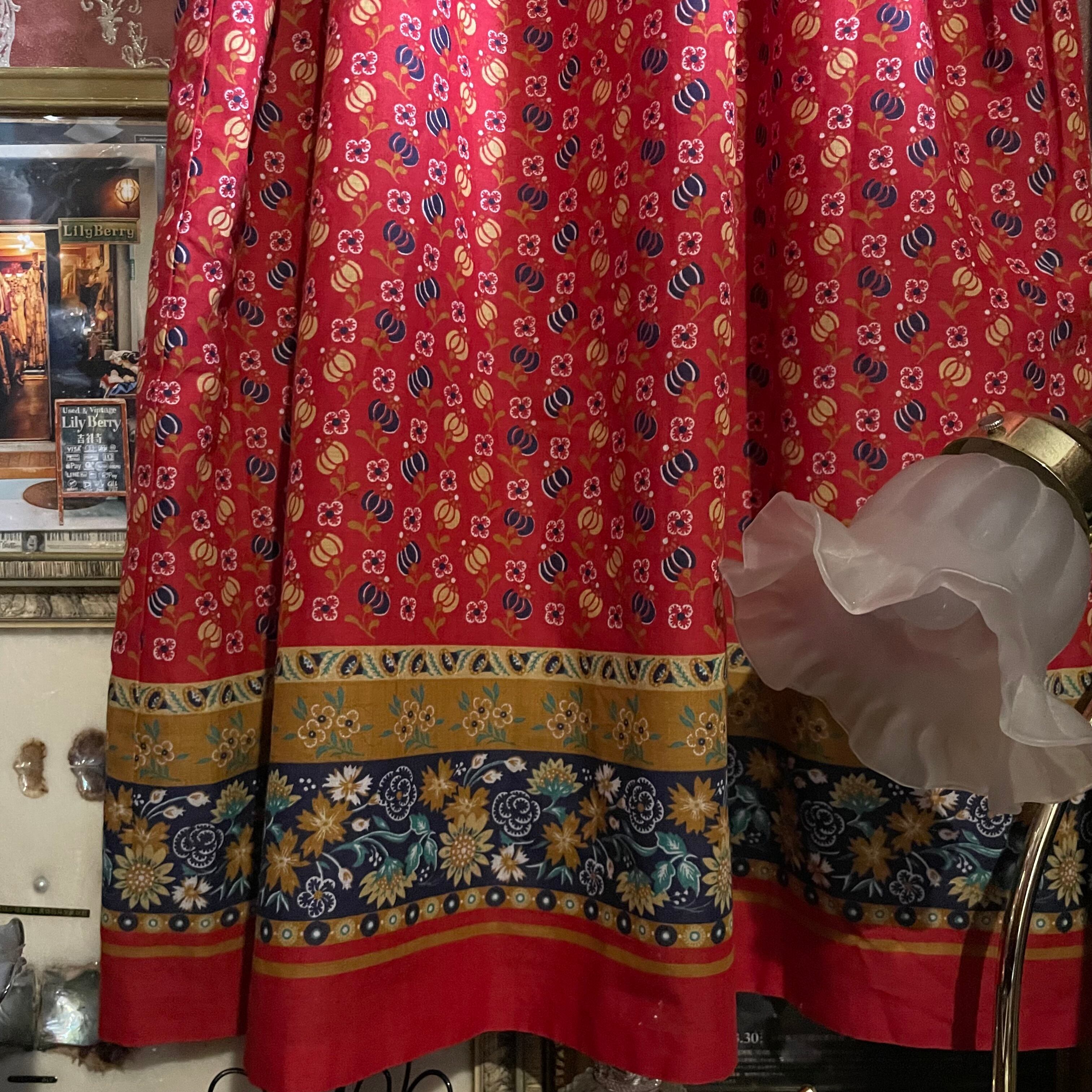 赤をベースにエスニック風の配色が個性的なヴィンテージワンピースです。