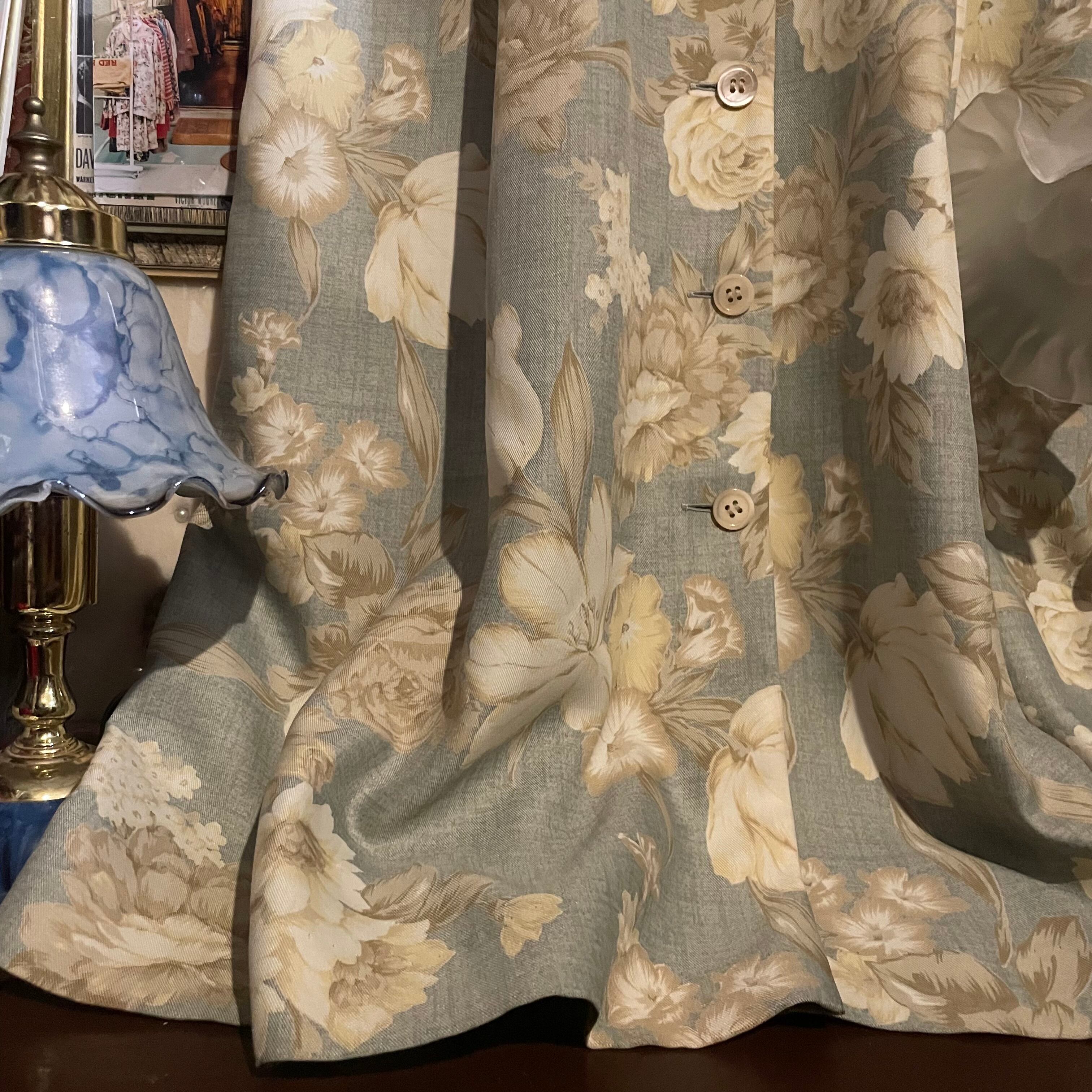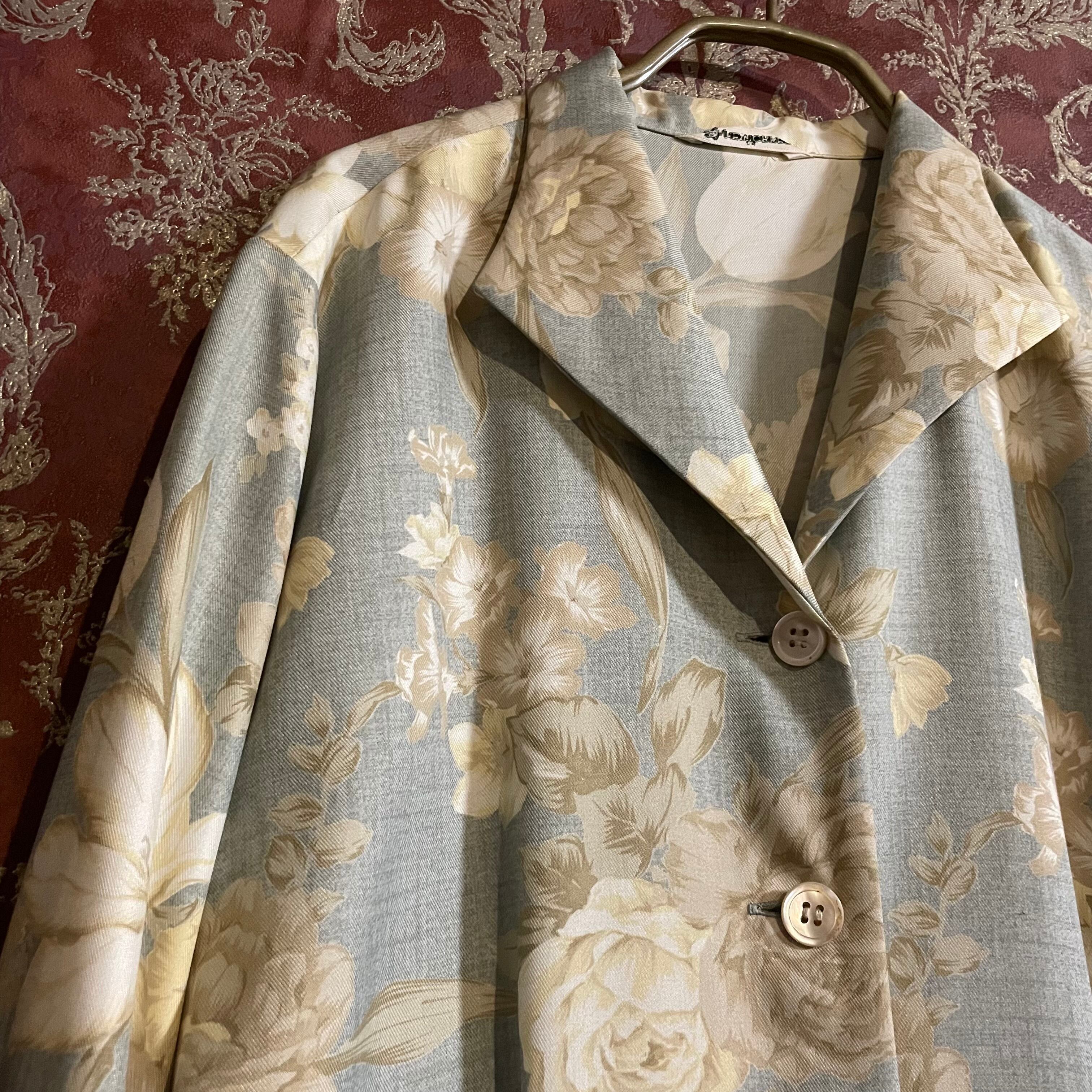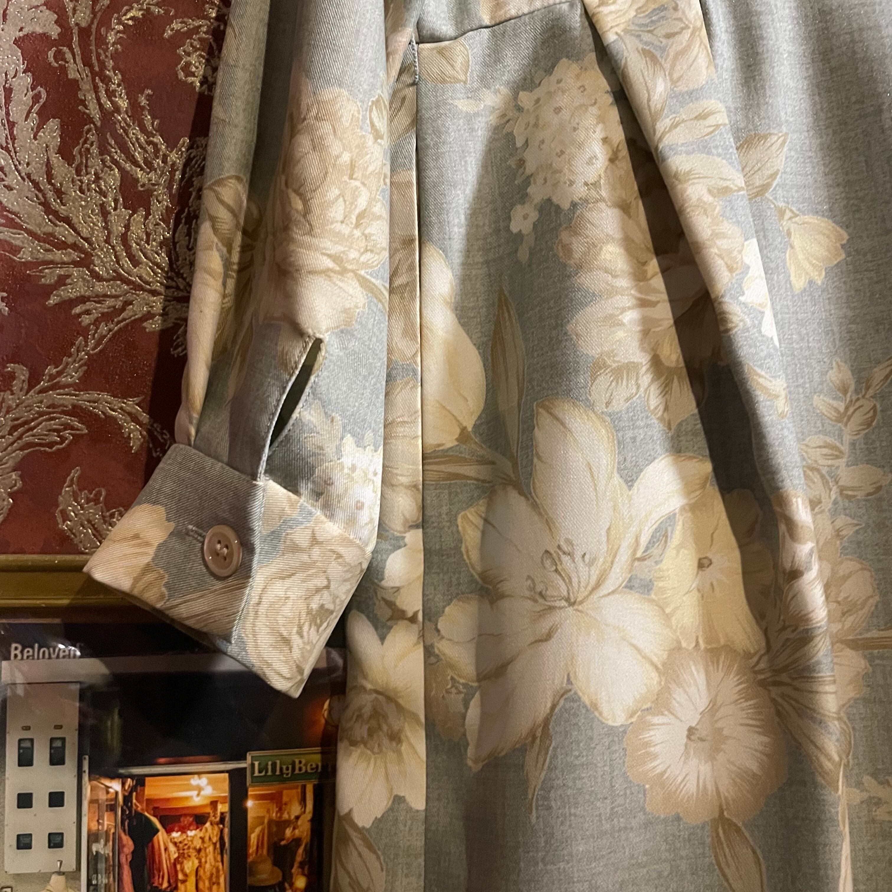 爽やかなブルーグレーをベースに、セピアカラーの花柄でノスタルジックな雰囲気です。
