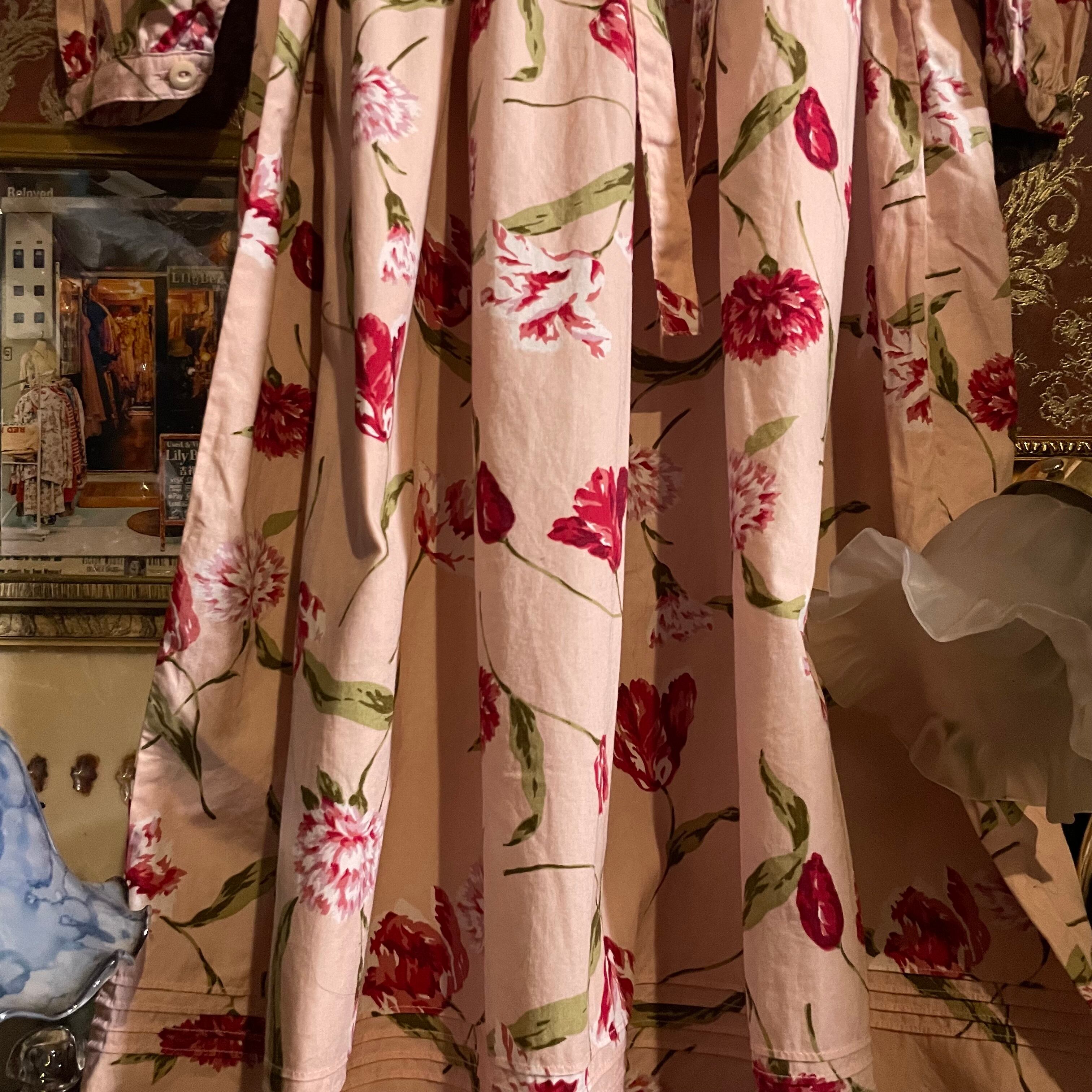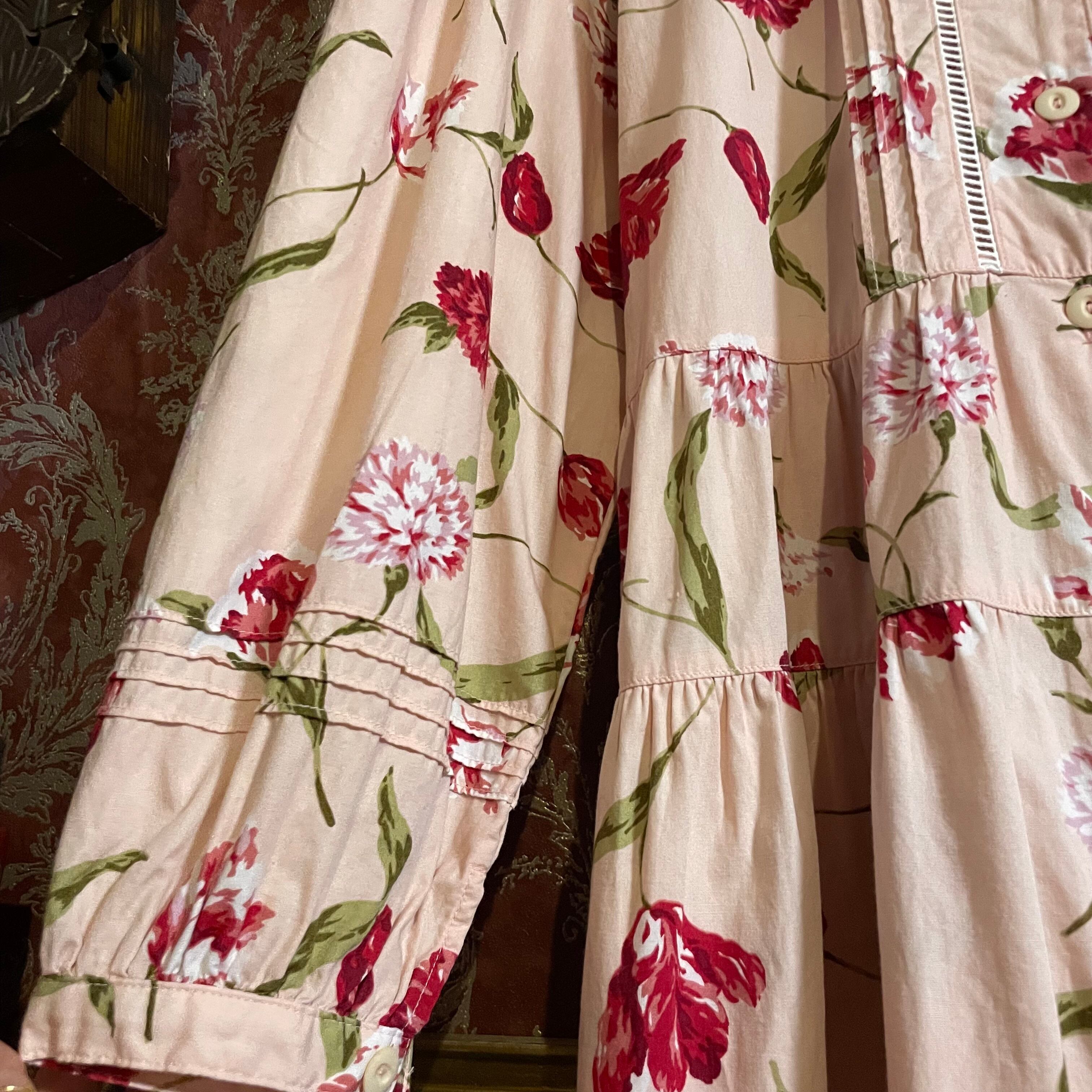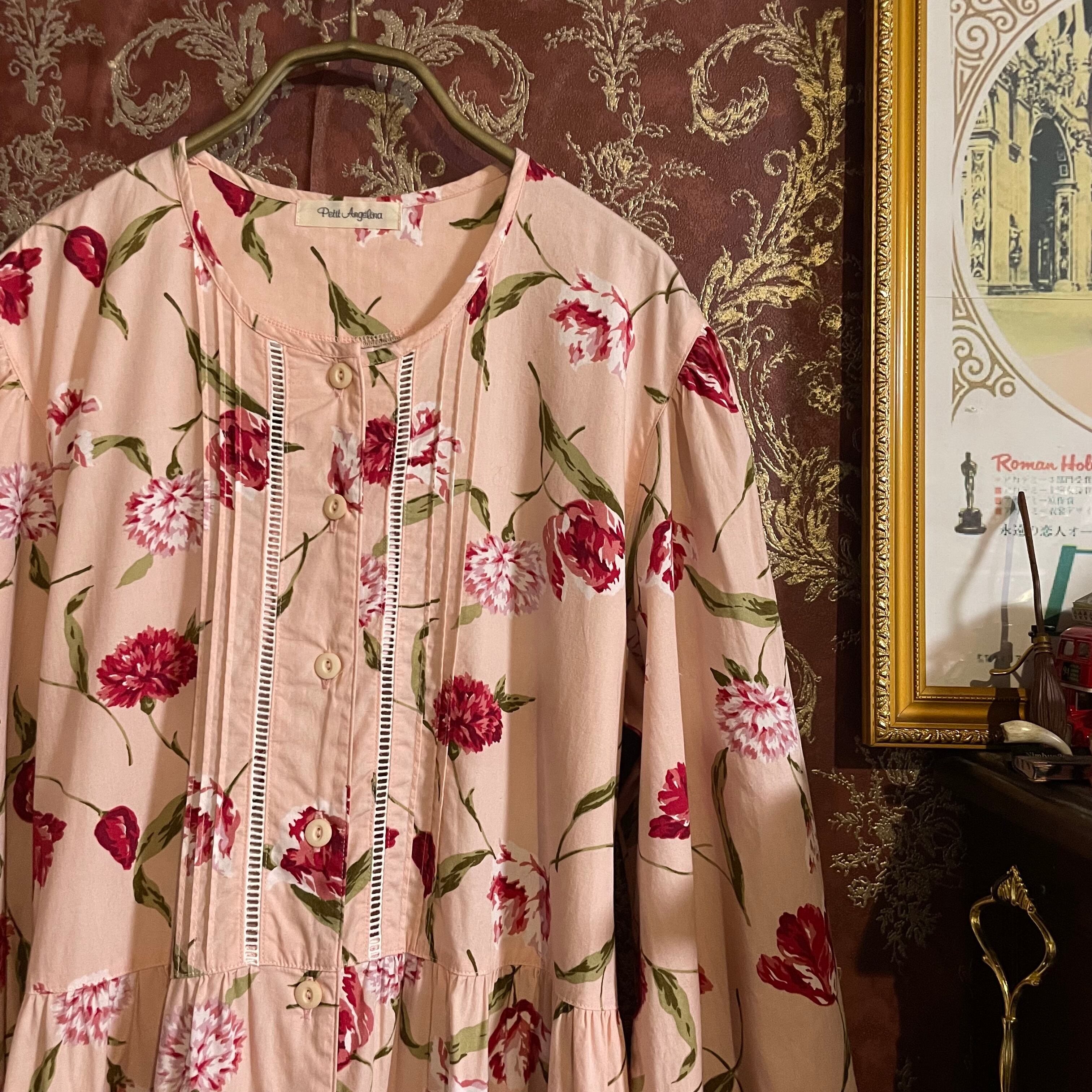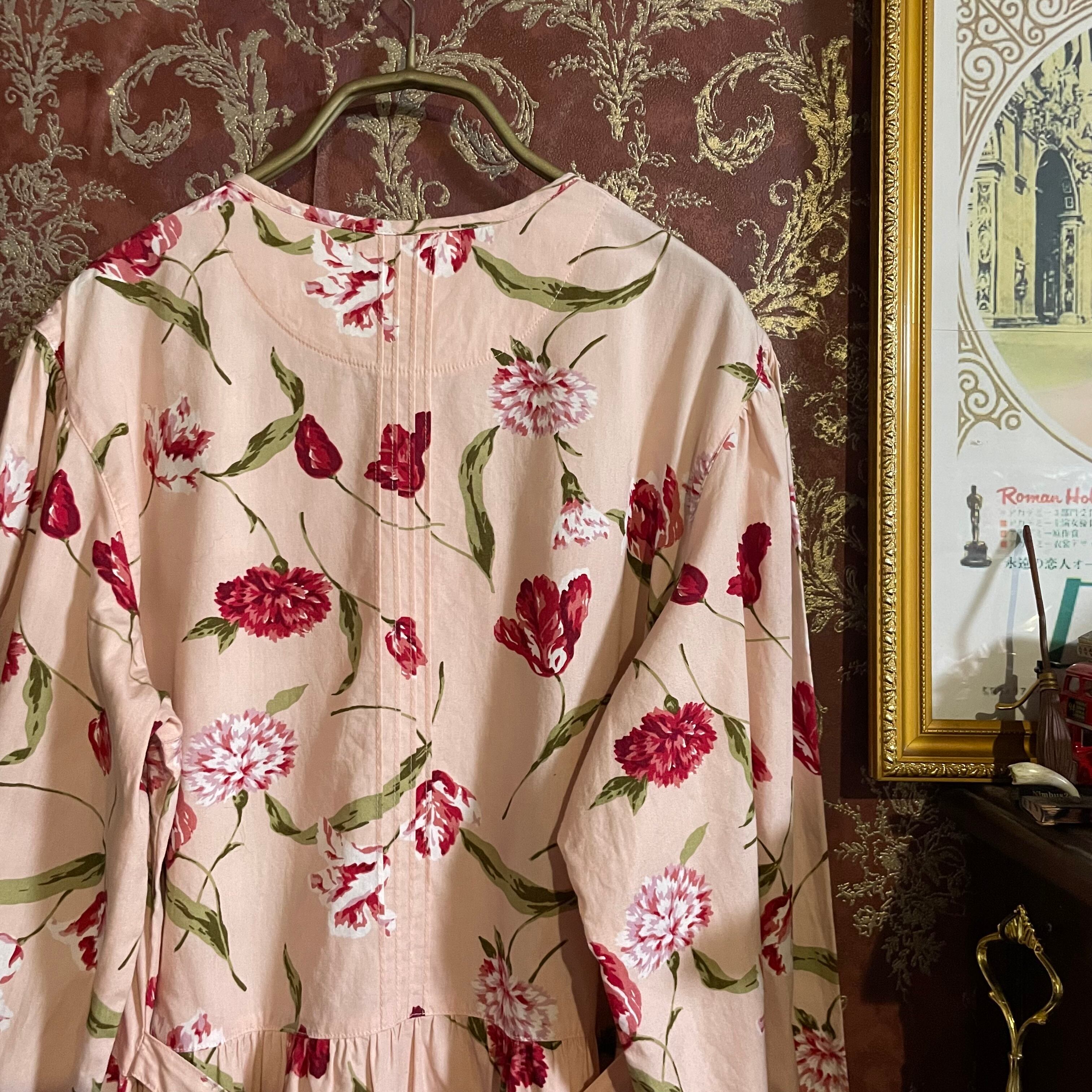 淡いピンクをベースにカーネーションとチューリップ柄のワンピースです。
