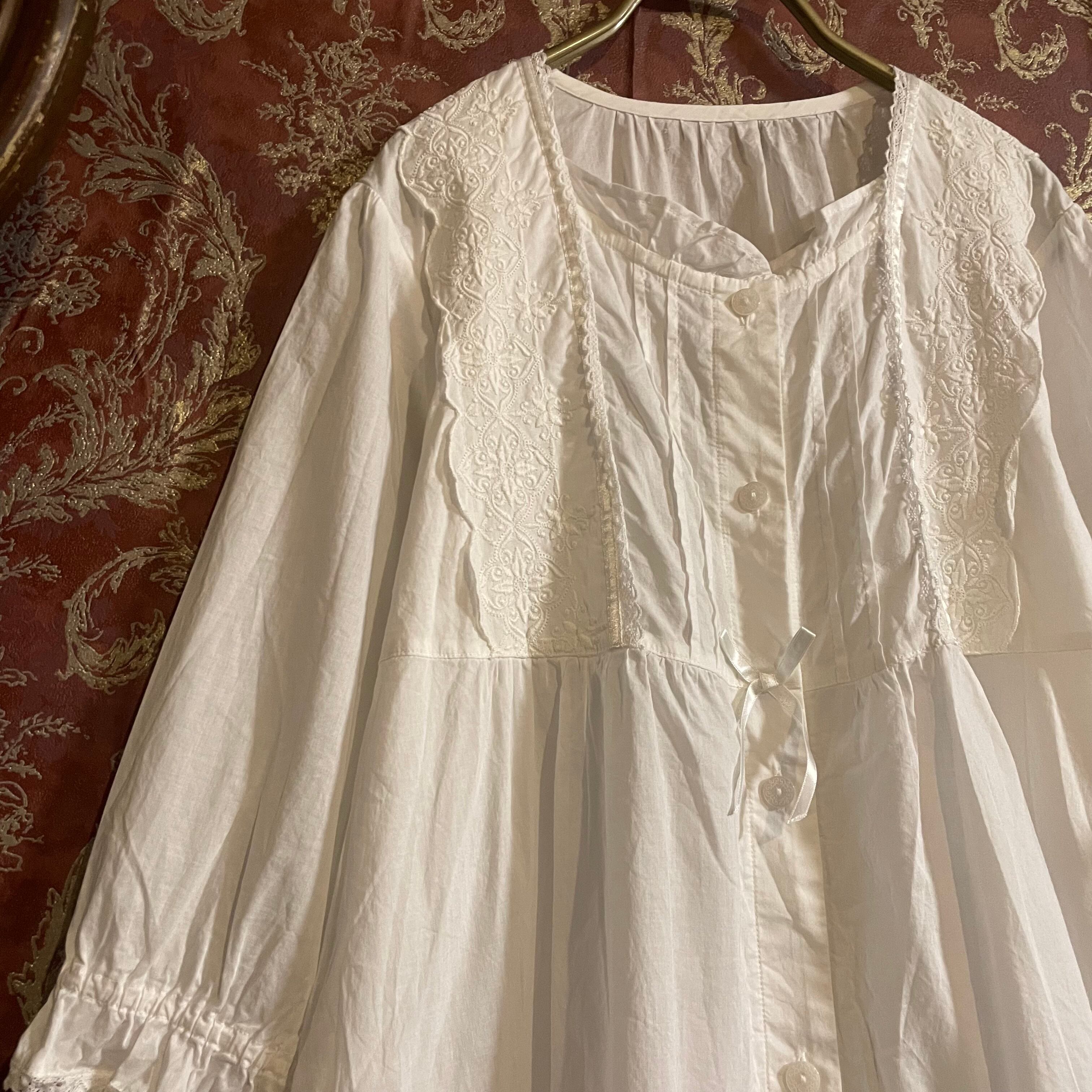 レースやリボンなどの装飾が可愛らしく、袖口にはゴムが入っています。