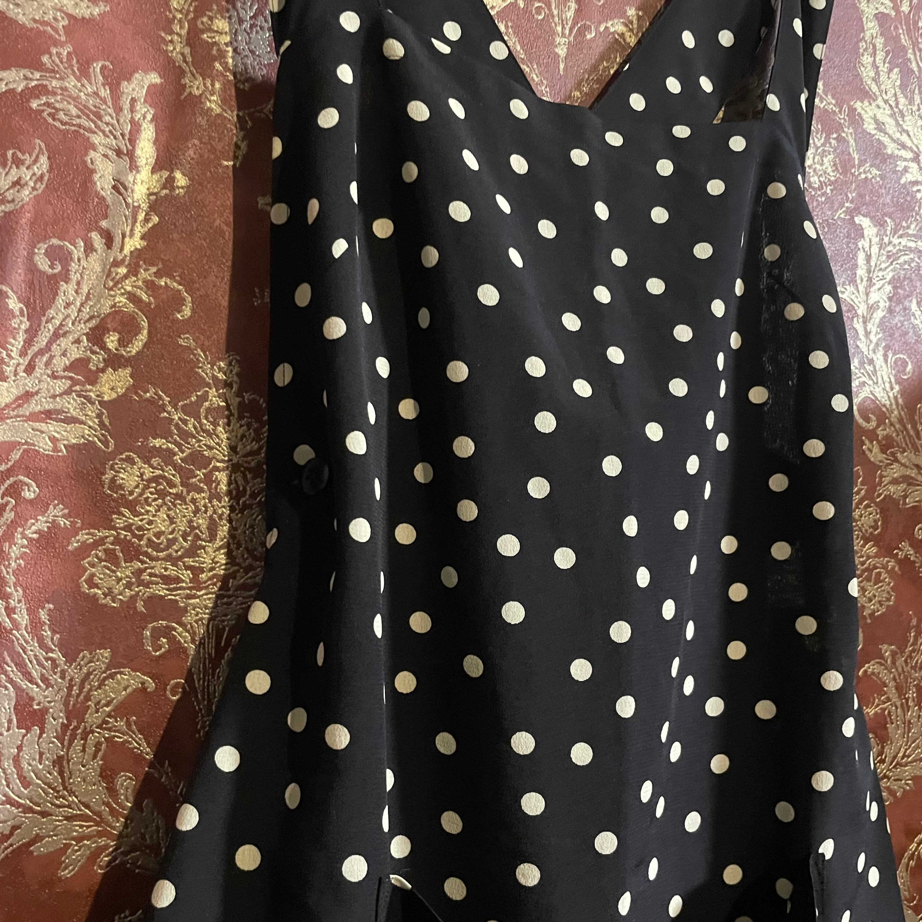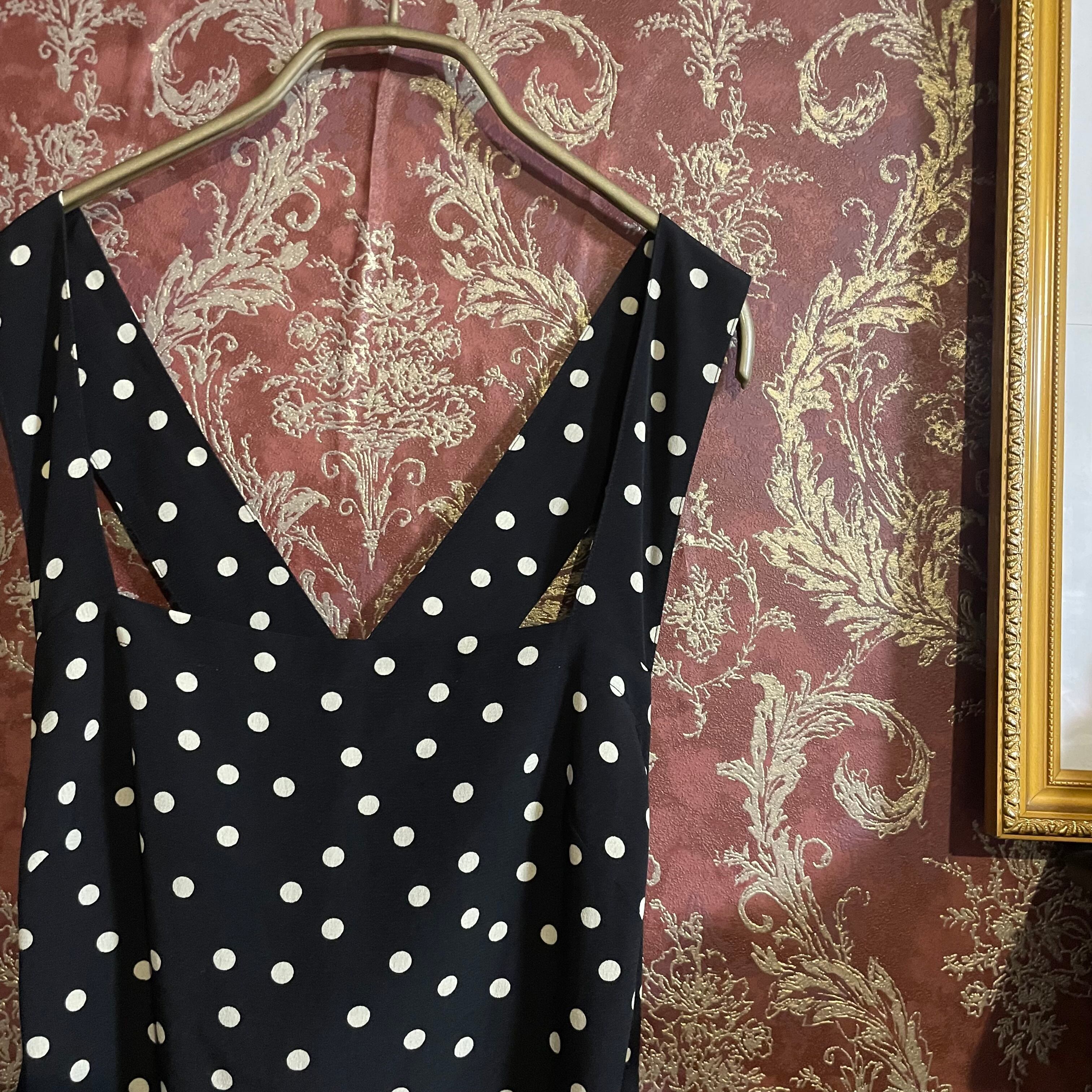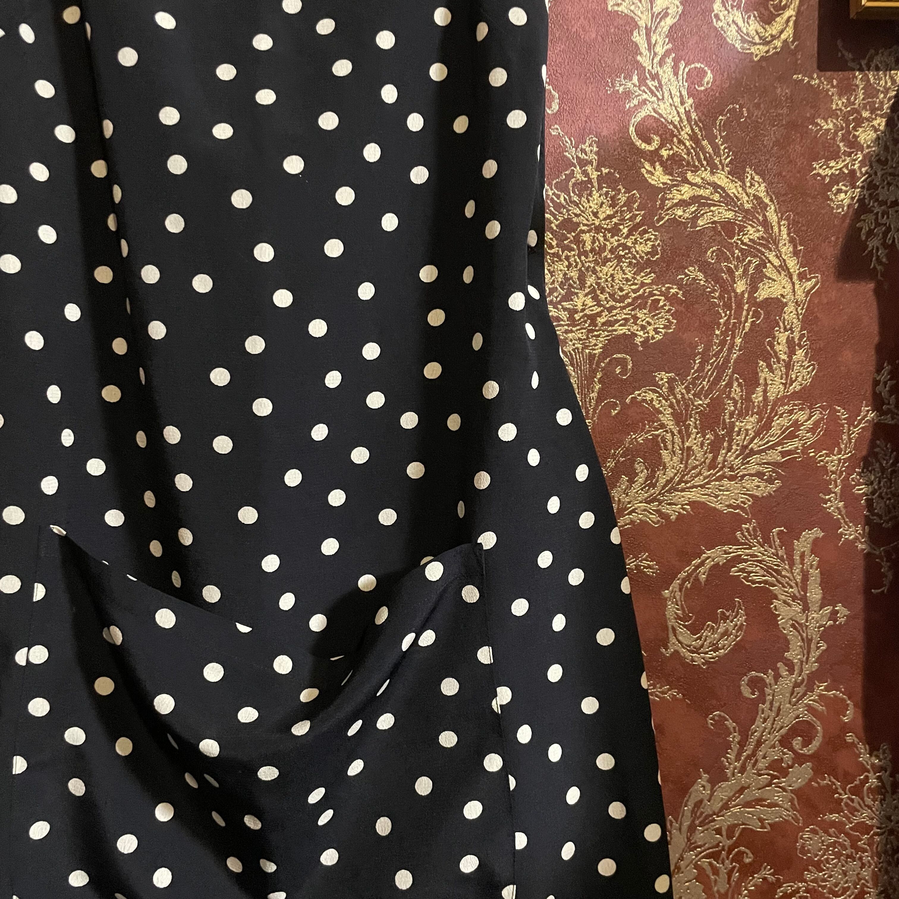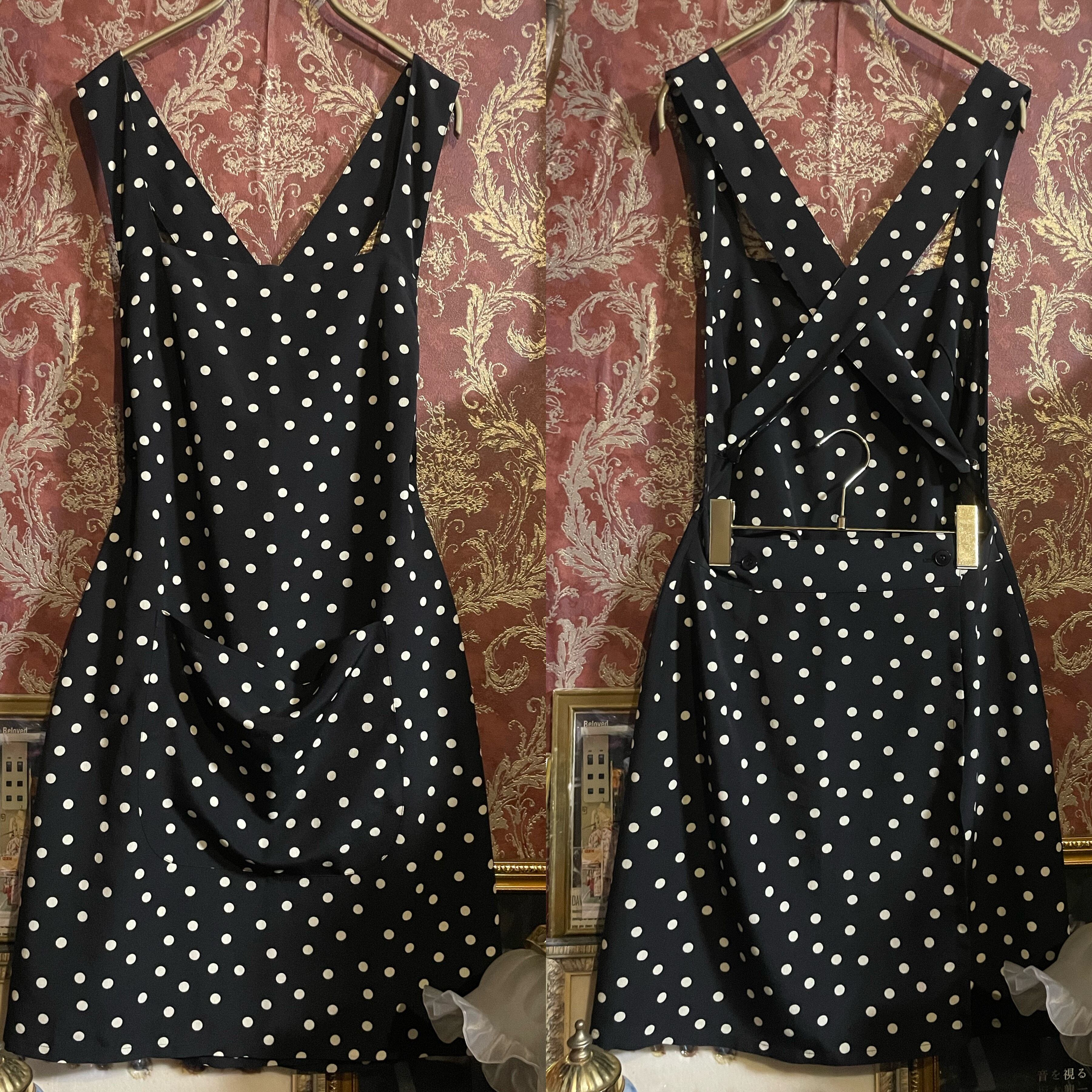モノトーンのドット柄がクラシカルなアニエスベーのエプロンです。