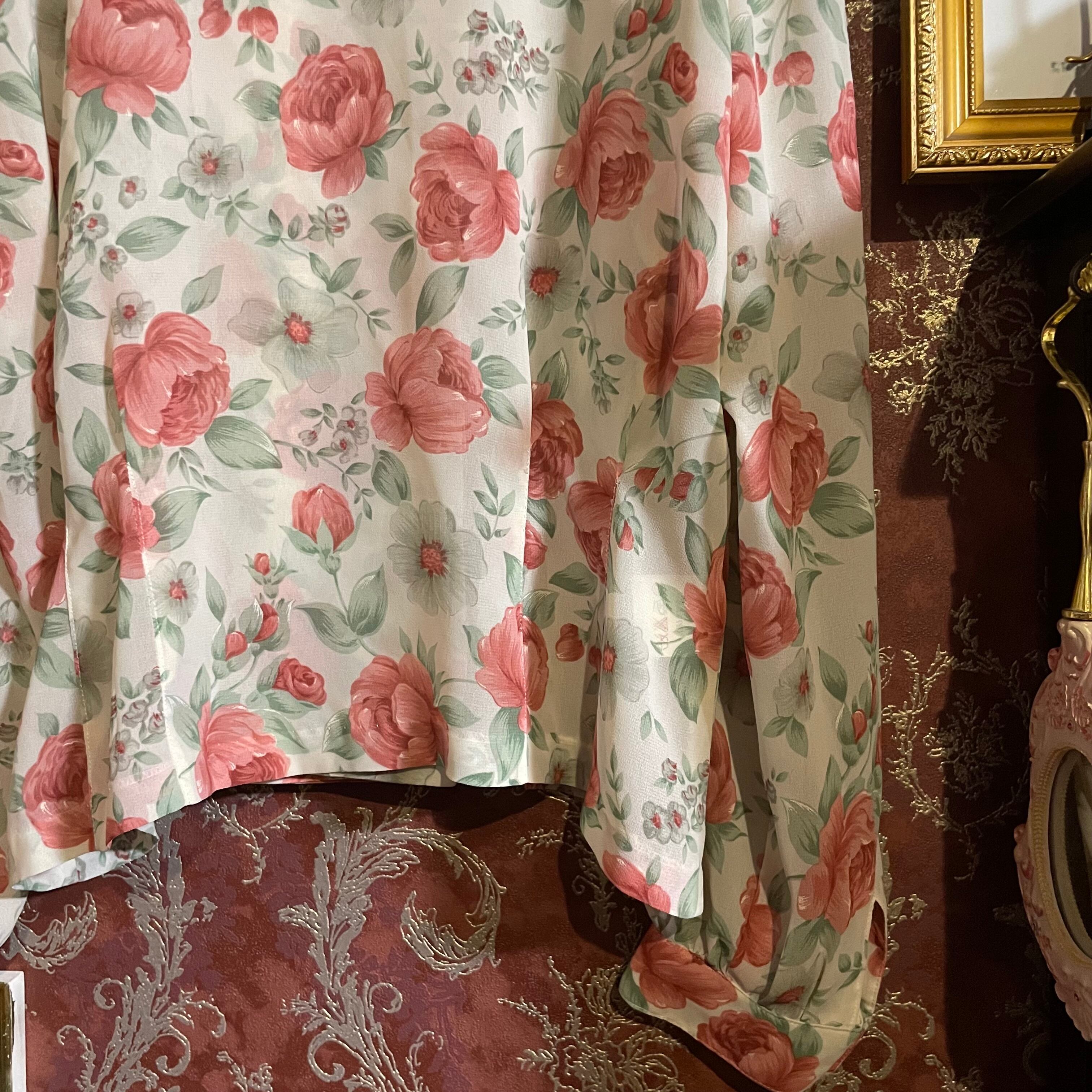 牡丹や薔薇をモチーフにした柄が多い中、あまりお洋服として見かけることの無い芍薬が使われています。