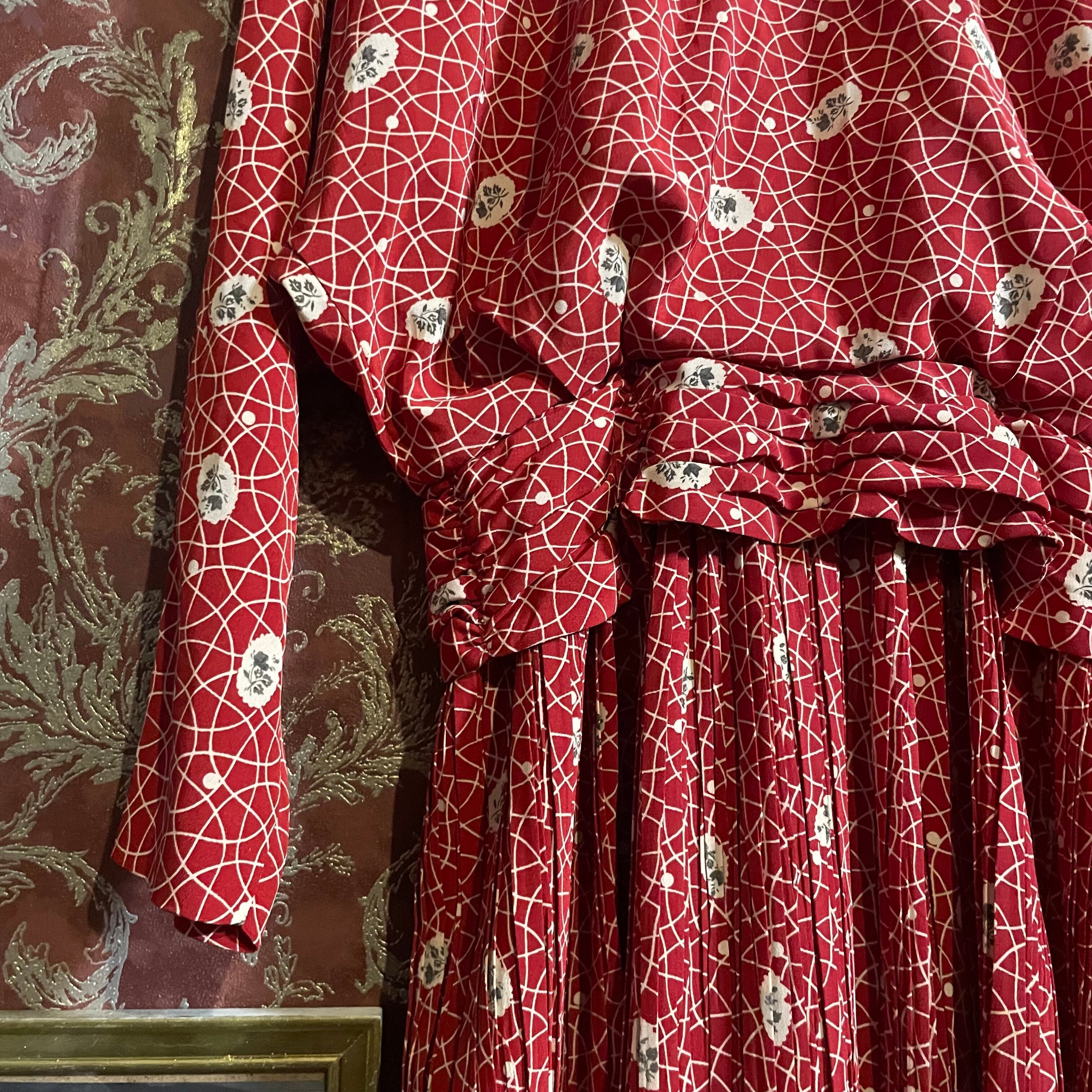red retro pattern pleats one piece