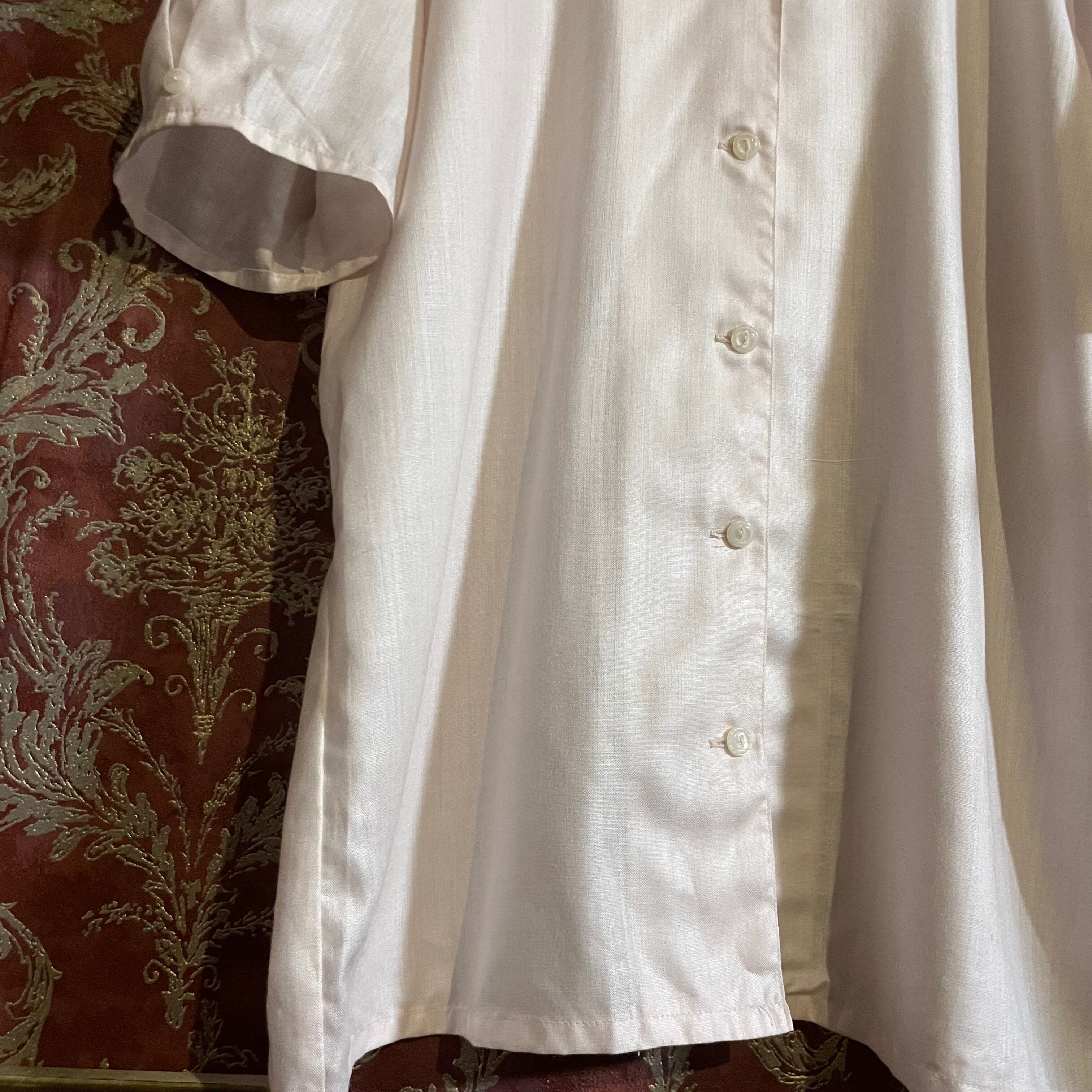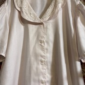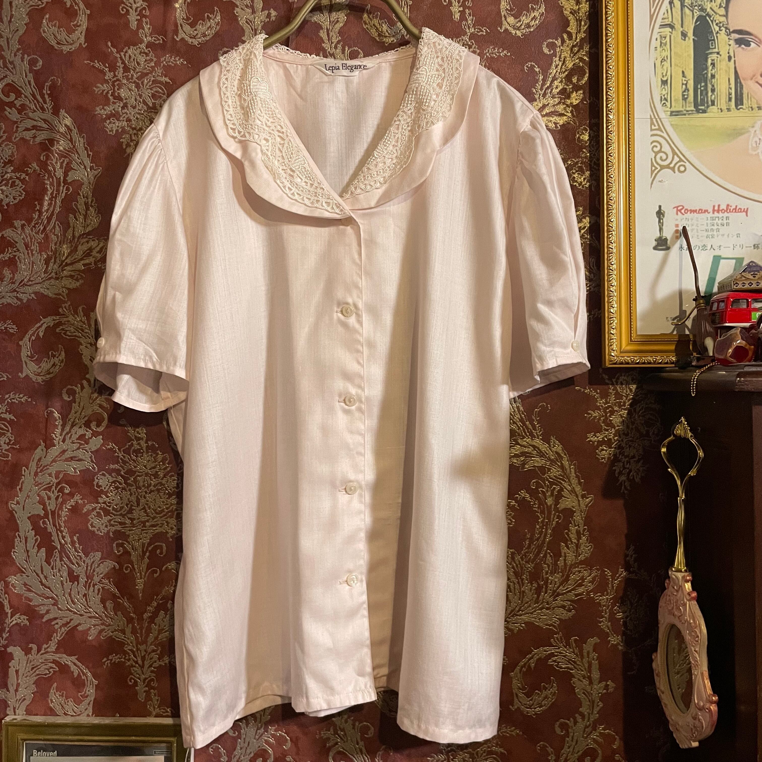 可愛らしいベビーピンクをベースに、レースカラーが上品なブラウスです。