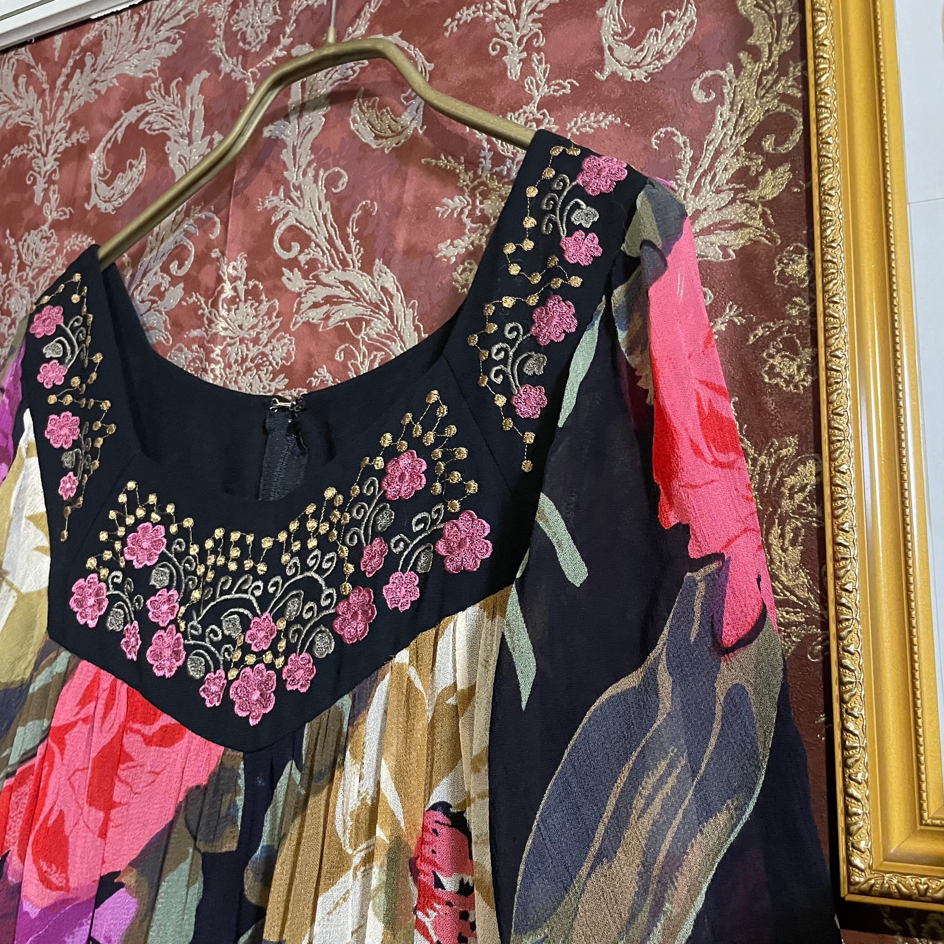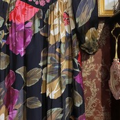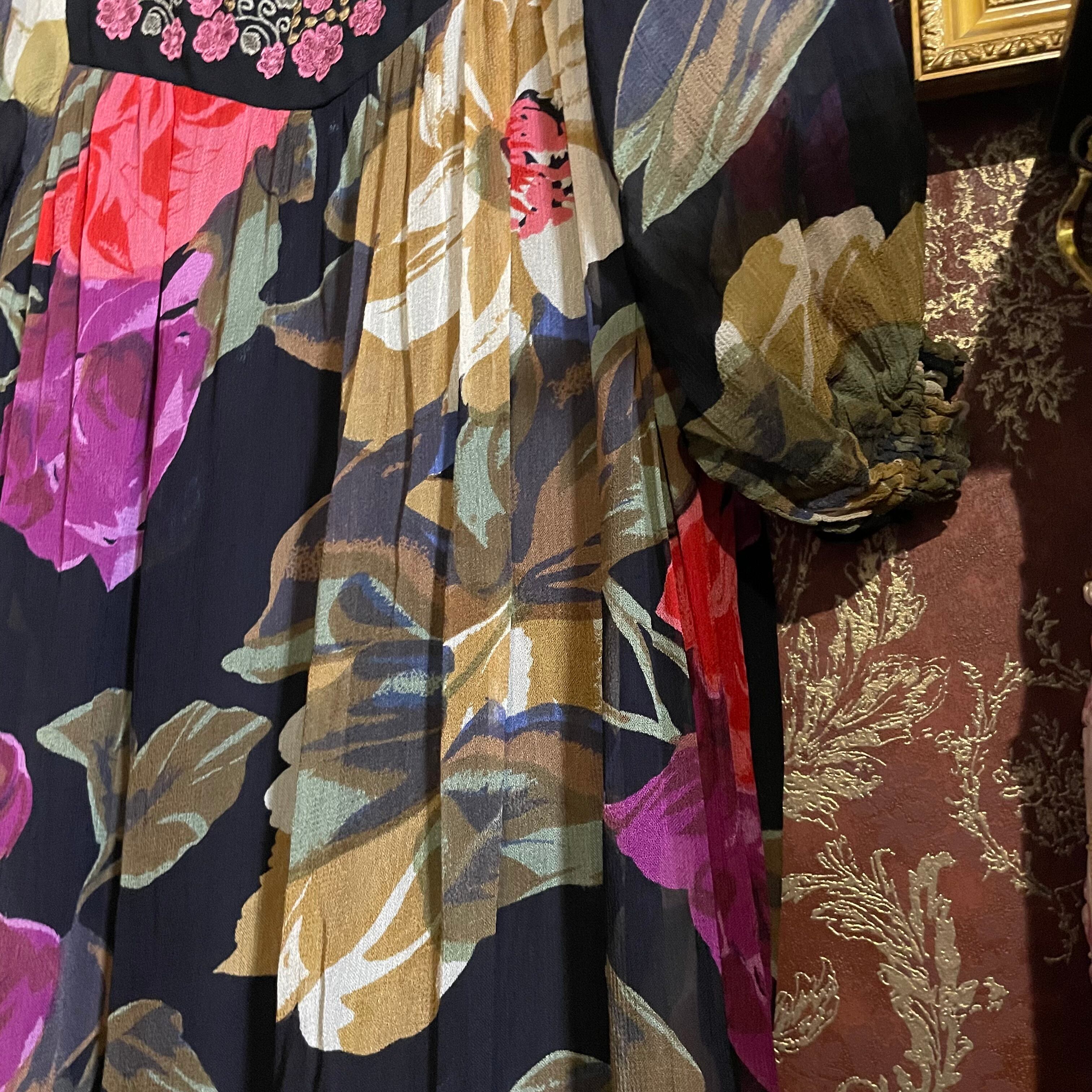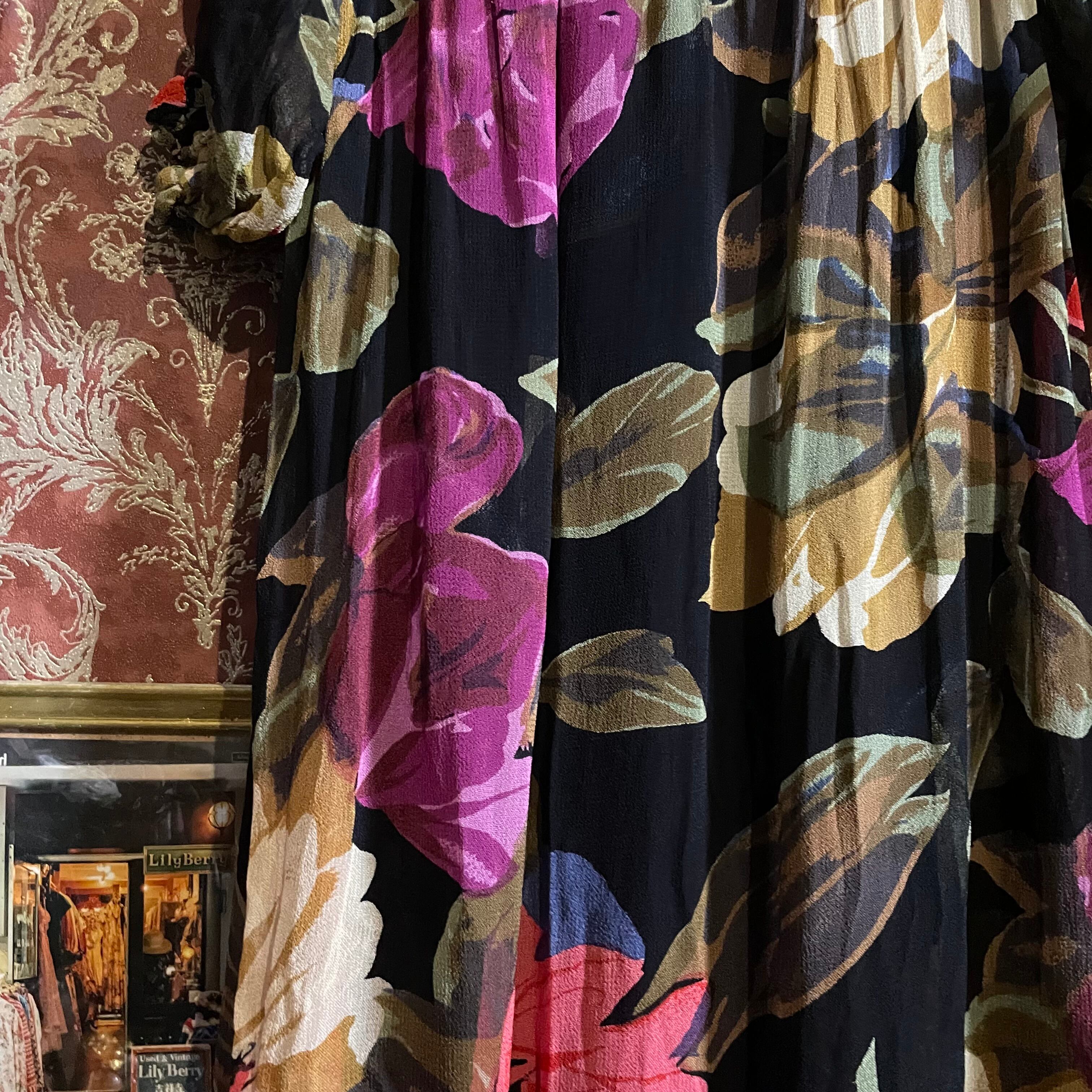 黒をベースに大きな花柄のヴィンテージワンピースです。