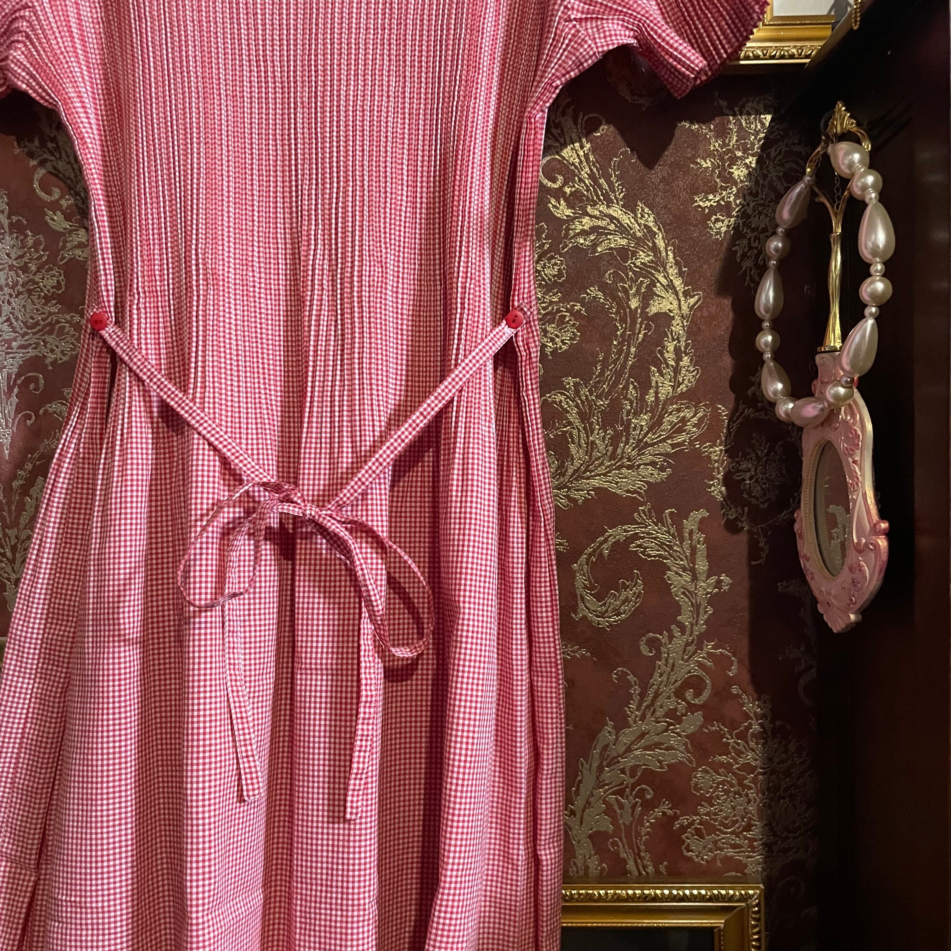 細かなギンガムチェックなので甘さが抑えられ、シンプルな印象に◎