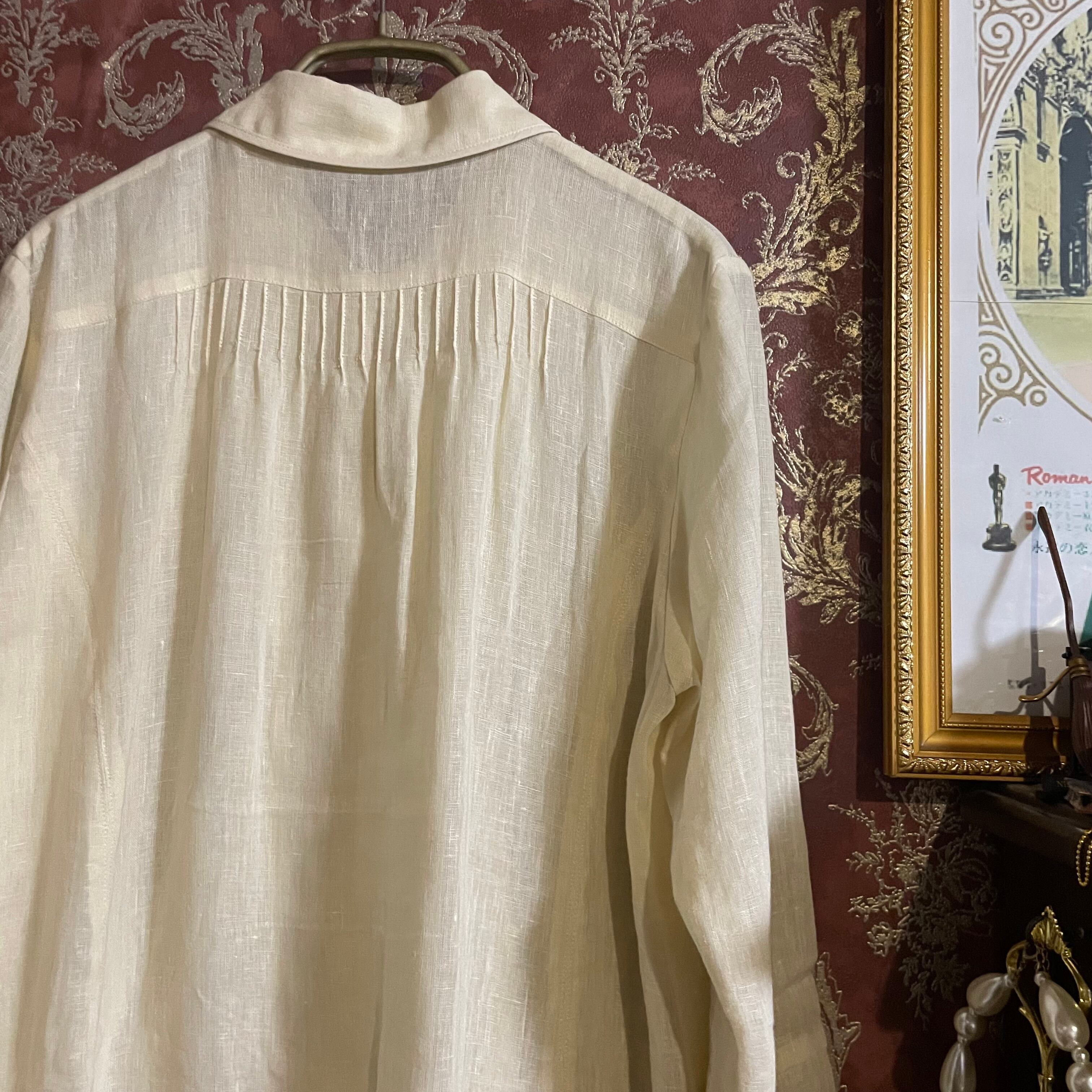 生成ベージュのリネンブラウスです。