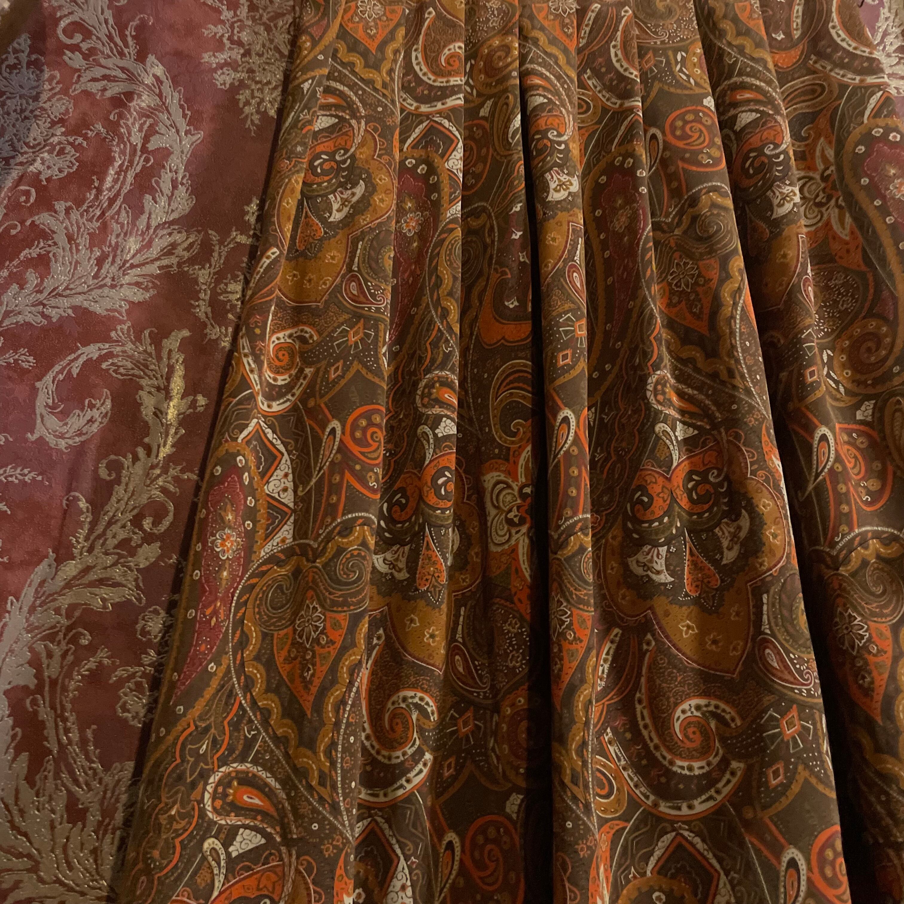 オレンジやブラウンなどの温かみのある配色のペイズリー柄スカートです。