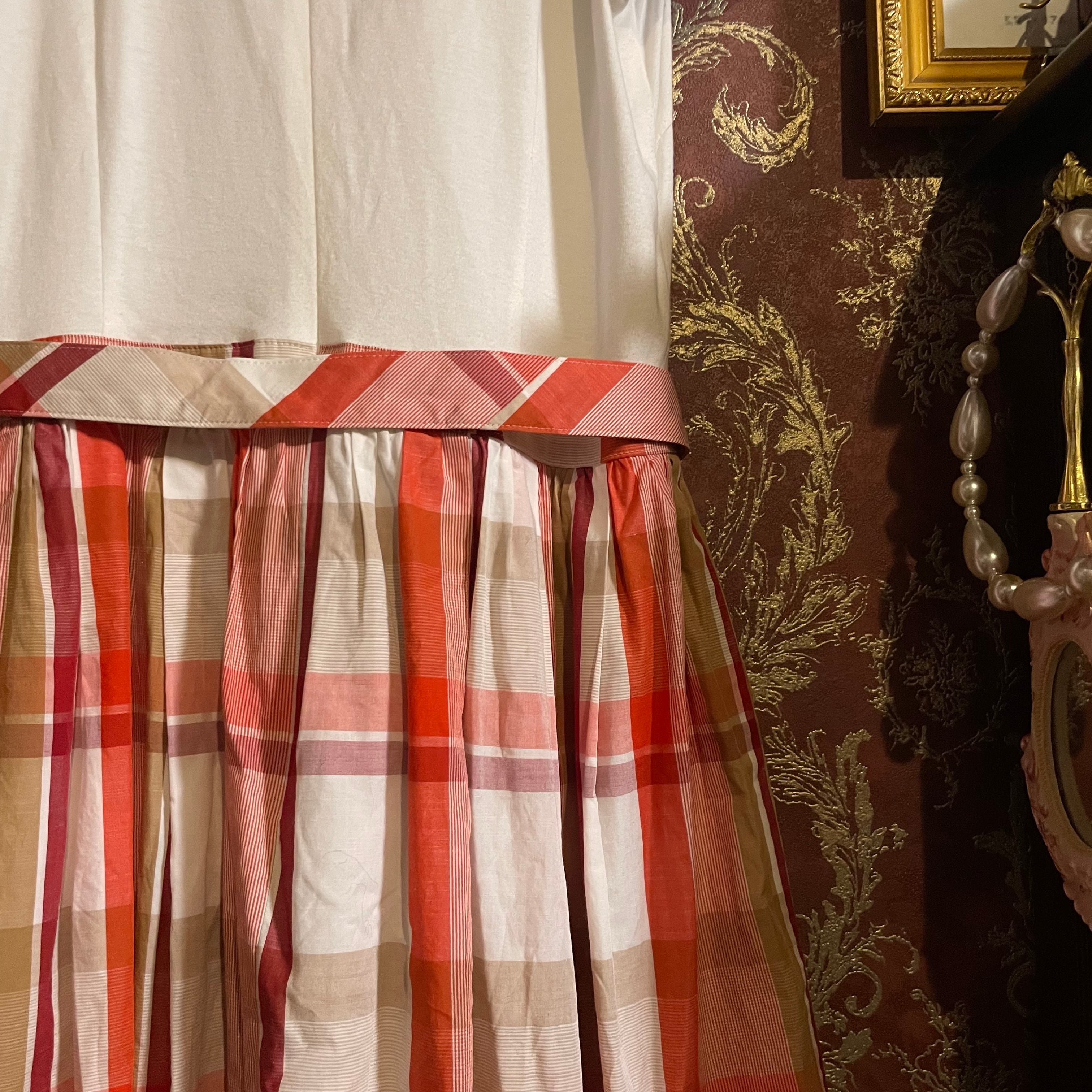 スカートは大きめのチェック柄で、短めのフレアスカートです。