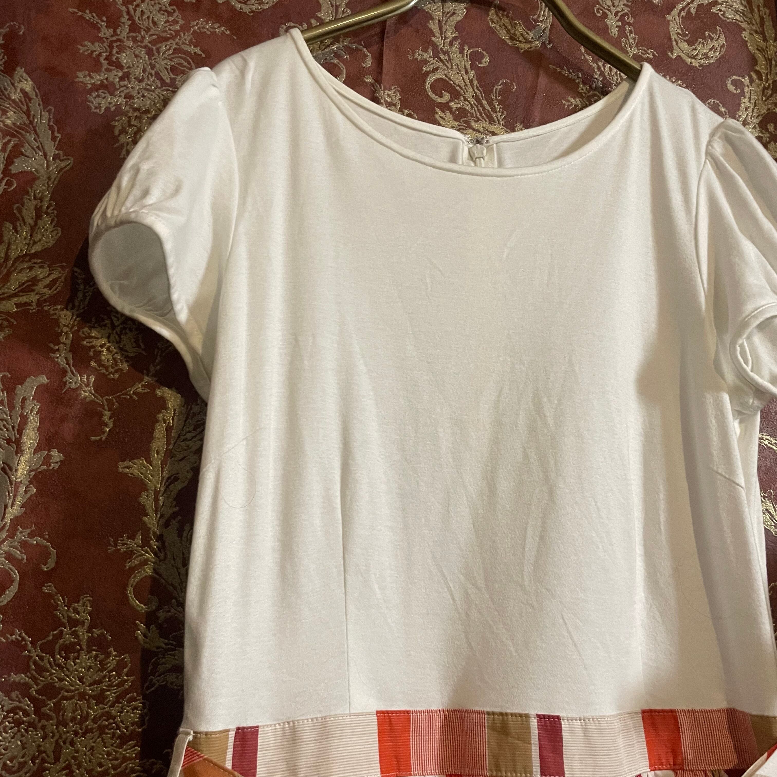 上身頃は伸縮性のあるTシャツのような生地感のパフスリーブです。