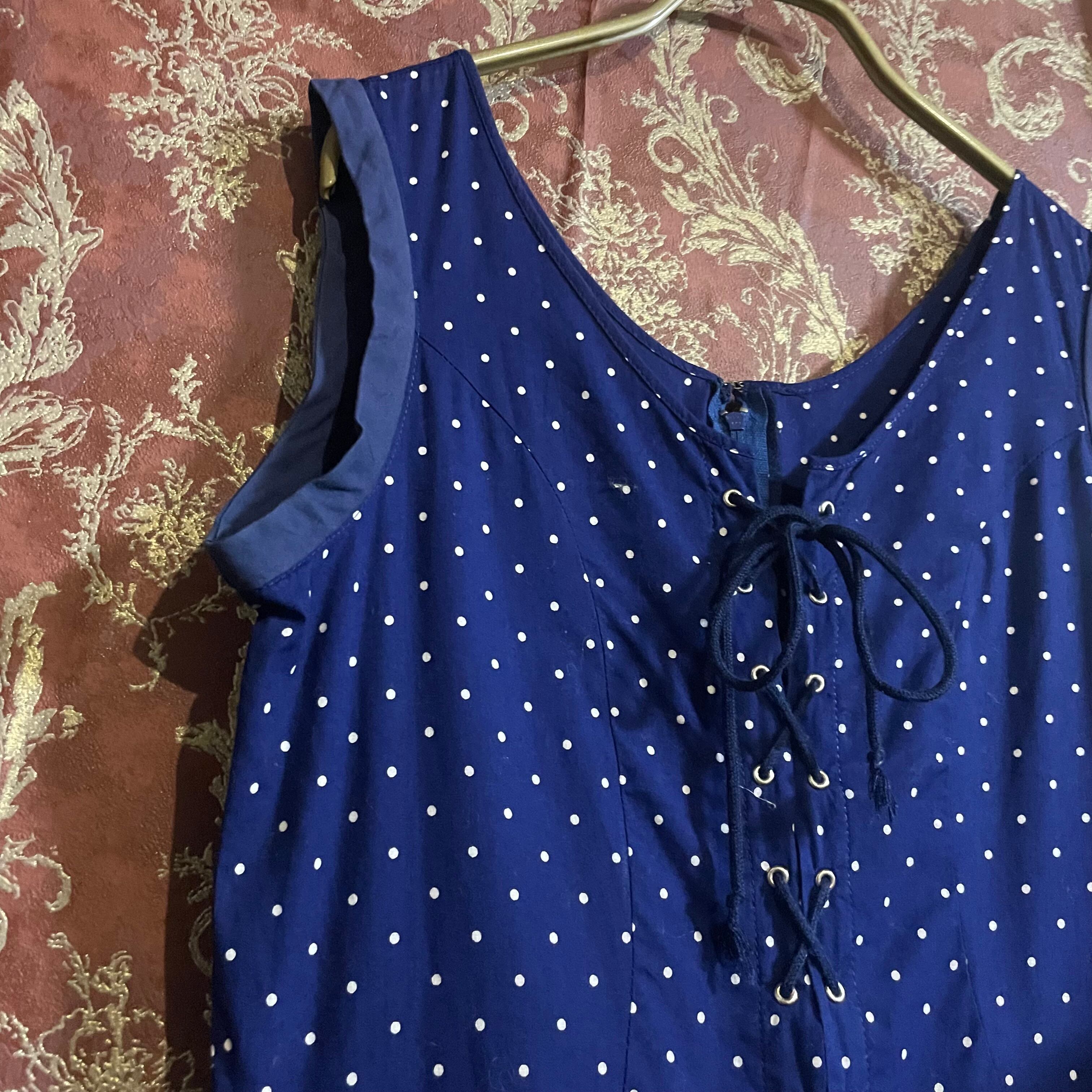 上品でクラシカルな印象のネイビーのノースリーブワンピースです。
