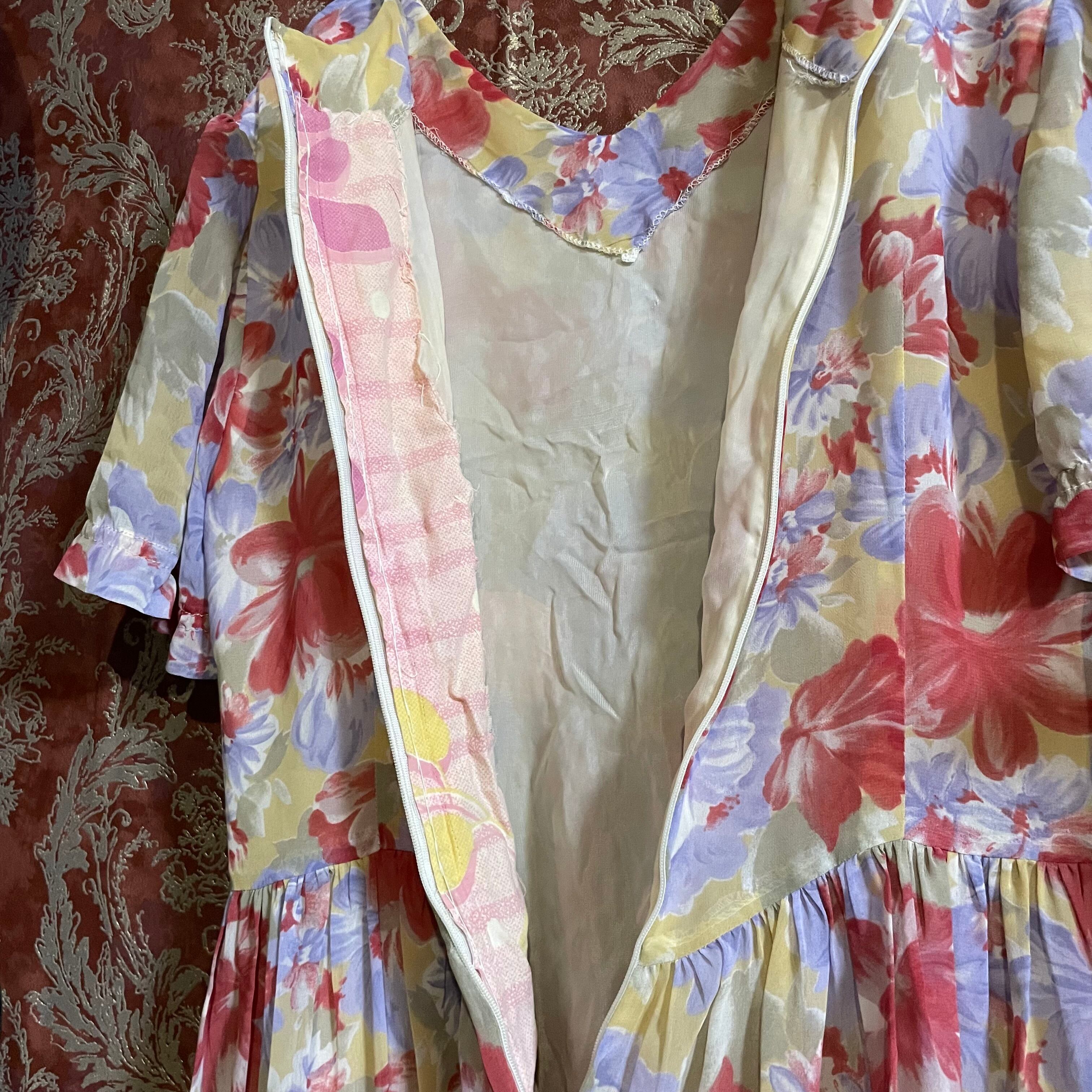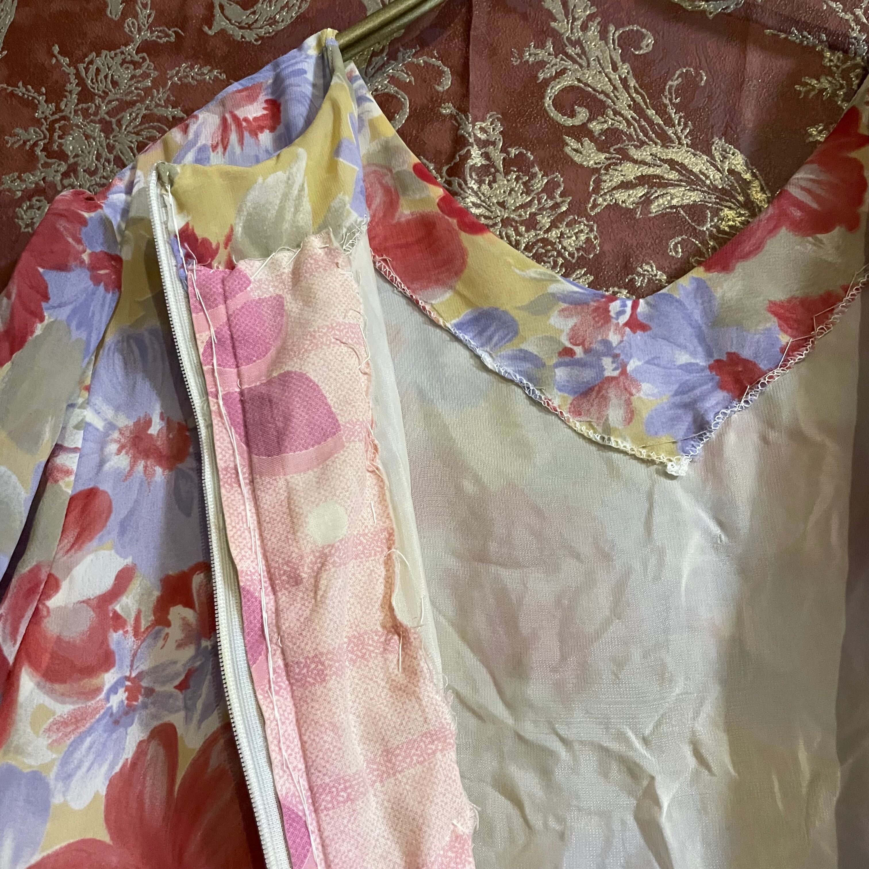 ・フロントウエスト部分と背面ジッパー裏地に、それぞれ別布による手縫いの当て布があります。(8-9枚目、14-15枚目)着用時には見えにくい位置にありますが、補修跡としてご確認ください。