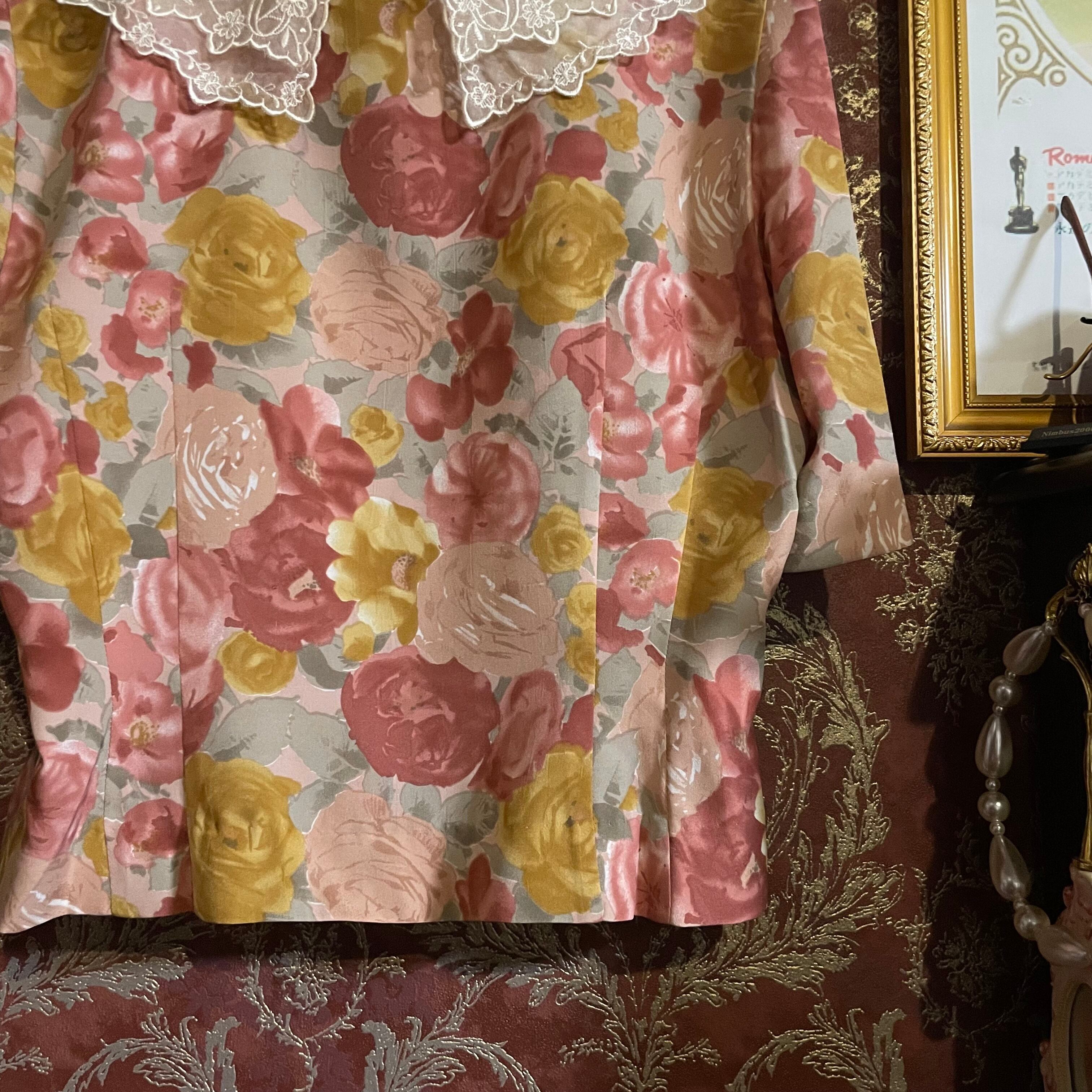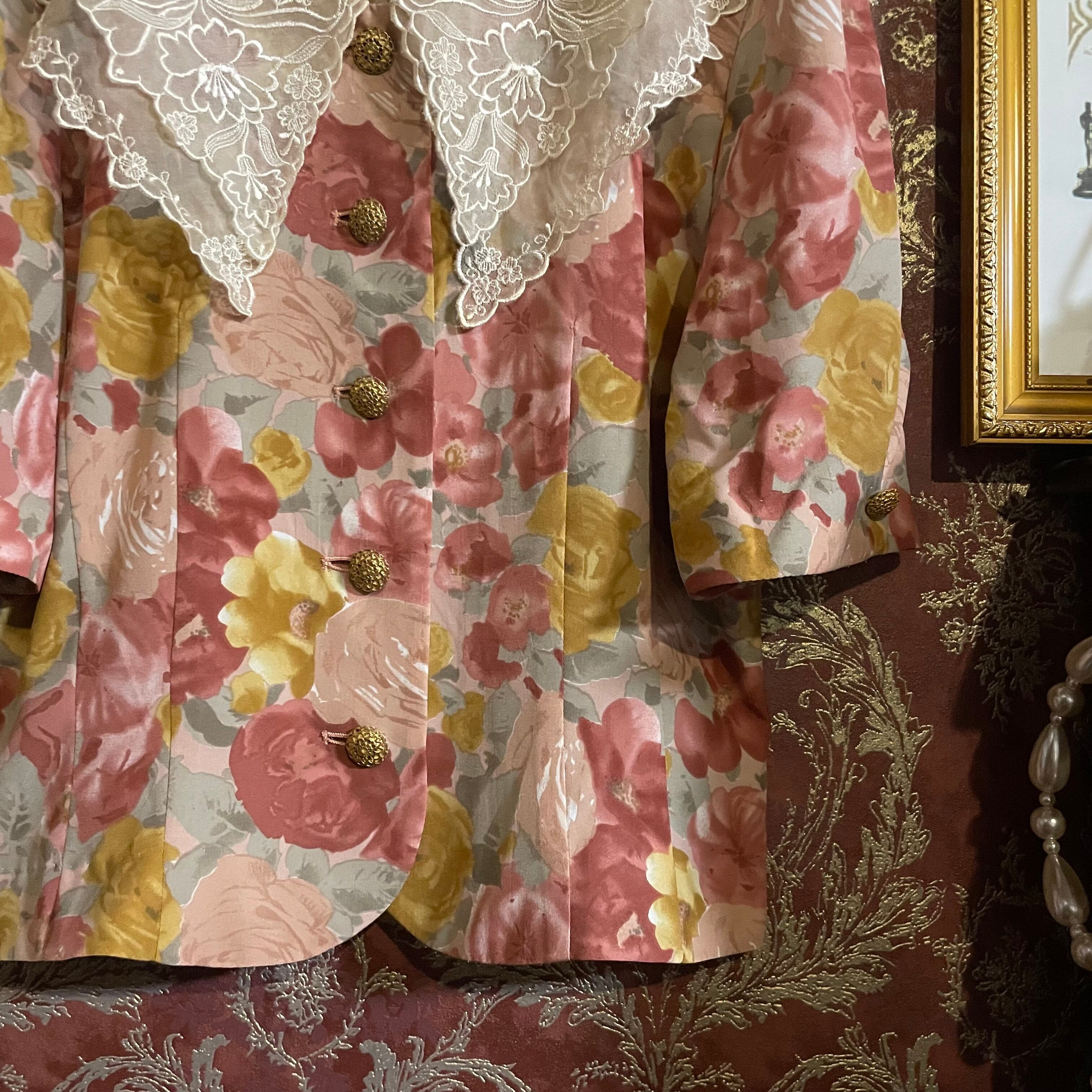 花束をまとったような、華やかなローズ柄のヴィンテージセットアップです。