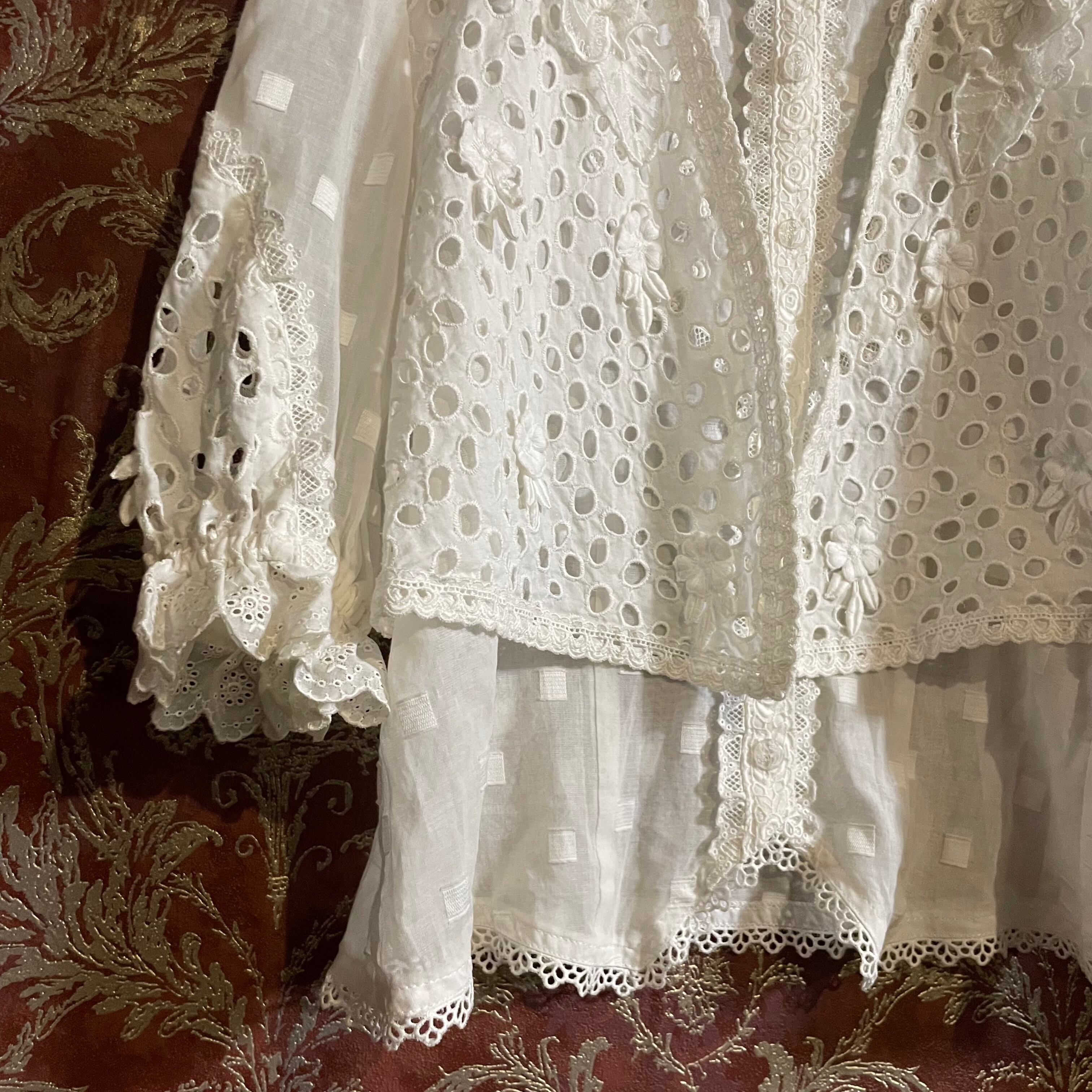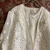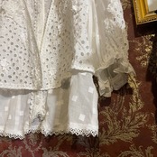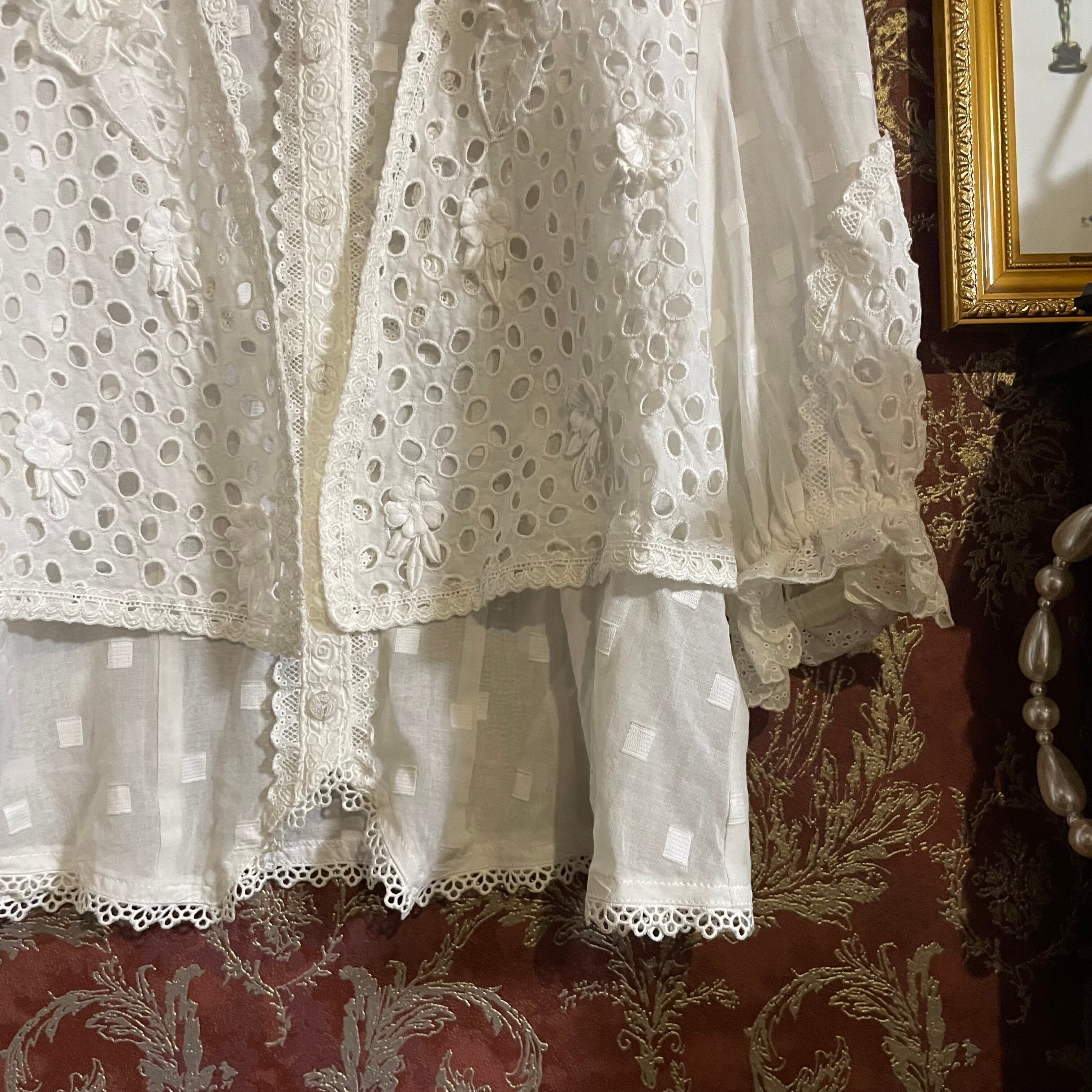 異なるレースや刺繍が贅沢にあしらわれ、まるでヴィンテージドールのような、可憐で儚い雰囲気をまとった一着です。