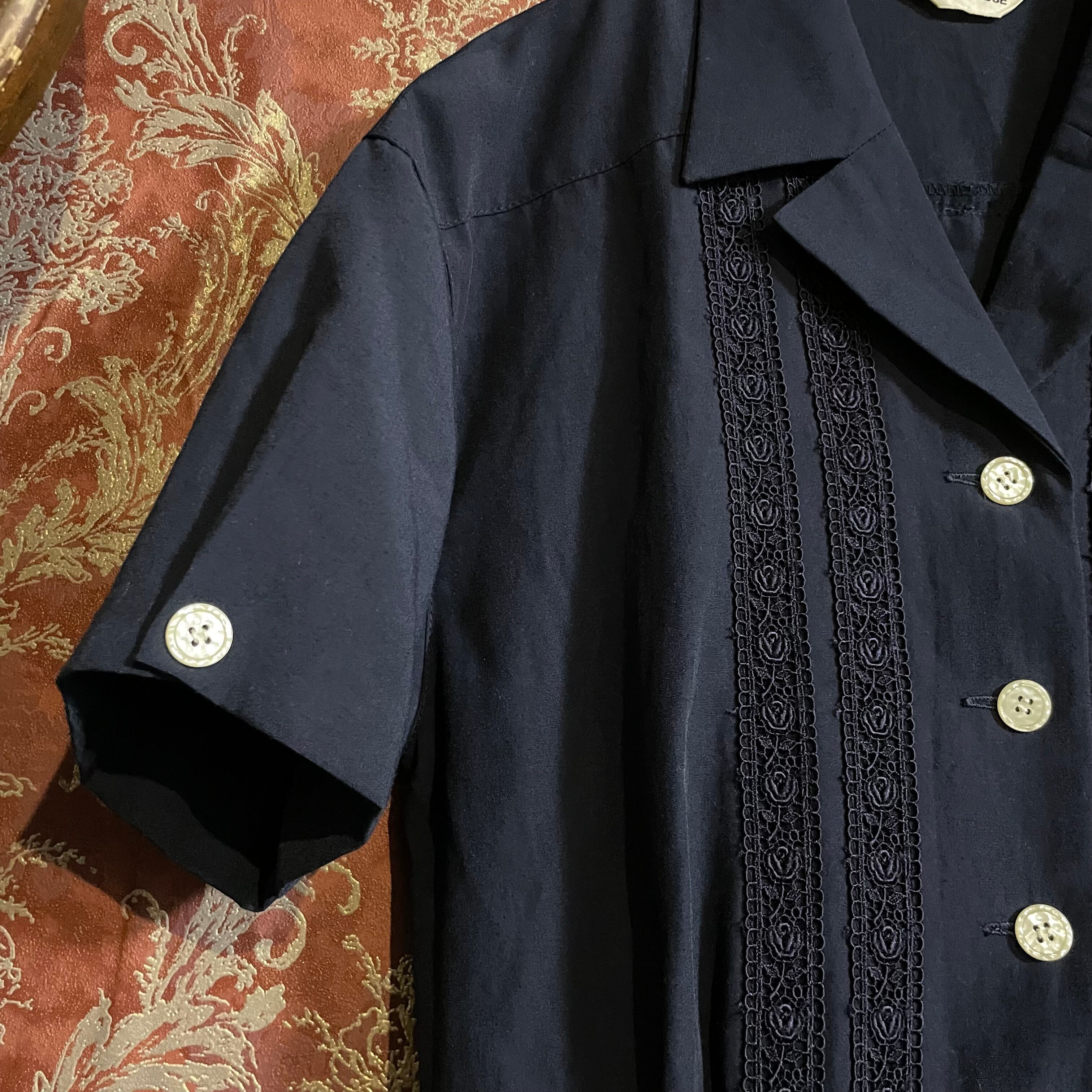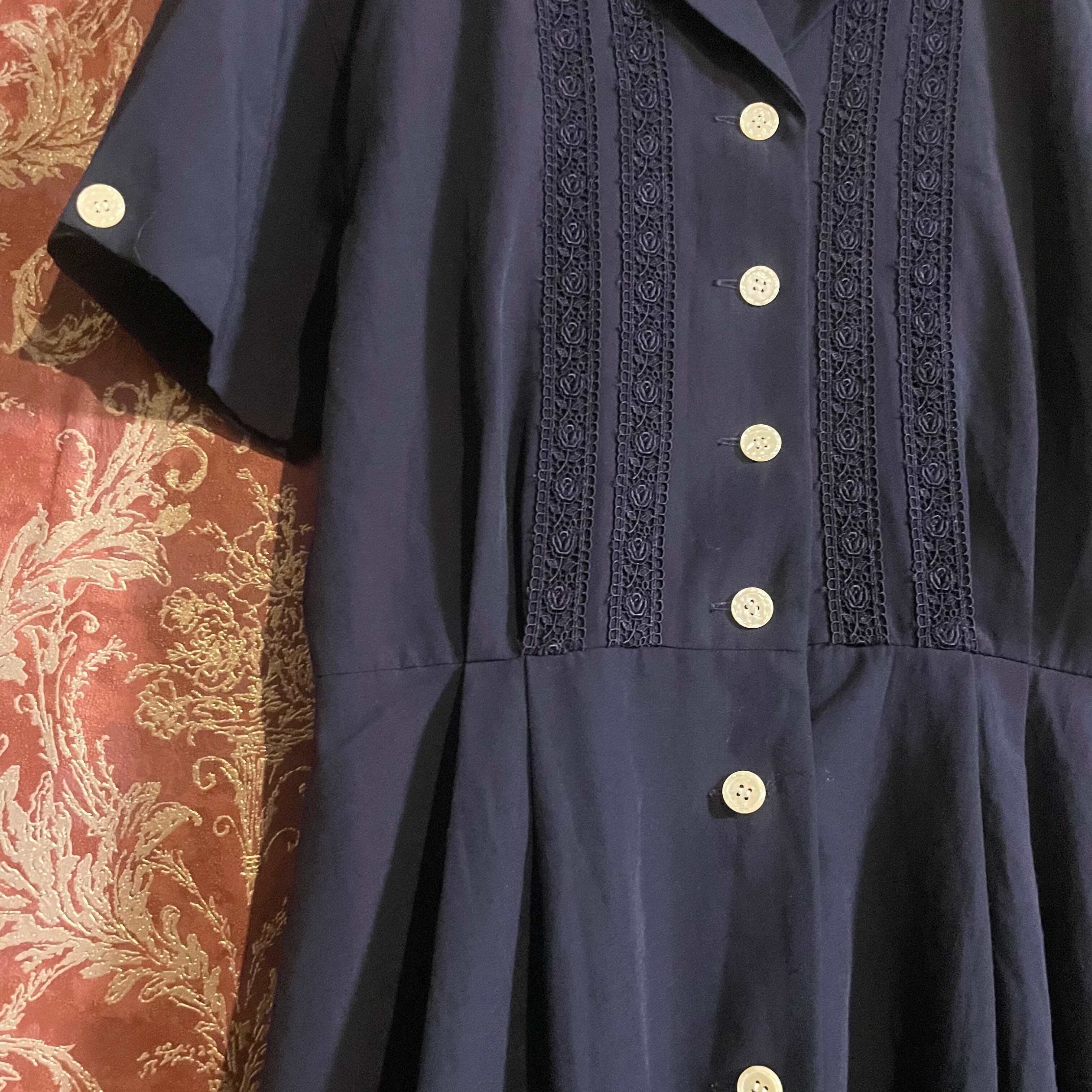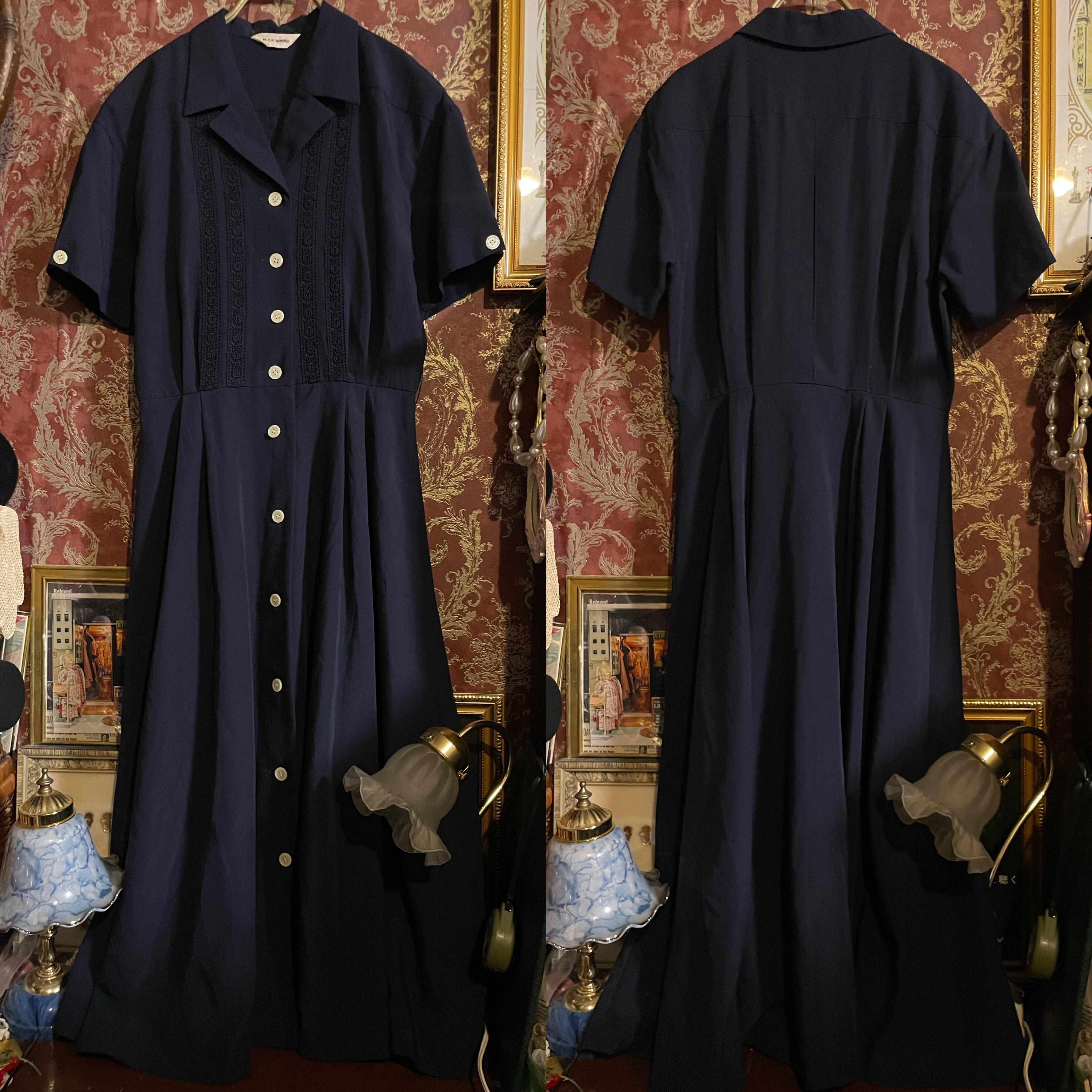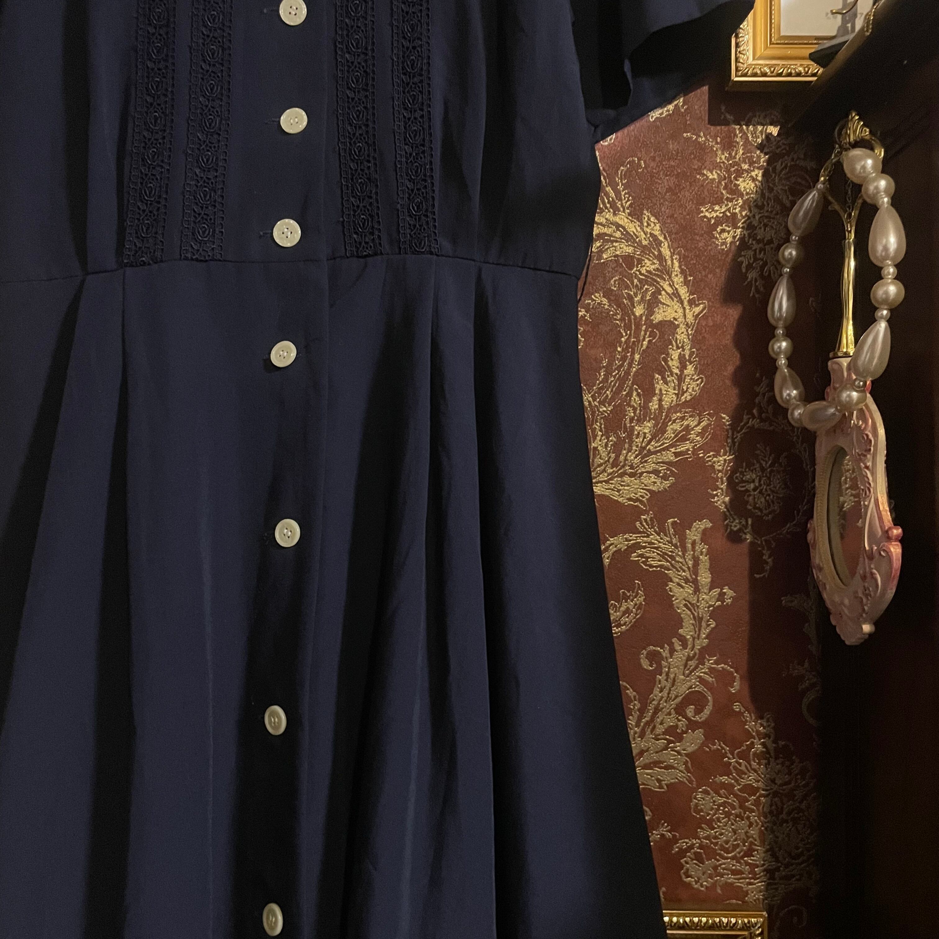 クラシカルな佇まいが魅力のネイビーのワンピースです。