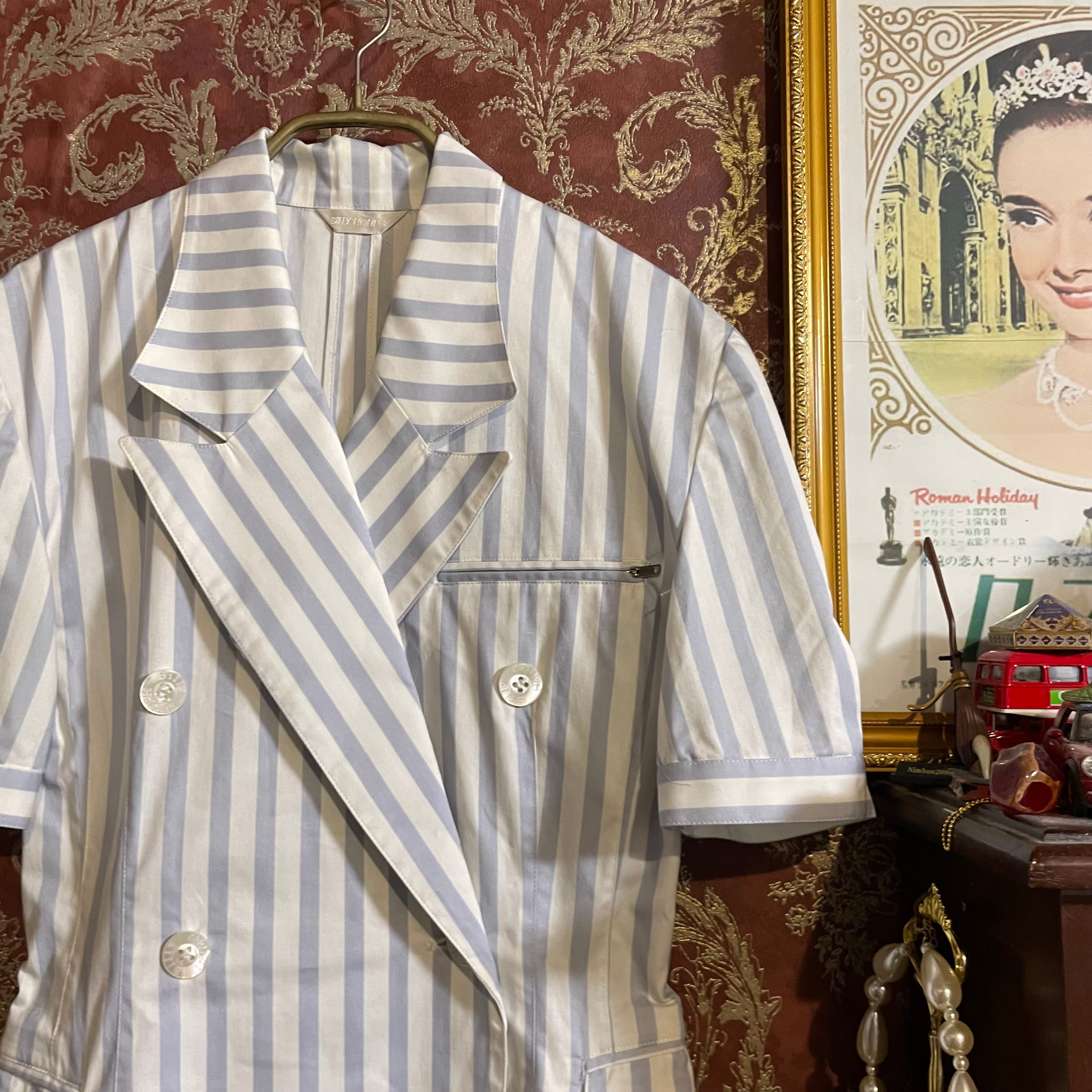クラシカルな雰囲気と爽やかさが印象的なストライプ柄のダブルボタンワンピースです。