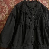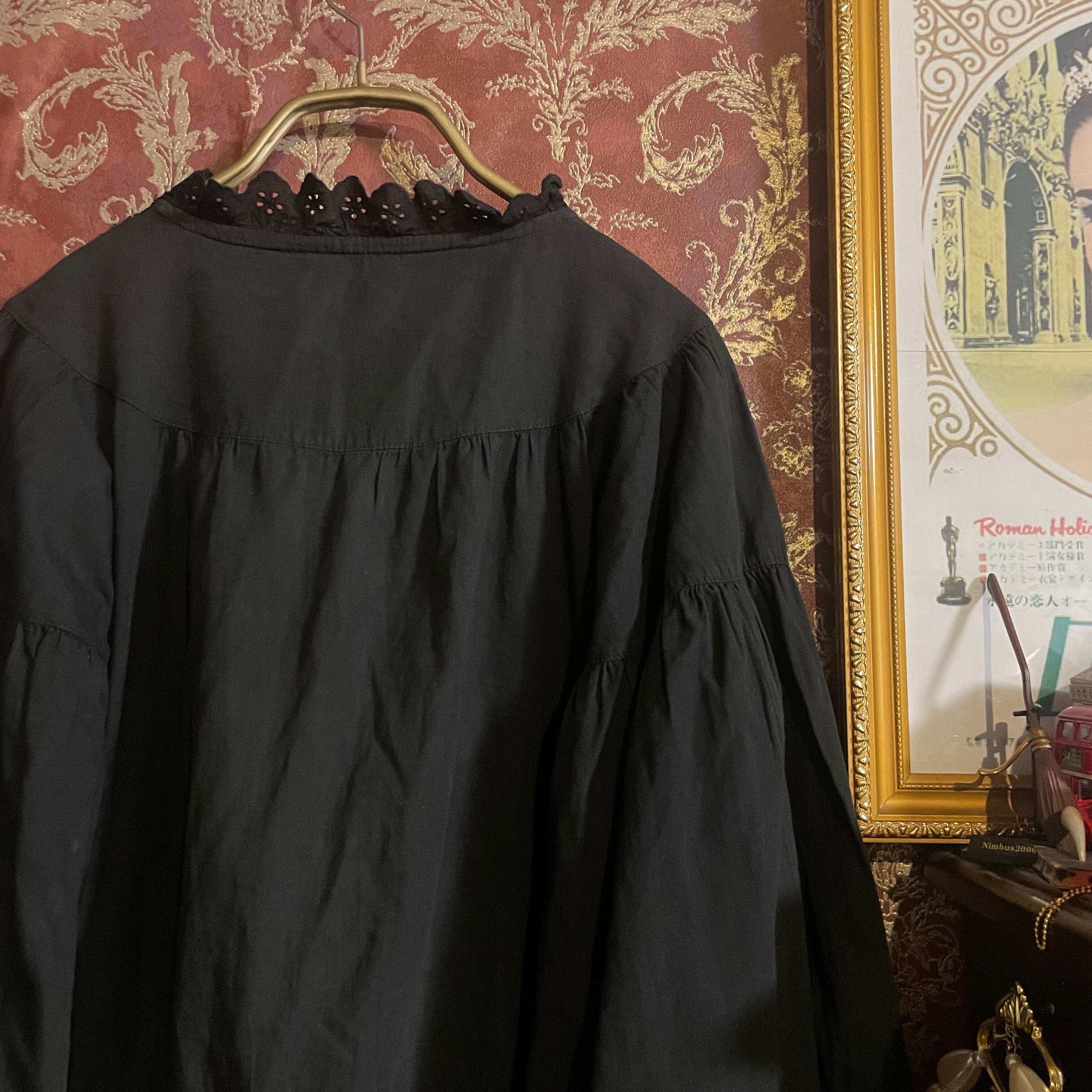 たっぷりとしたボリュームスリーブが印象的な、ブラックのコットンブラウスです。