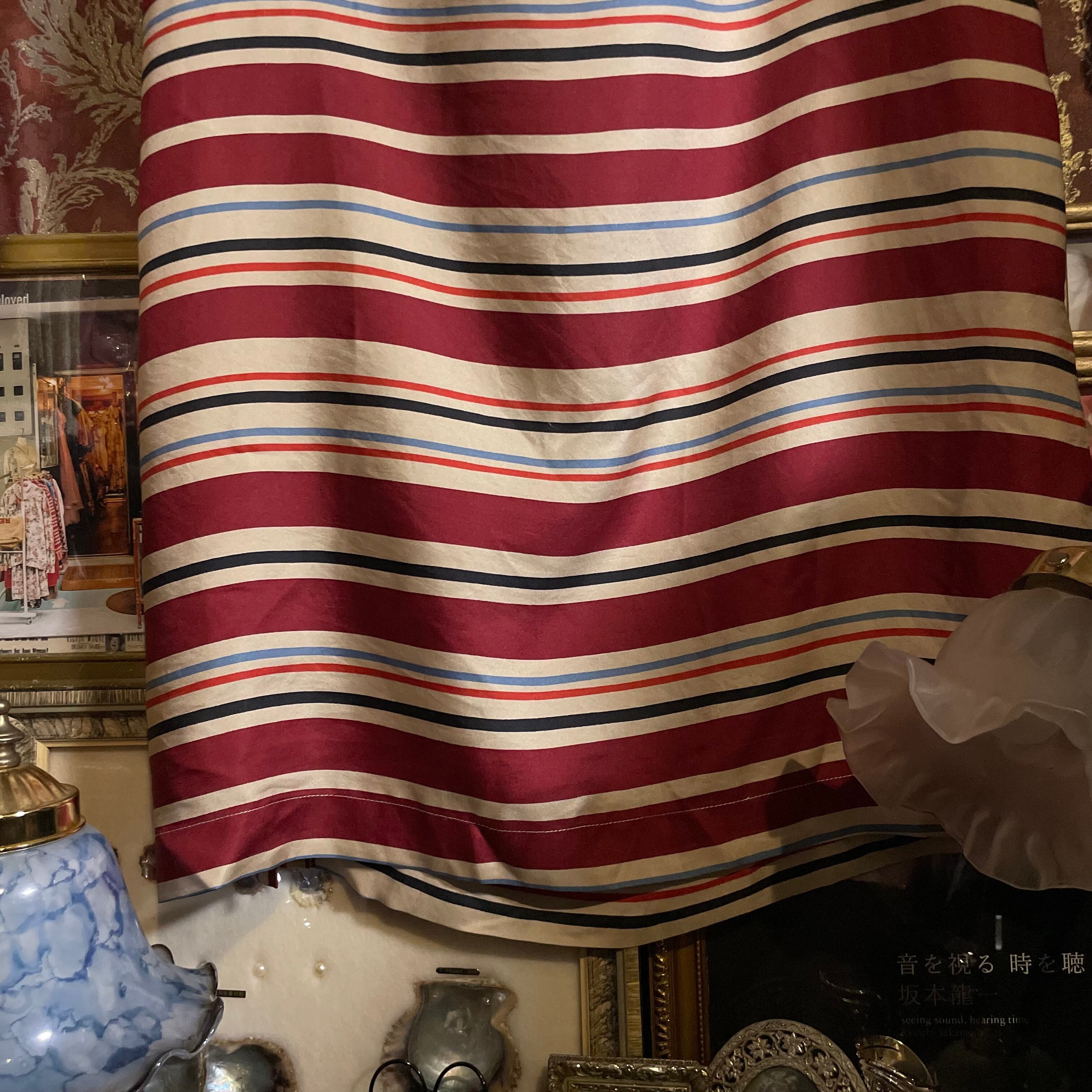深みのあるバーガンディをベースに、ネイビーやオレンジ、オフホワイトのストライプがクラシカルで洗練された印象を演出します。