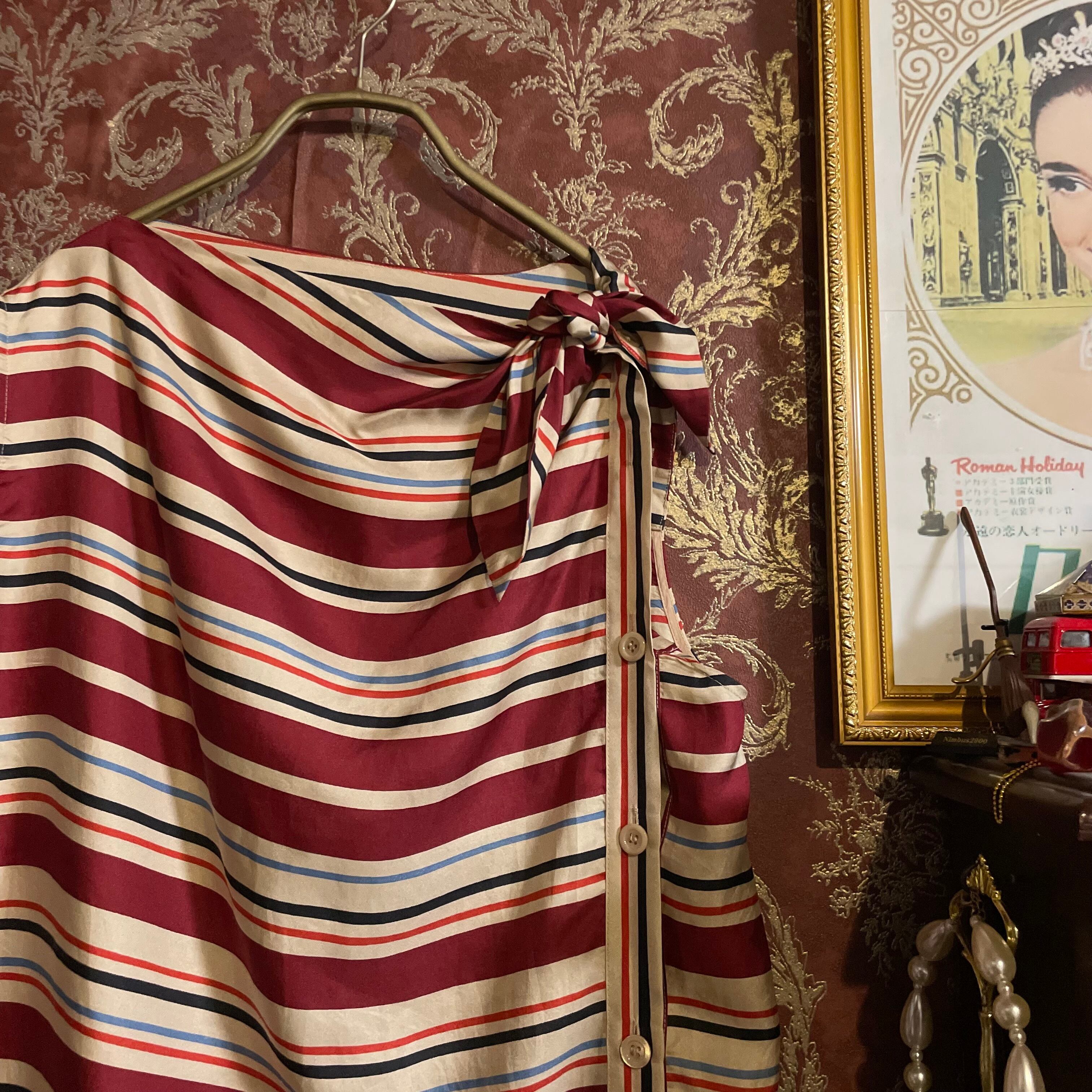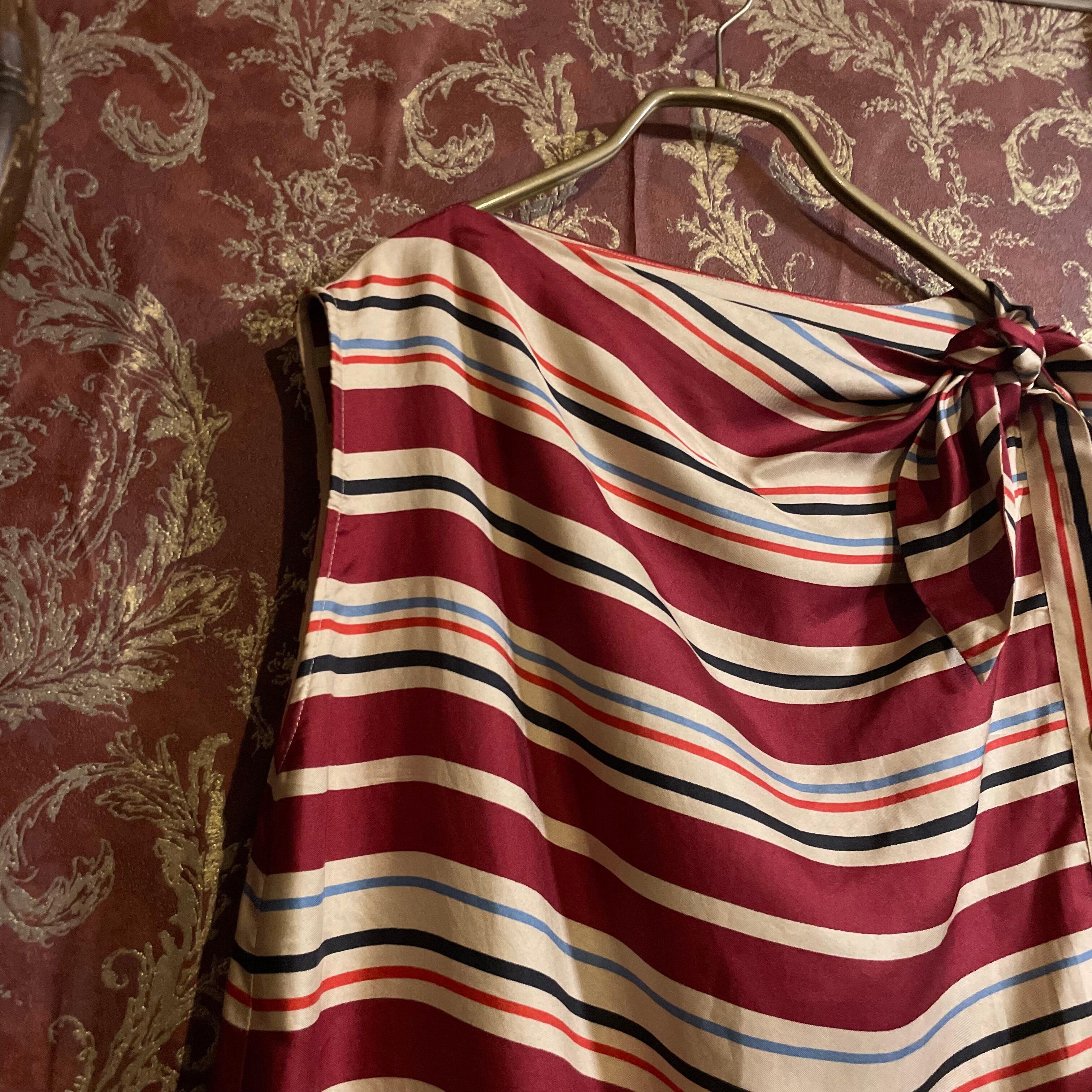 こちらは、艶やかでなめらかなシルク100%素材を贅沢に使用した、マルチボーダー柄のワンピースです。