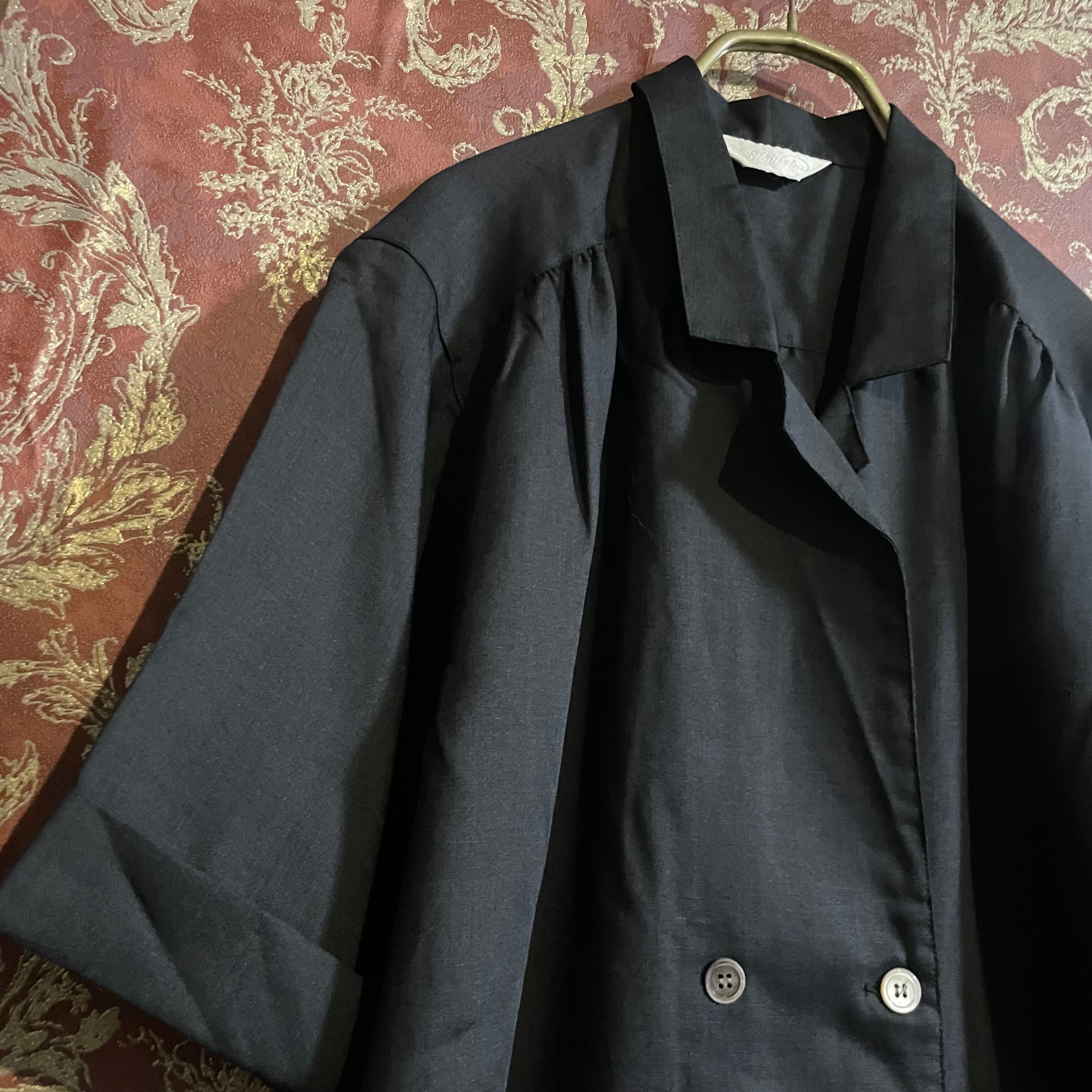 ミニマルでモードな印象を放つ、ブラックのダブルボタンシャツです。