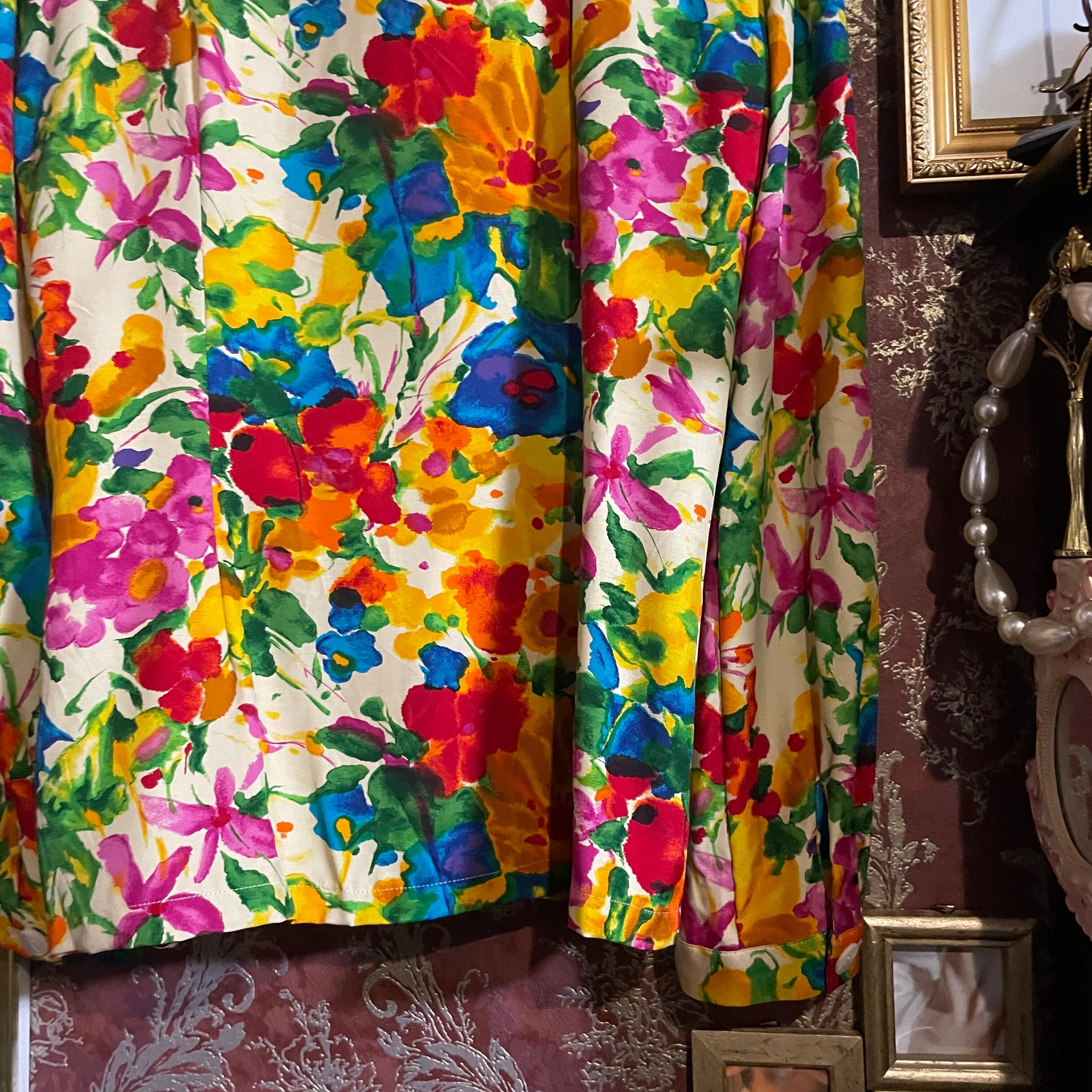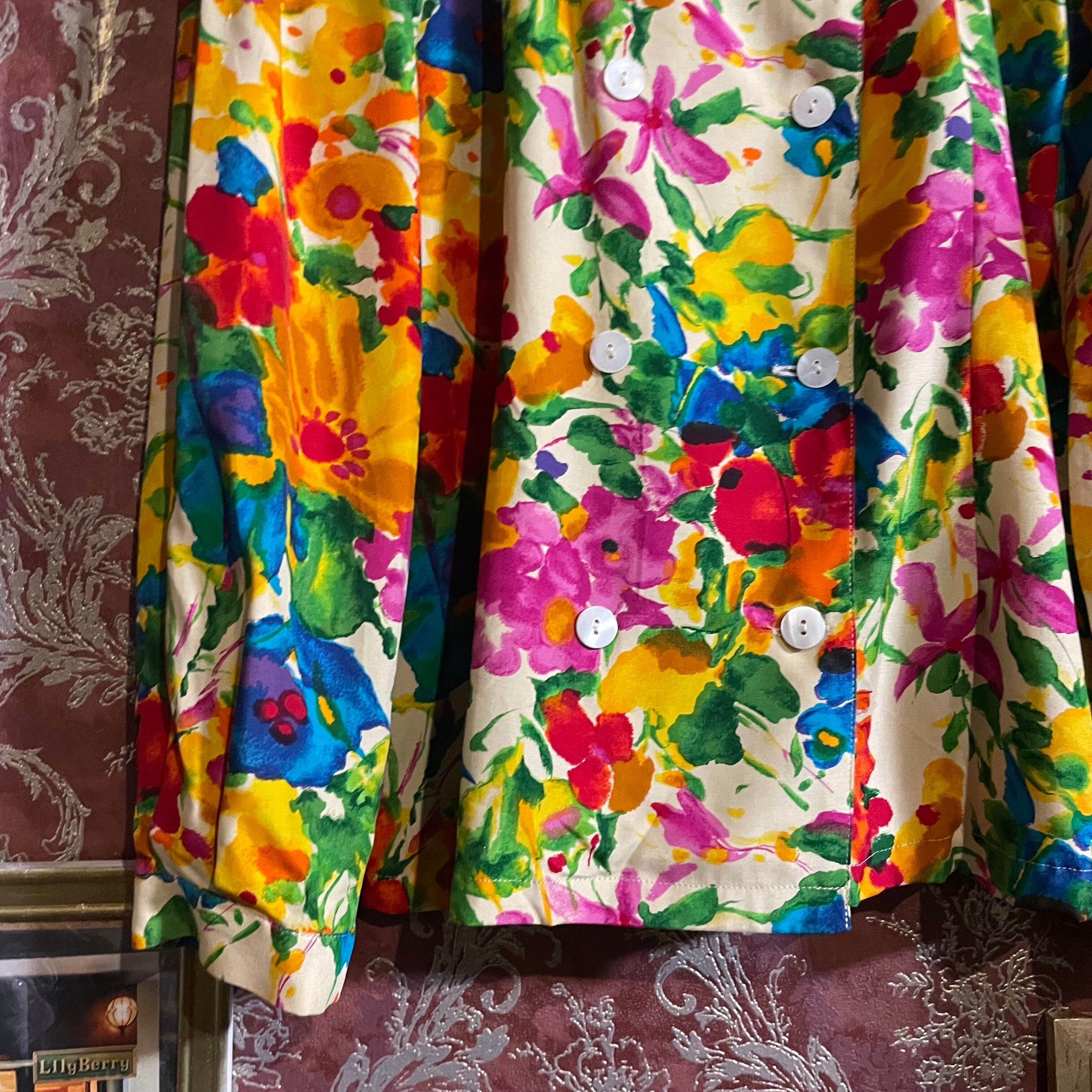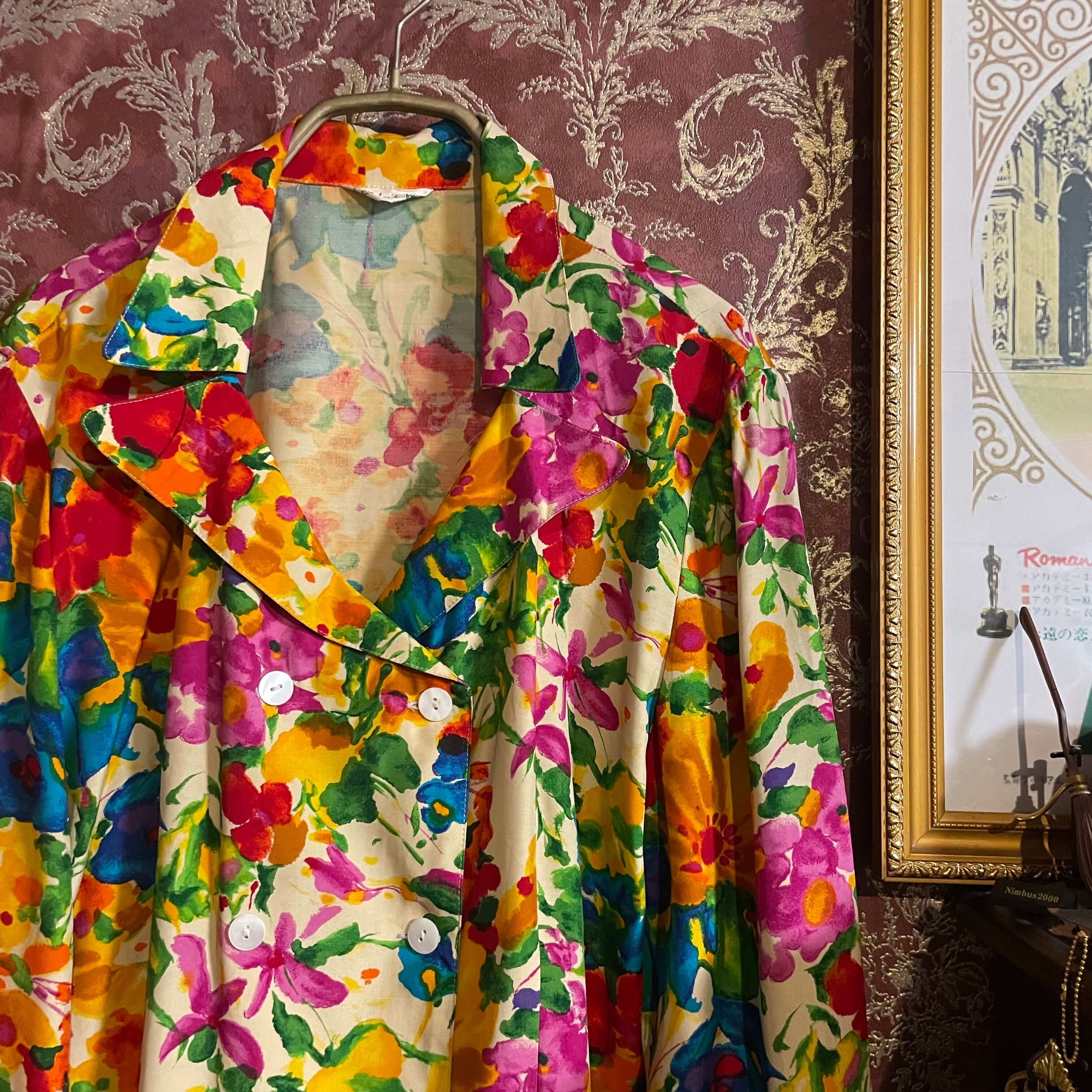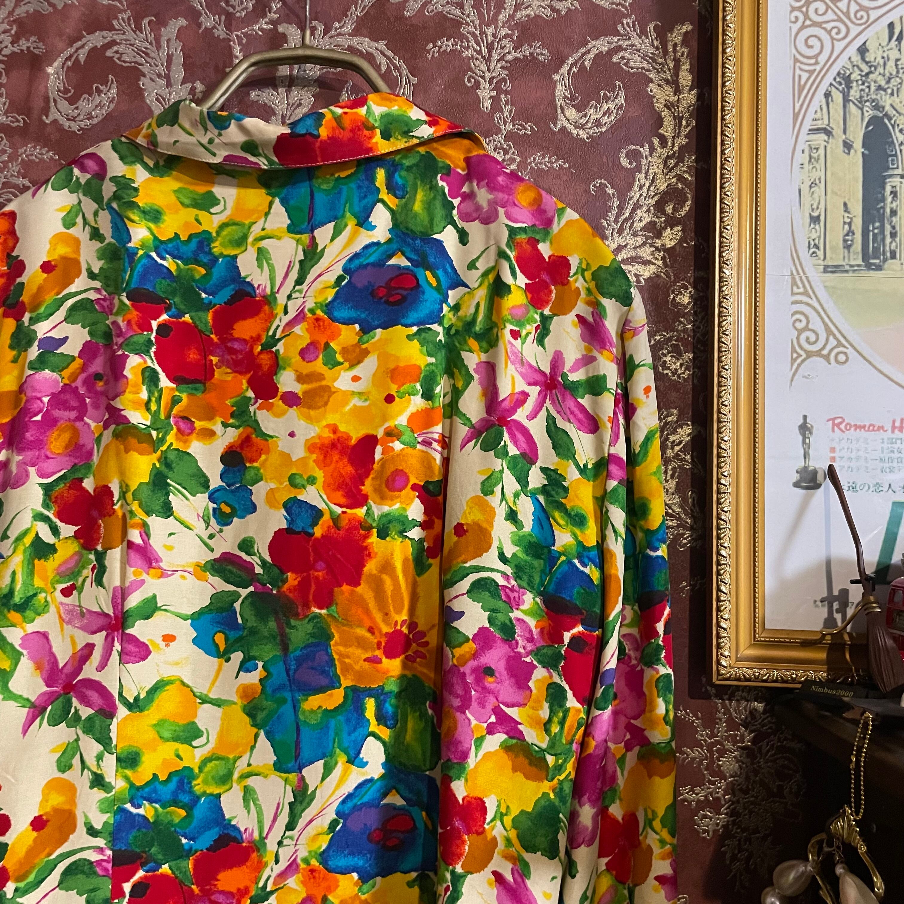 キャンバスに描かれた絵画のような、華やかな花々が印象的なセットアップです。