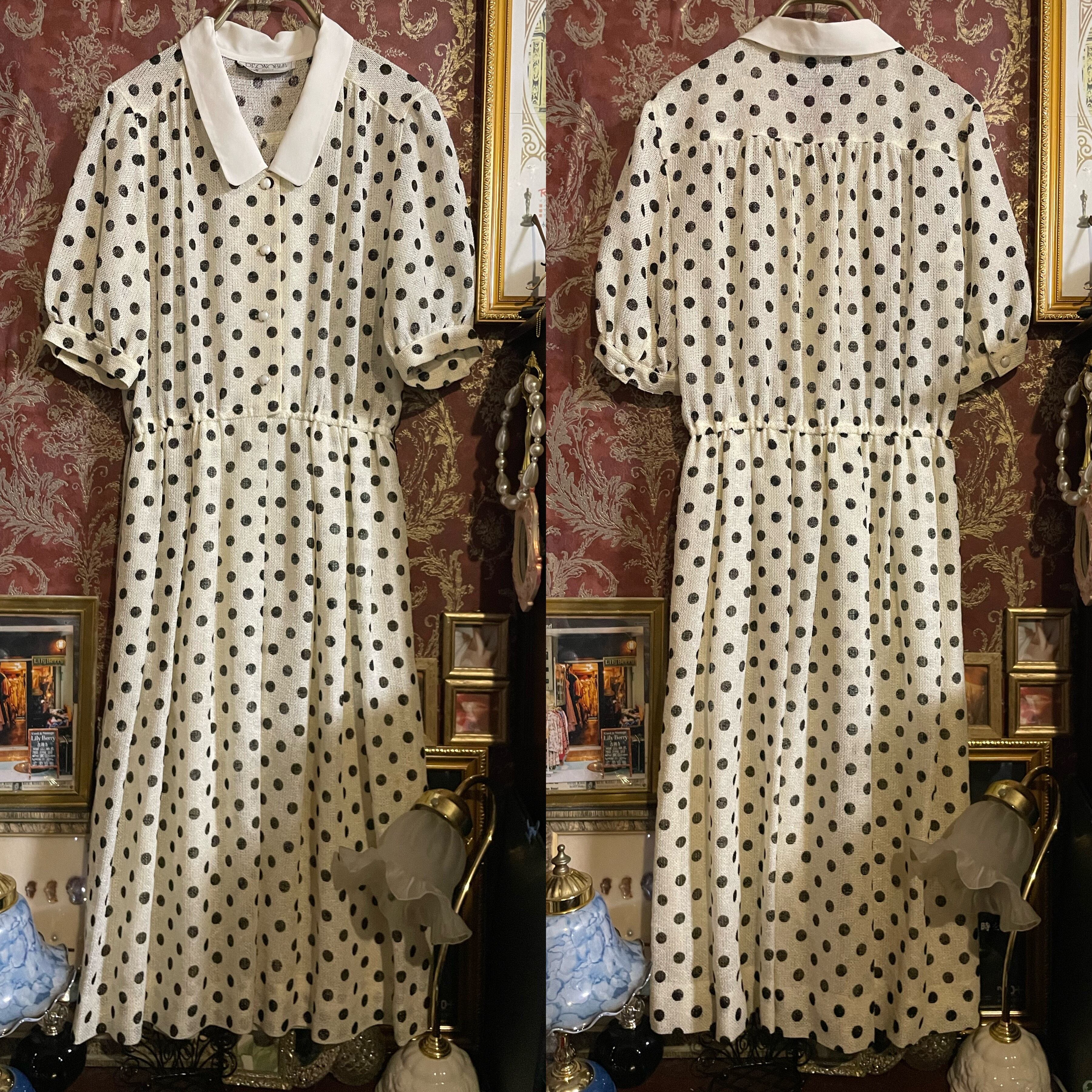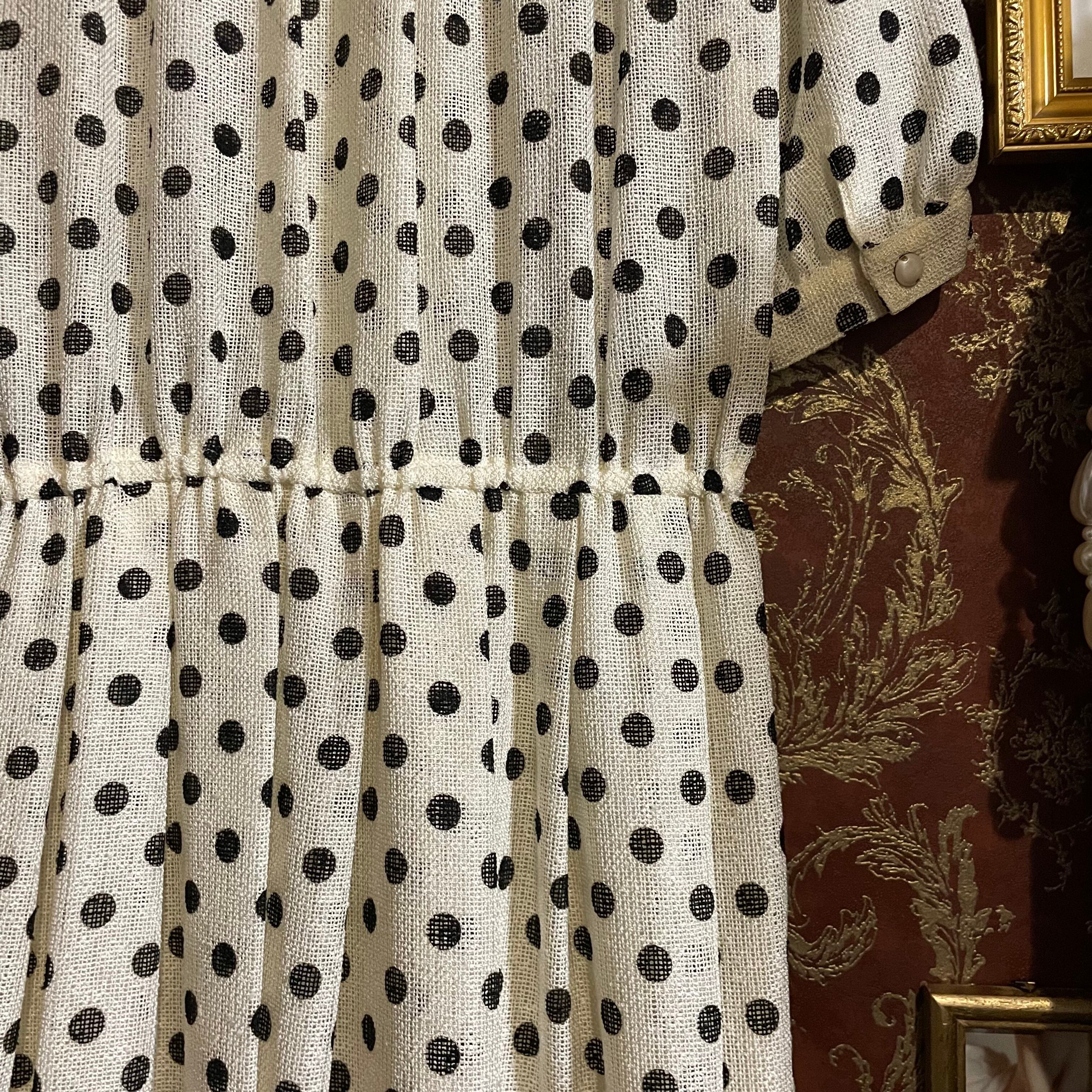 アイボリー地にブラックのドットがあしらわれた、レトロな雰囲気が魅力の一着。