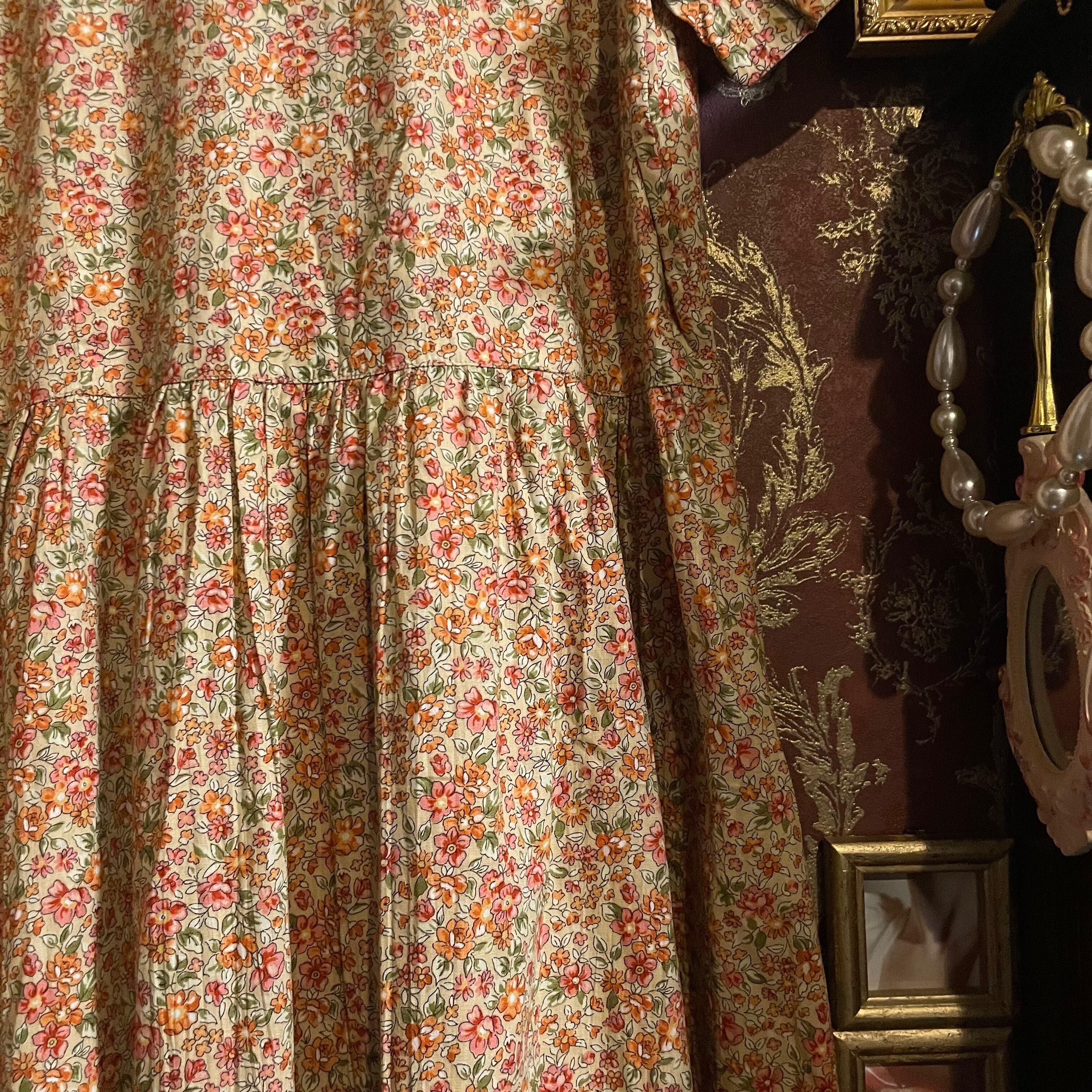 小さな花々が全面に咲き誇る、素朴で優しい雰囲気のフラワープリントワンピースです。