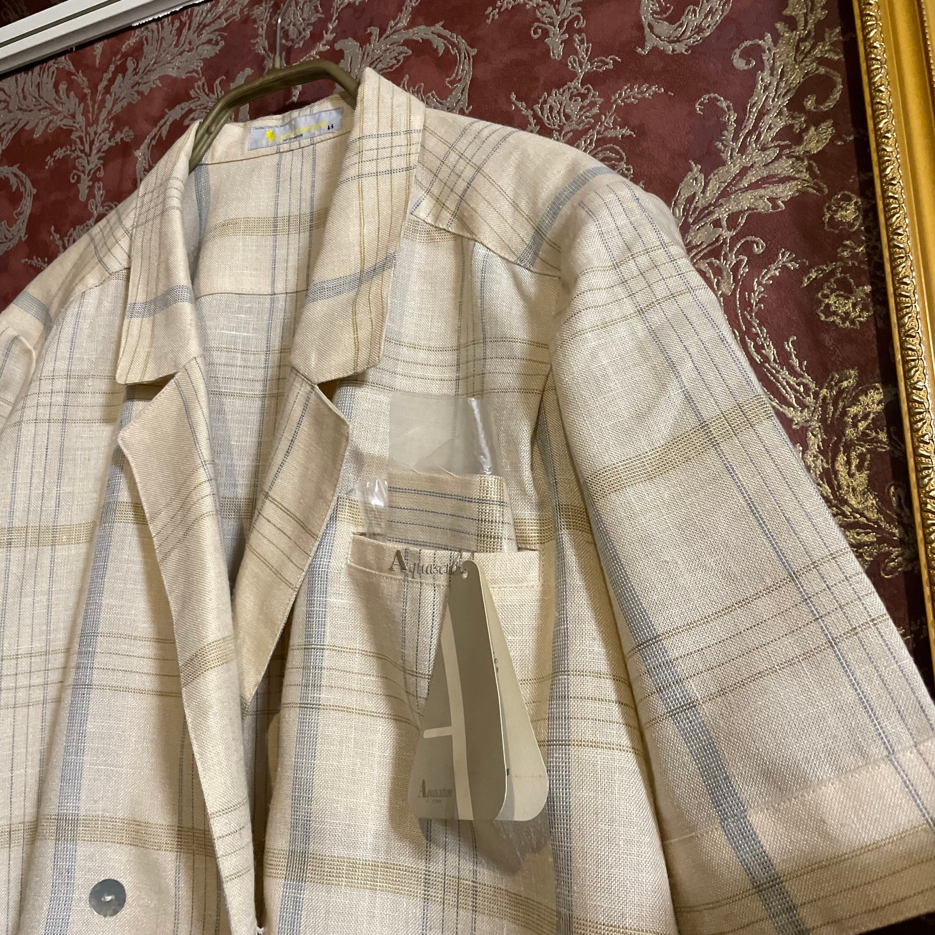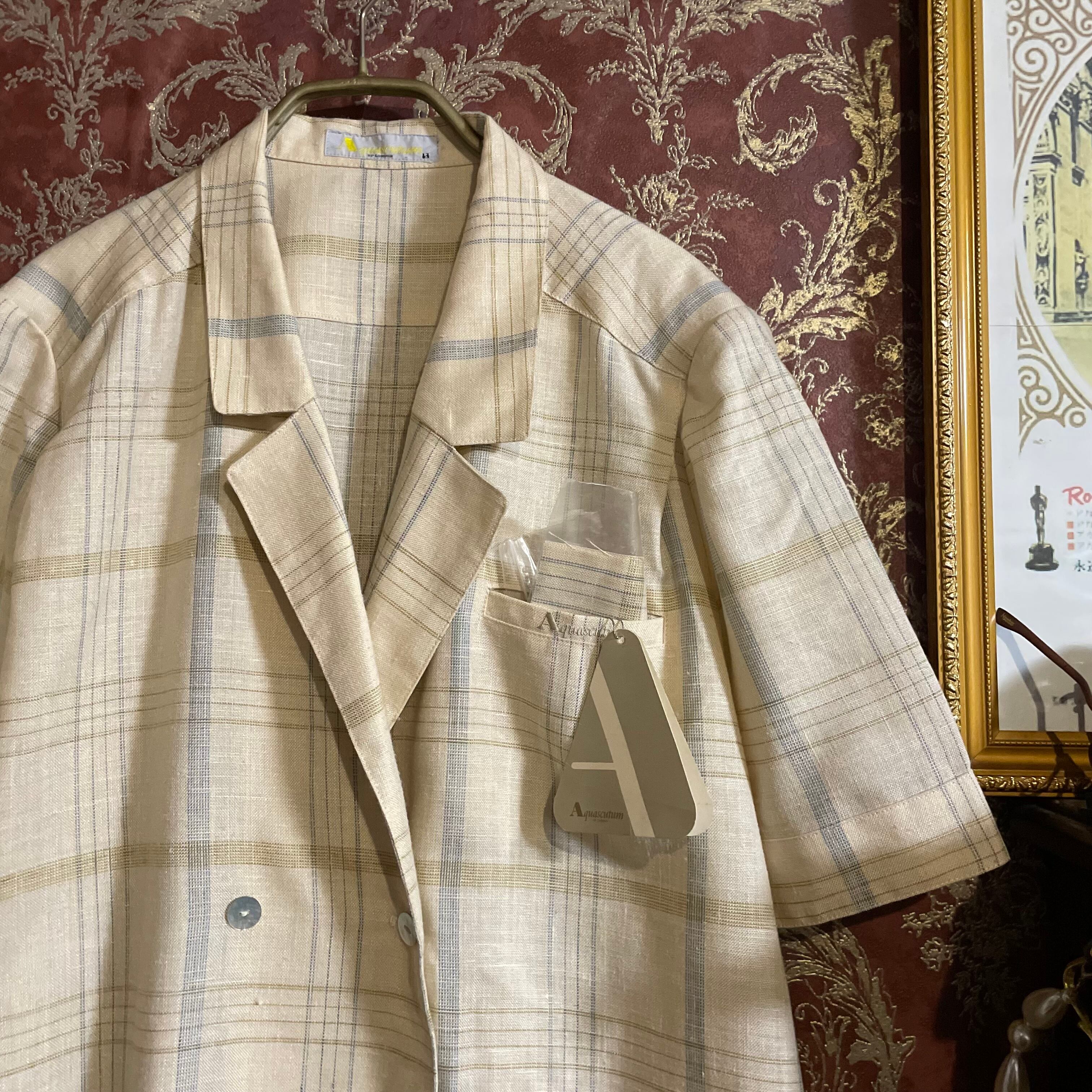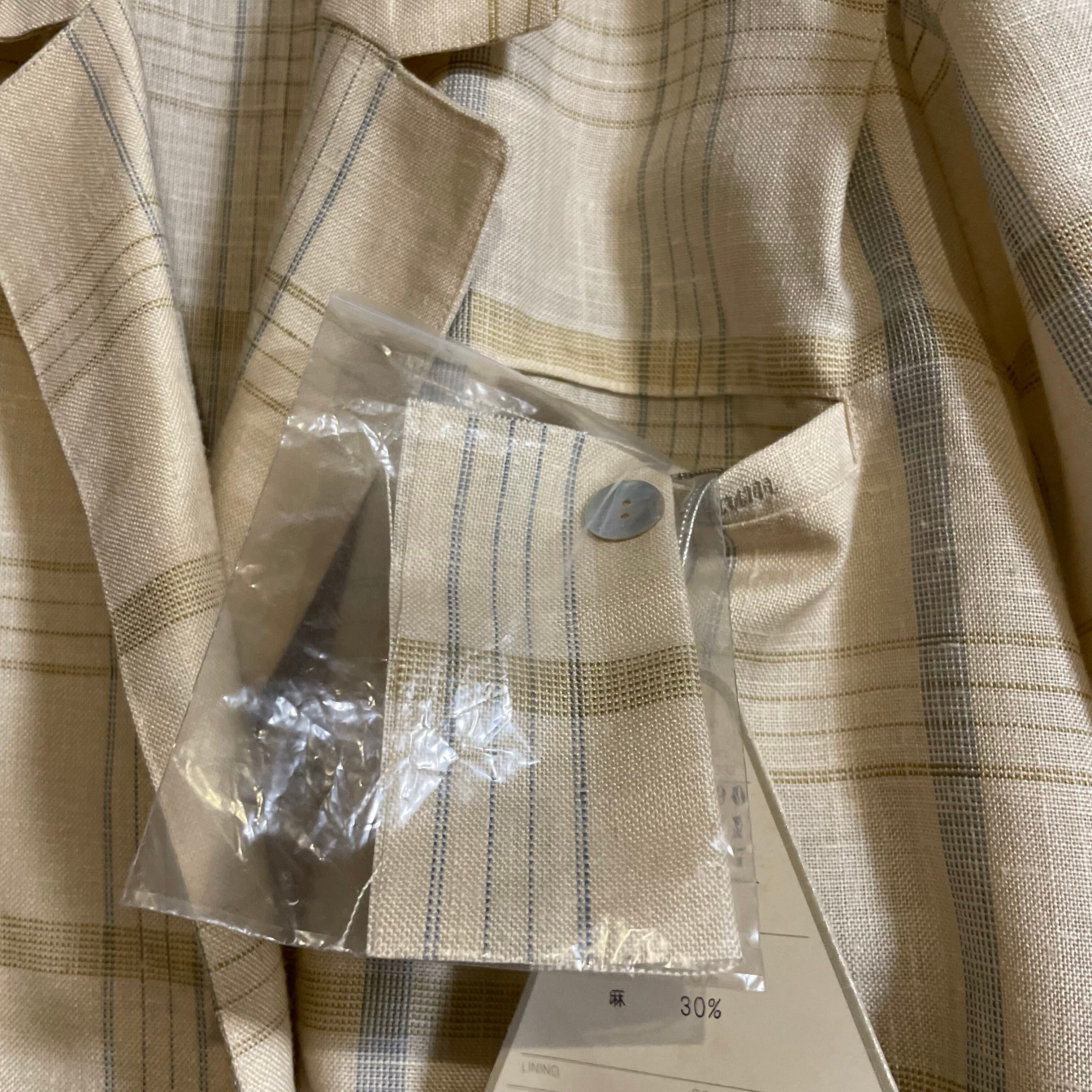 ブランドを象徴するクラブチェックを柔らかなベージュトーンで織り上げた、気品ある一着です。