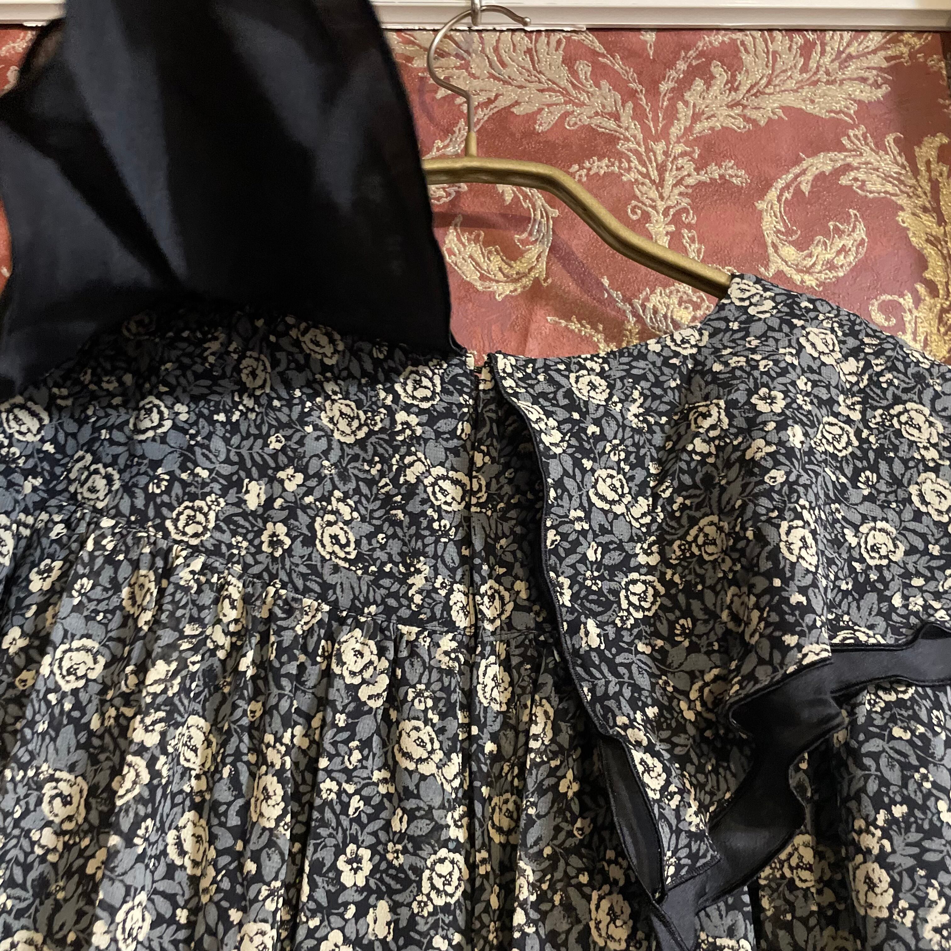 フリルは共布とブラックのダブルで、ほんのりとした艶感が上品なアクセントに。