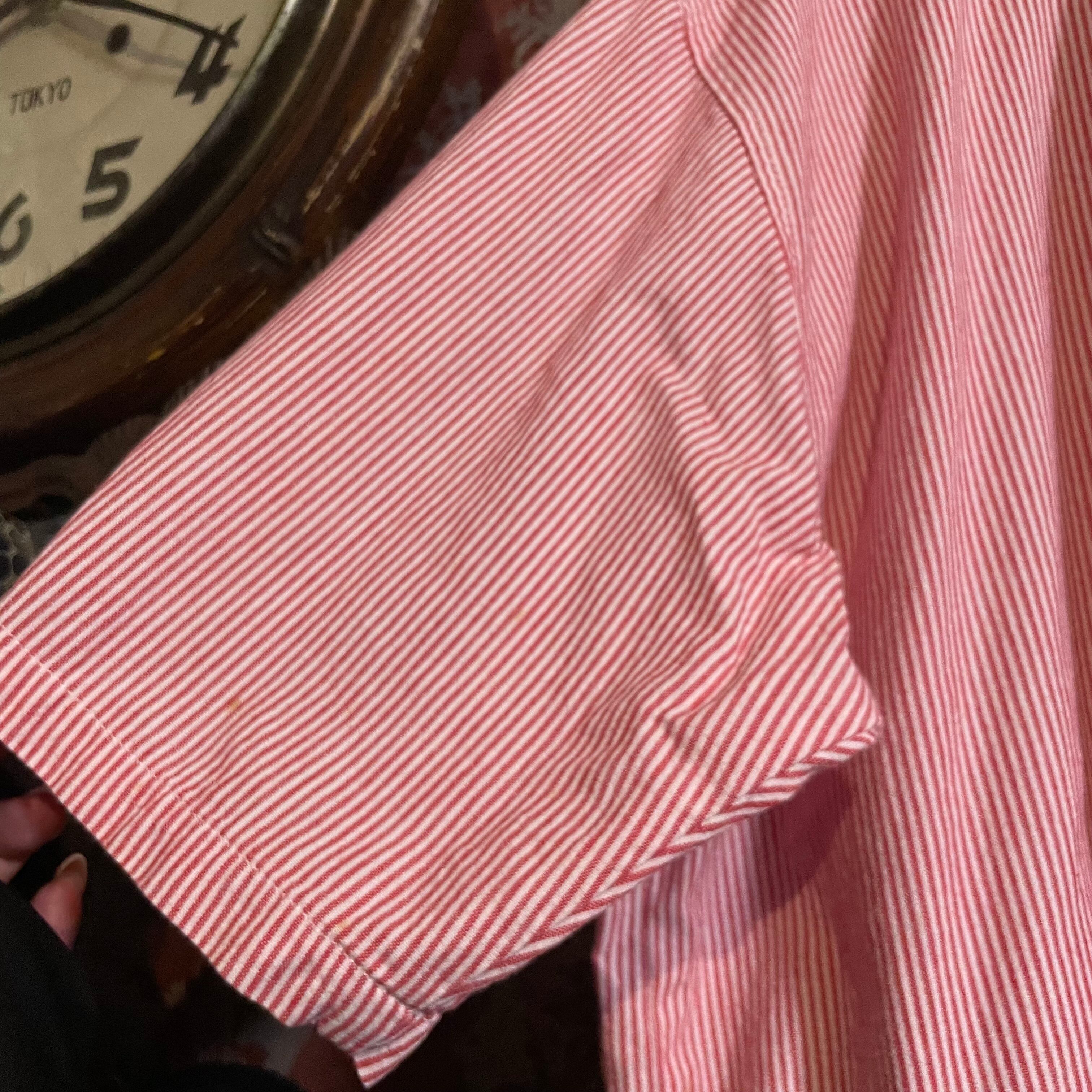 全体にごく小さな点状のシミが見られますが、ストライプ柄と刺繍の存在感によりほとんど目立ちません。
