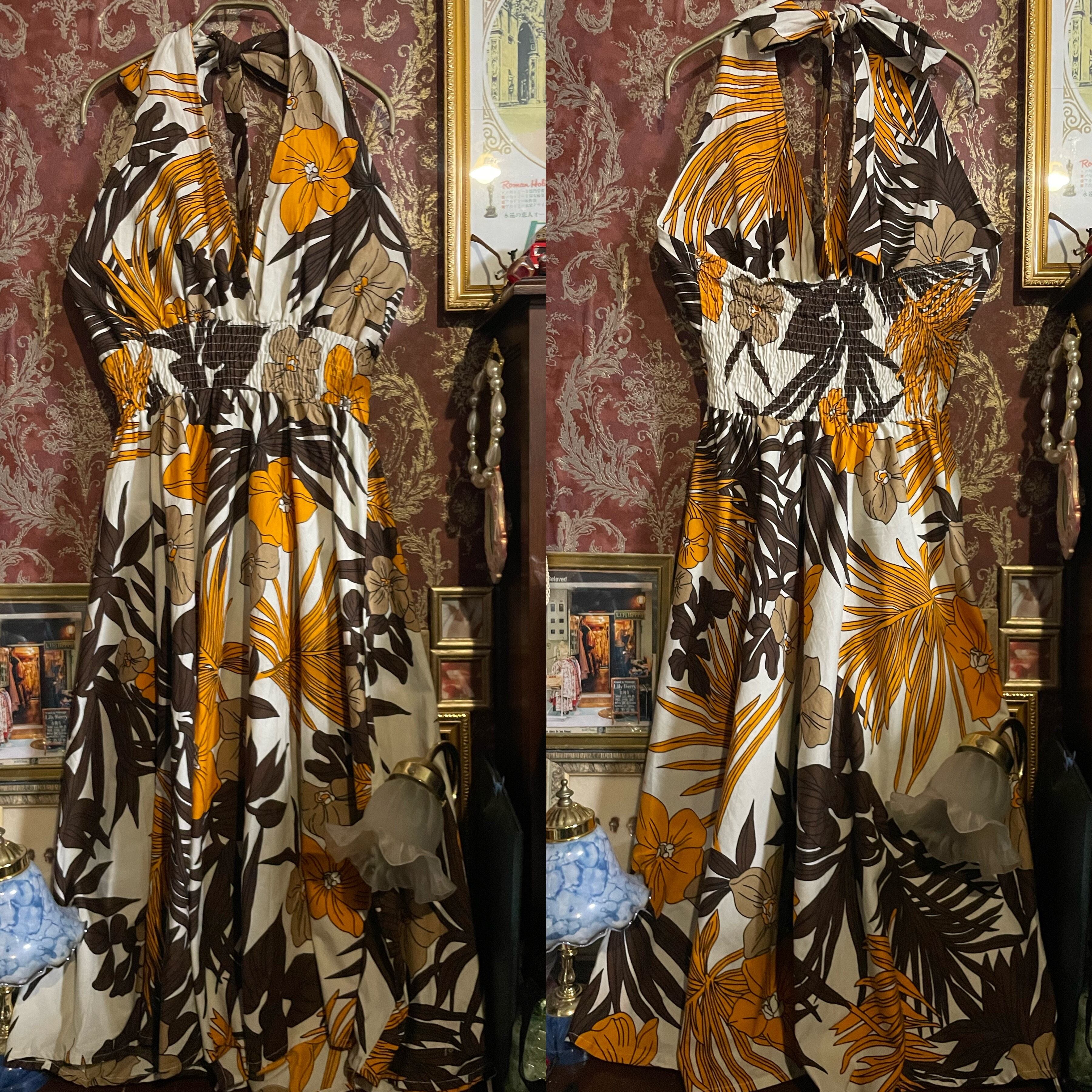 南国ムード漂う、大ぶりなフラワープリントが印象的なヴィンテージワンピース。