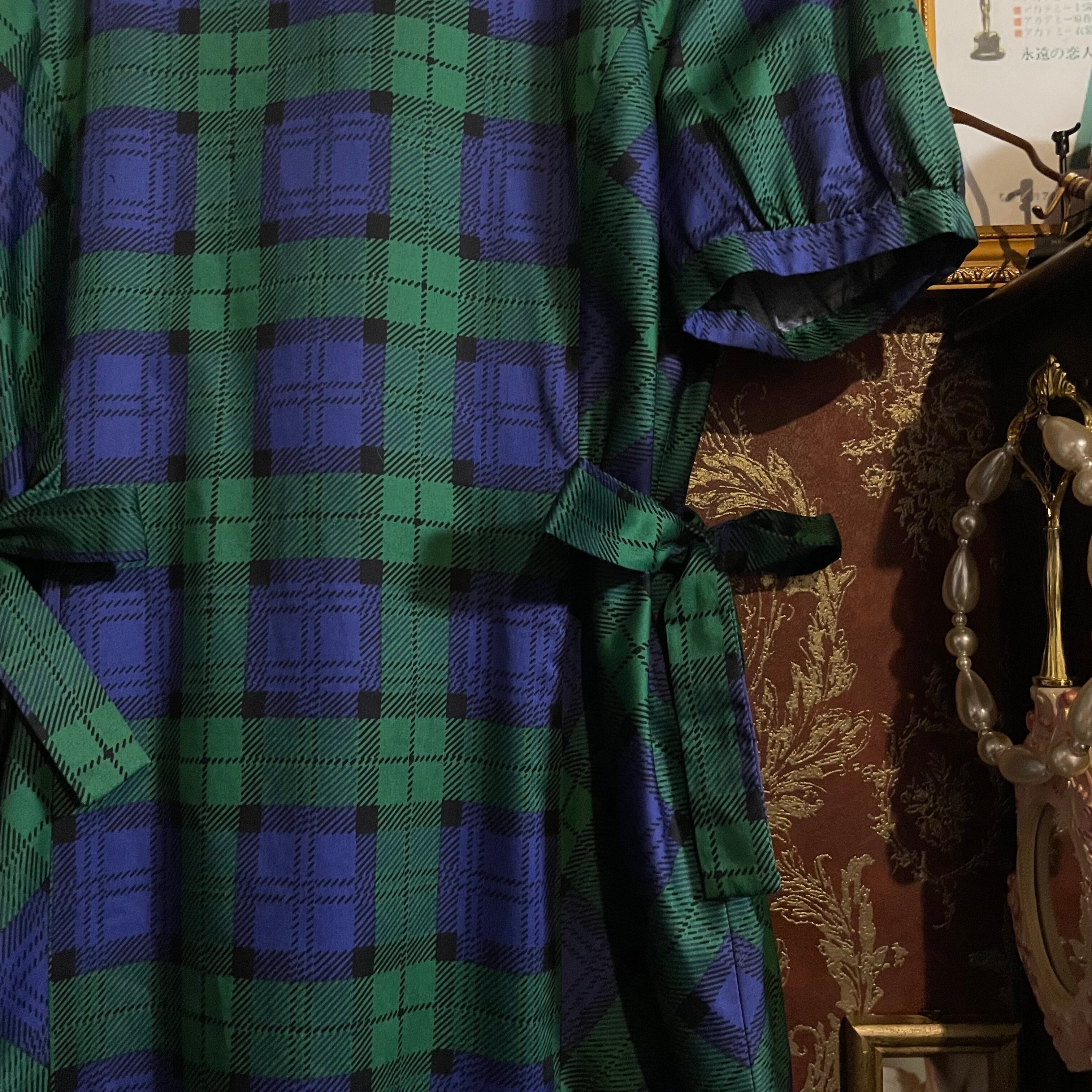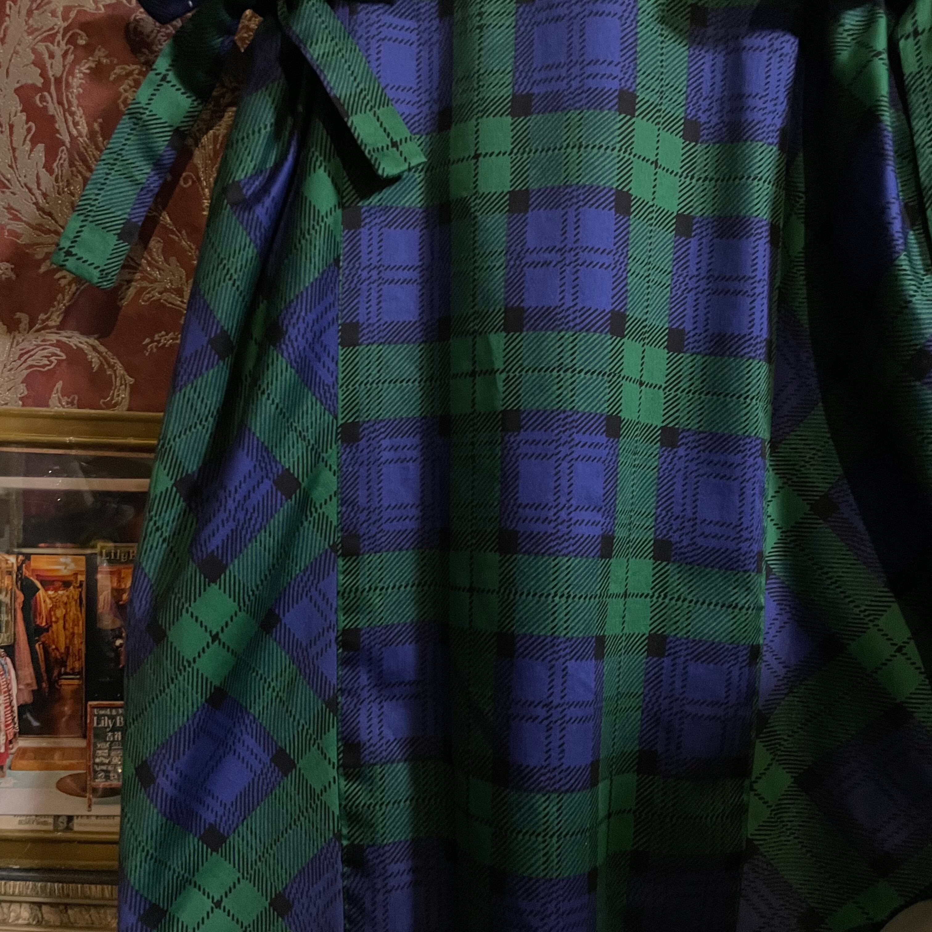 深みのあるグリーンとネイビーの大柄チェックが印象的で、落ち着いた可愛さを演出してくれます。