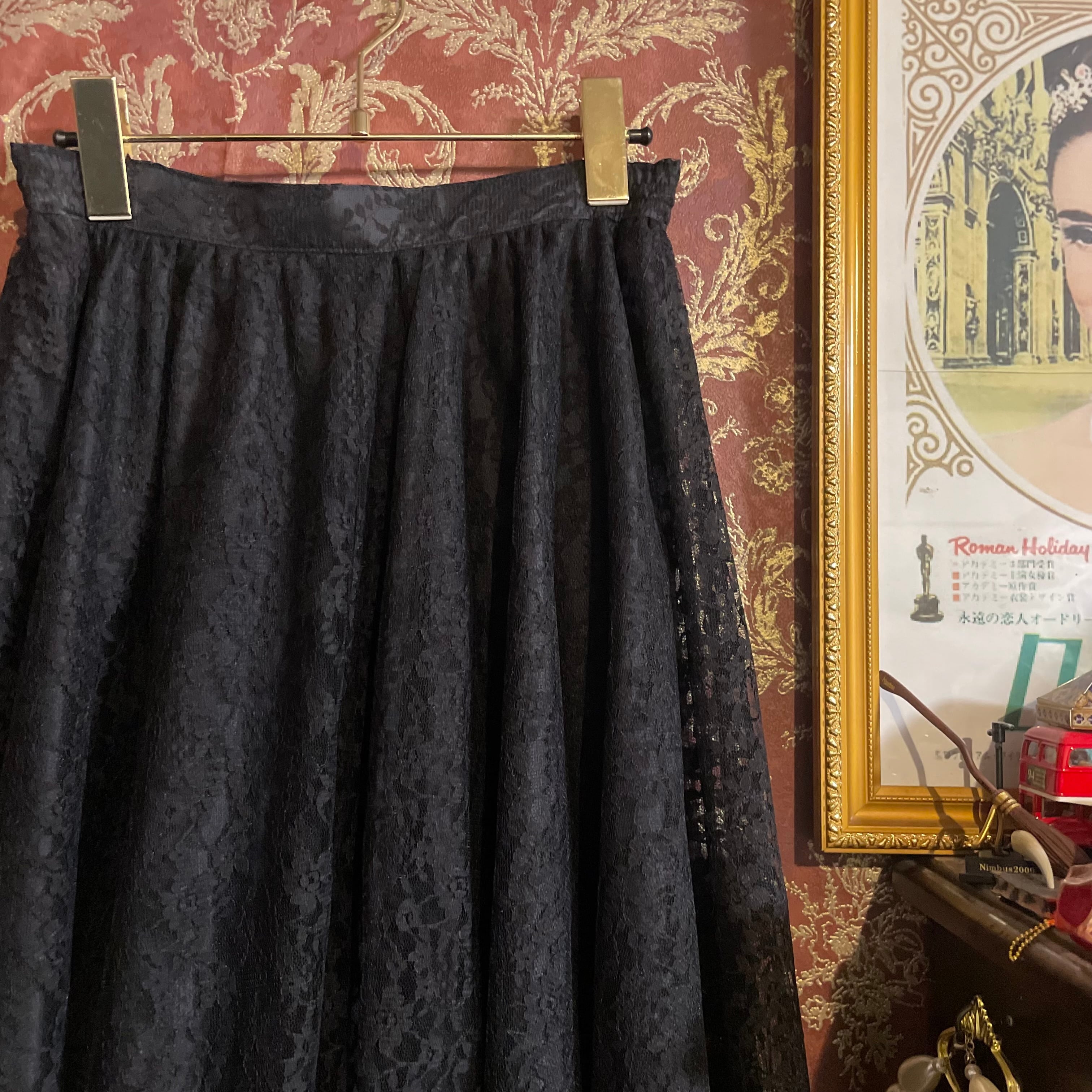 繊細なフラワーレースが全面にあしらわれた、存在感抜群のブラックスカートです。