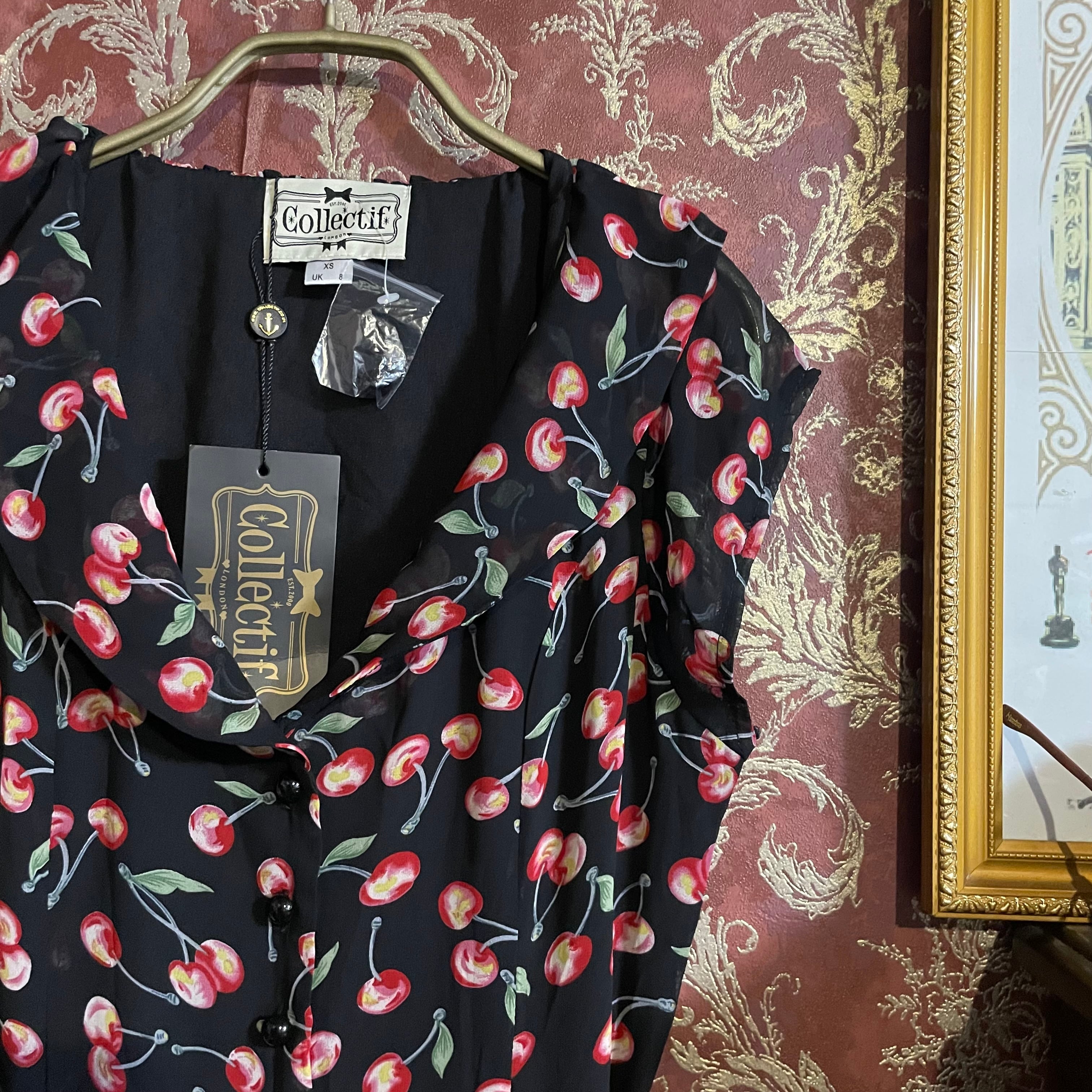 ロンドン発、レトロ&ヴィンテージスタイルを得意とするブランド「Collectif」の甘さと色気が絶妙に調和したチェリープリントのワンピースです。