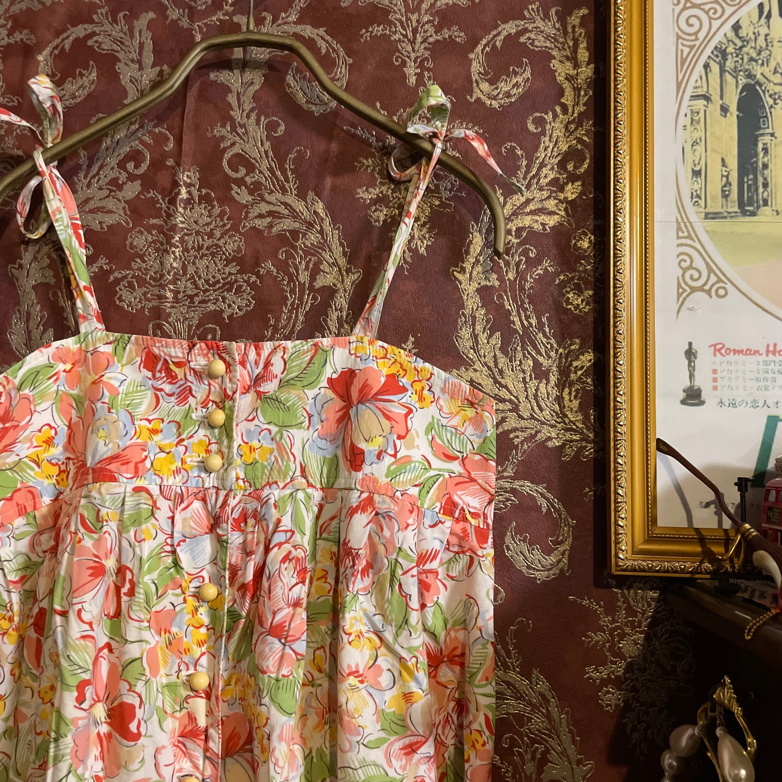 大ぶりのフラワープリントが目を惹く、華やかで優しい印象のキャミソールワンピースです。