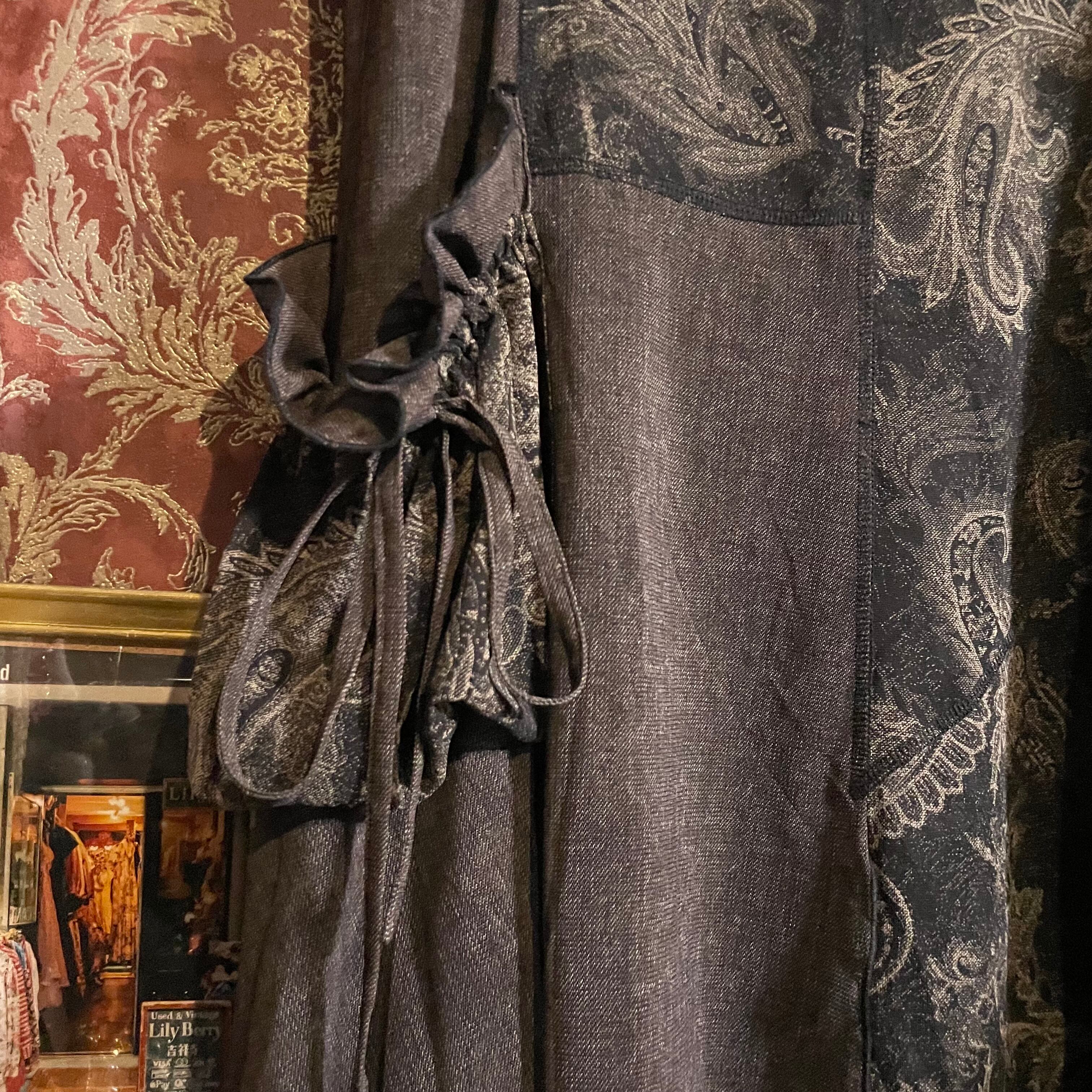 落ち着いたトーンのペイズリー柄が美しい、個性的なデザインのワンピースです。