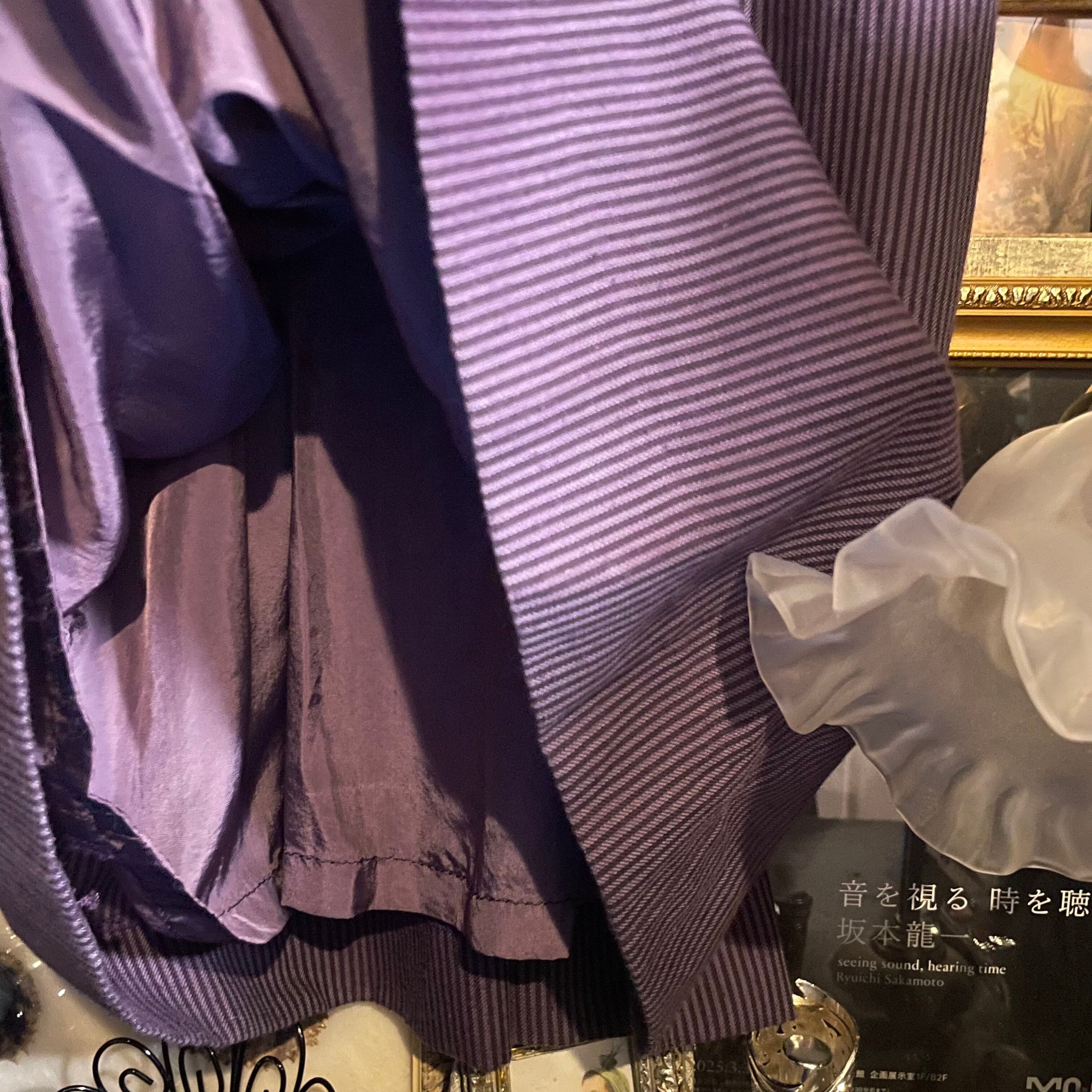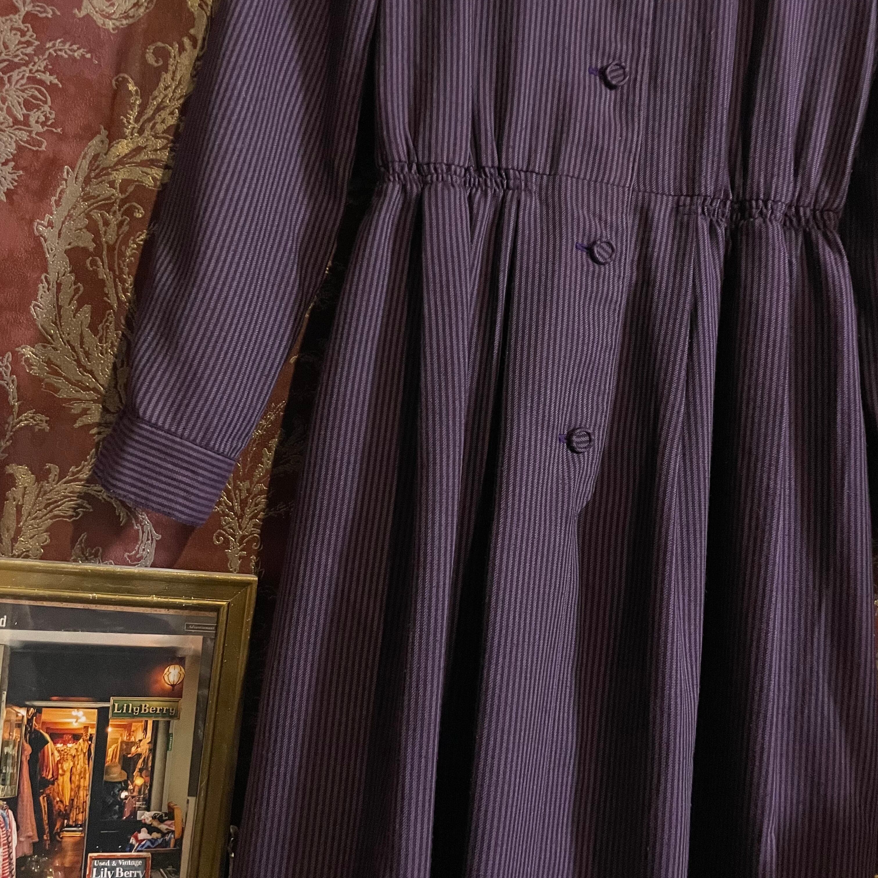 深みのあるパープルに繊細なストライプ柄が映えるロングスリーブのワンピースです。