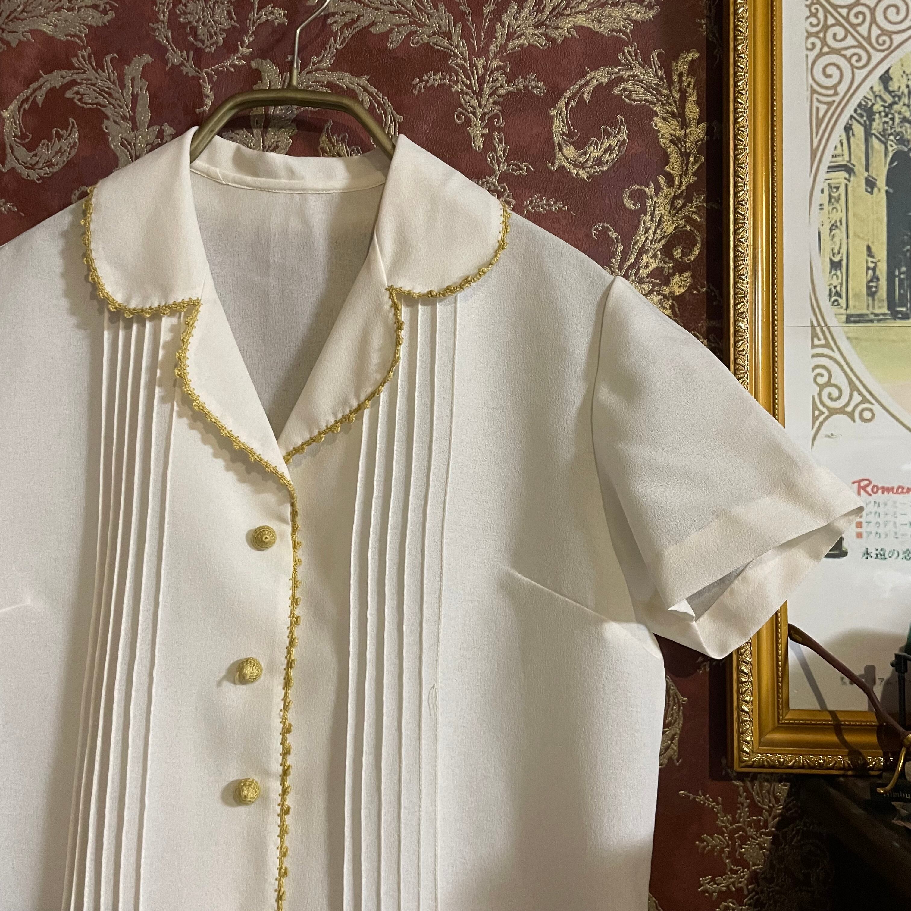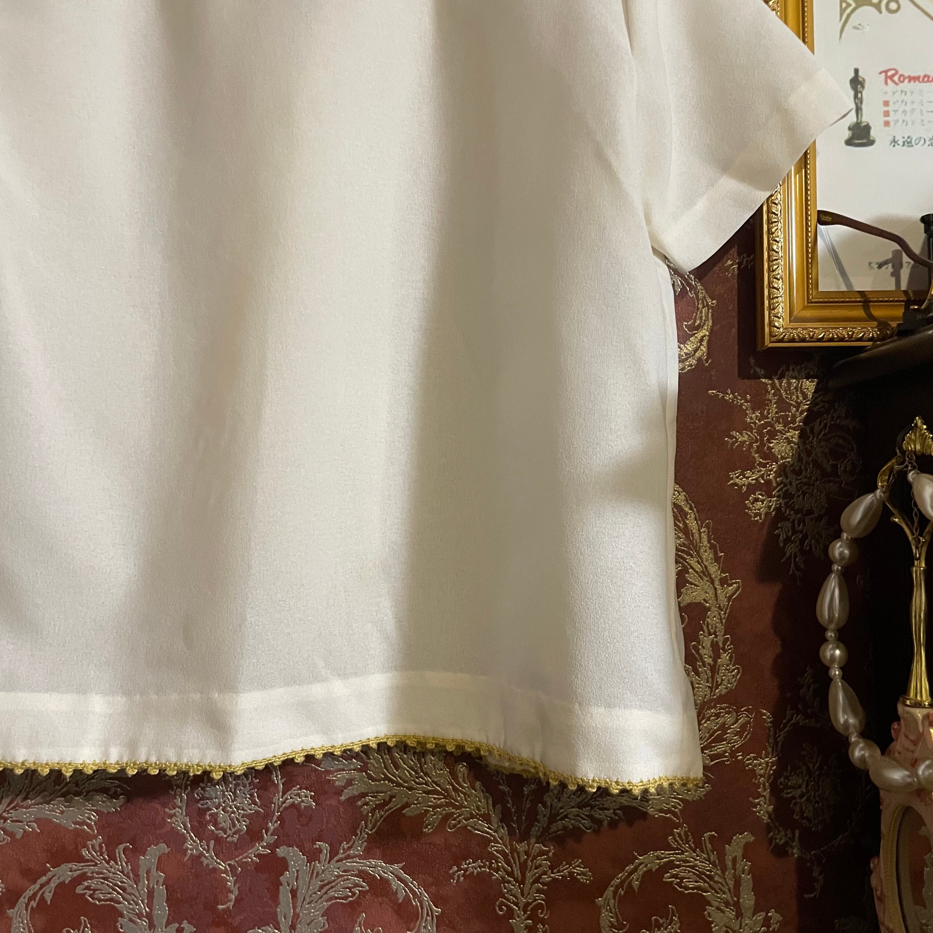 やわらかなオフホワイトのクラシカルな半袖ブラウスです。