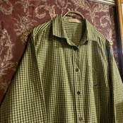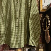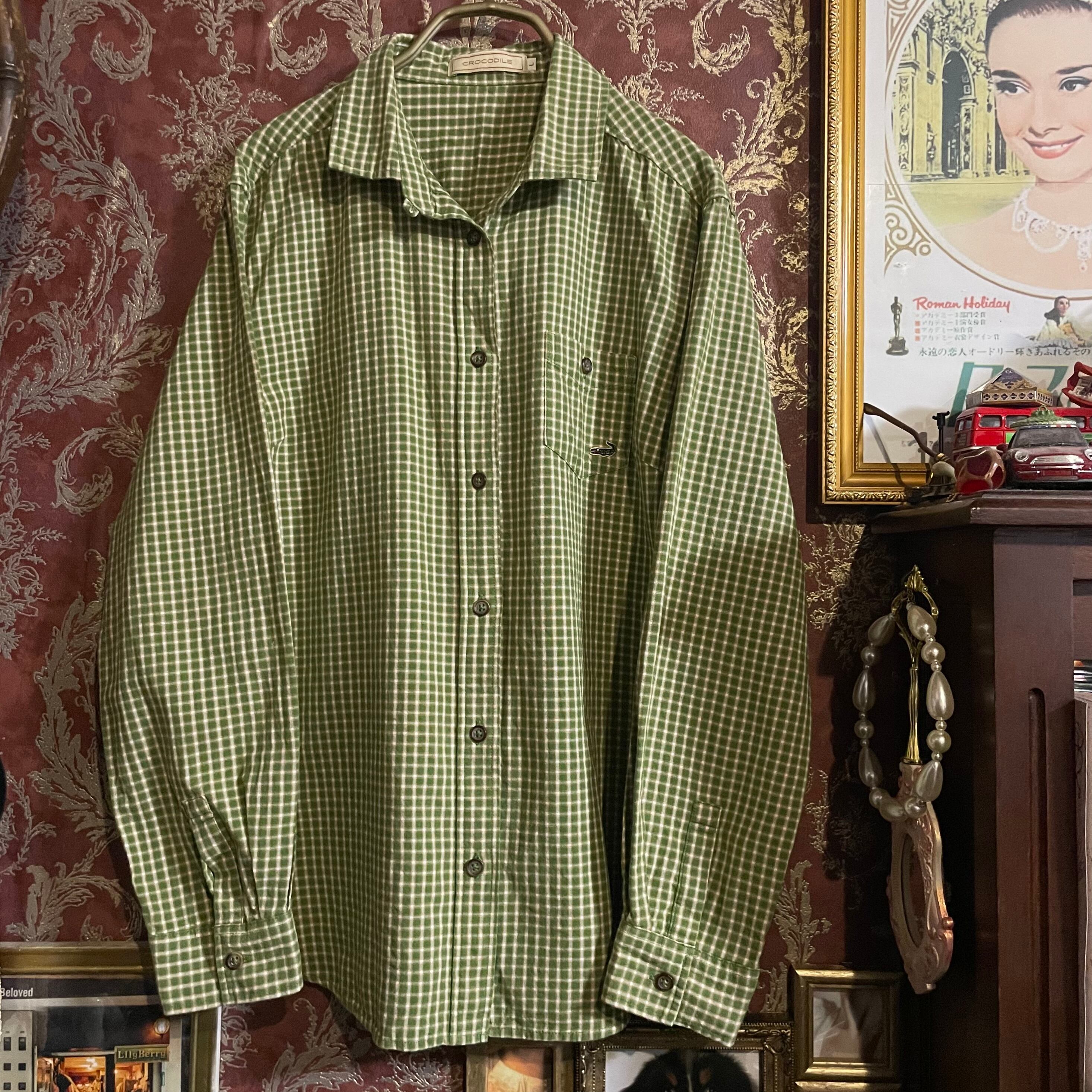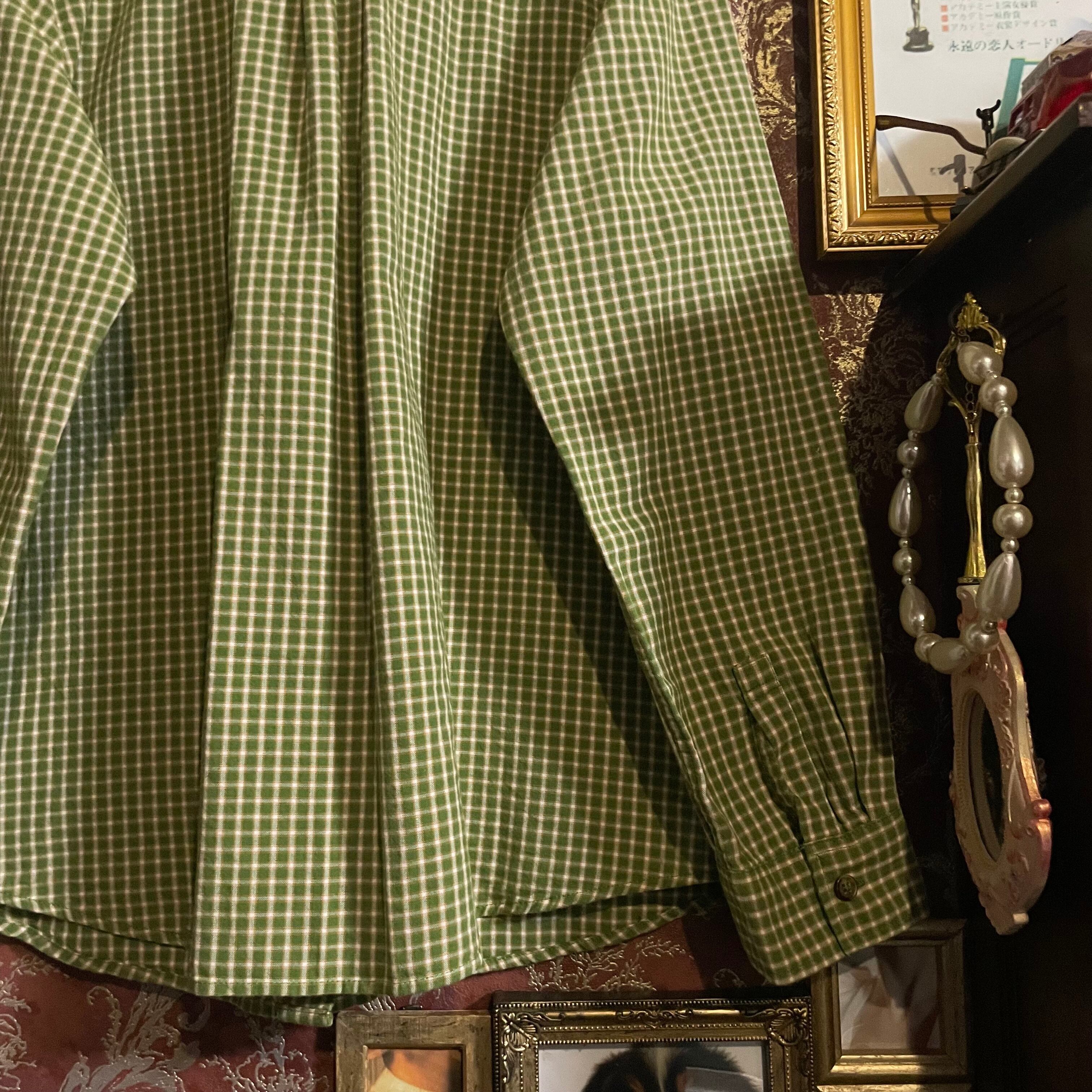 CROCODILE(クロコダイル)のグリーン×ホワイトの細かいチェック柄の長袖シャツです。