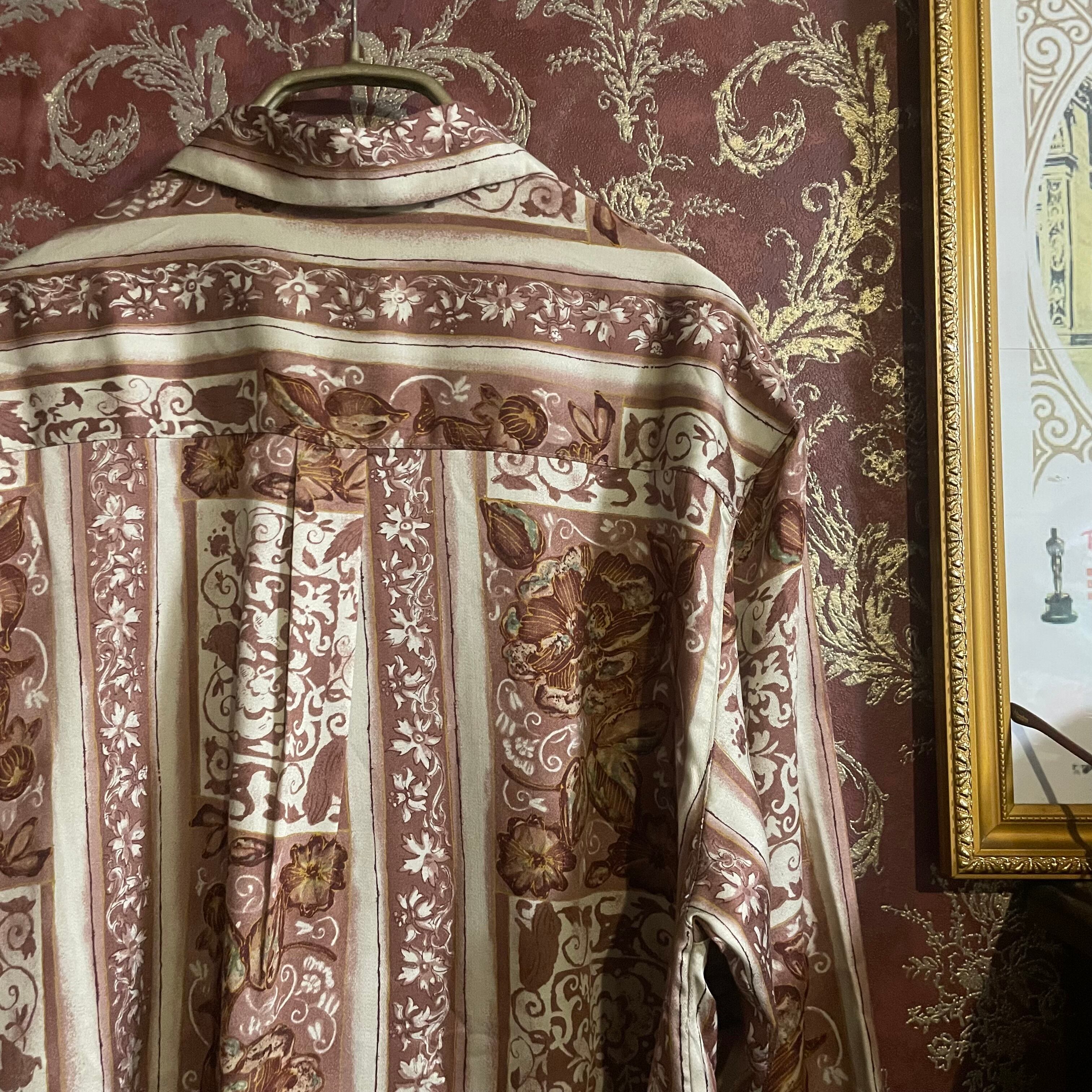 クラシカルな雰囲気漂う、バロック調フローラル柄のシャツです。