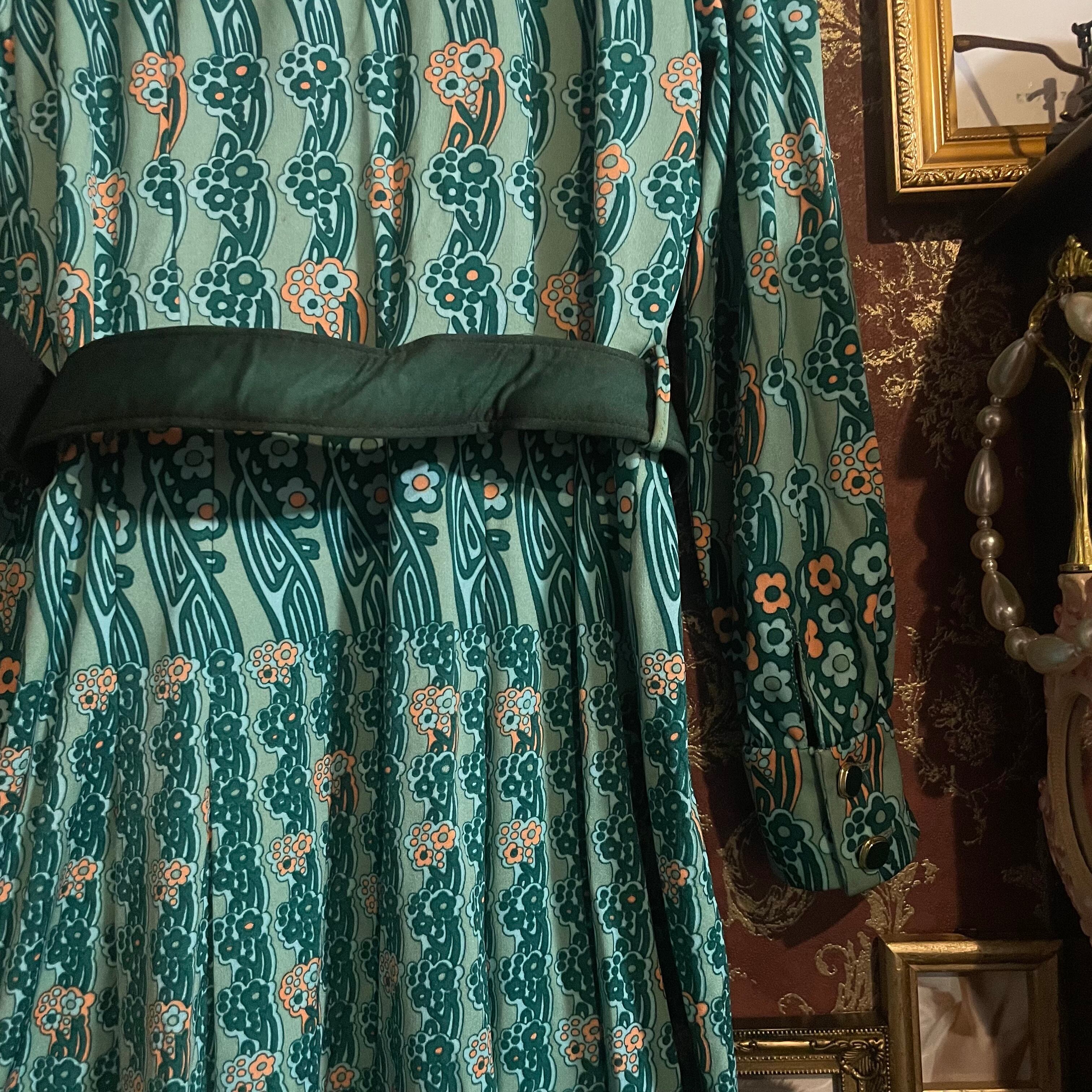 ヴィンテージムードたっぷりの花柄プリントが映える、ヴィンテージジャージワンピースです。